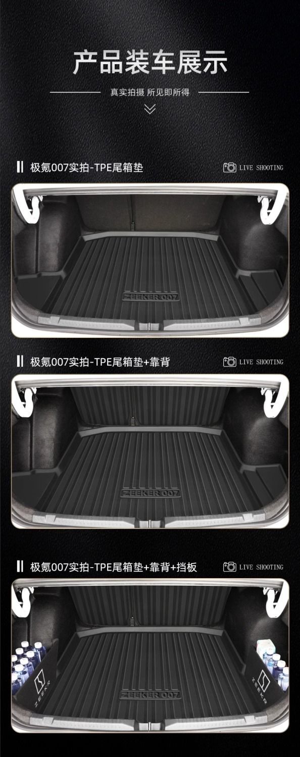 [Трехмерная высокая сторона] Коврик багажника из ТПЭ; [Износостойкая и устойчивая к царапинам] Подушка спинки из ТПЭ; [Высокая экономичность] Коврик для багажника из ТПЭ + коврик для спинки; [Соответствие места хранения] Коврик багажника из ТПЭ + левая и правая перегородки; [Роскошный комплект] Коврик багажника из ТПЭ + левая и правая перегородки + коврик спинки; [Удобное хранение] Левая и правая перегородки