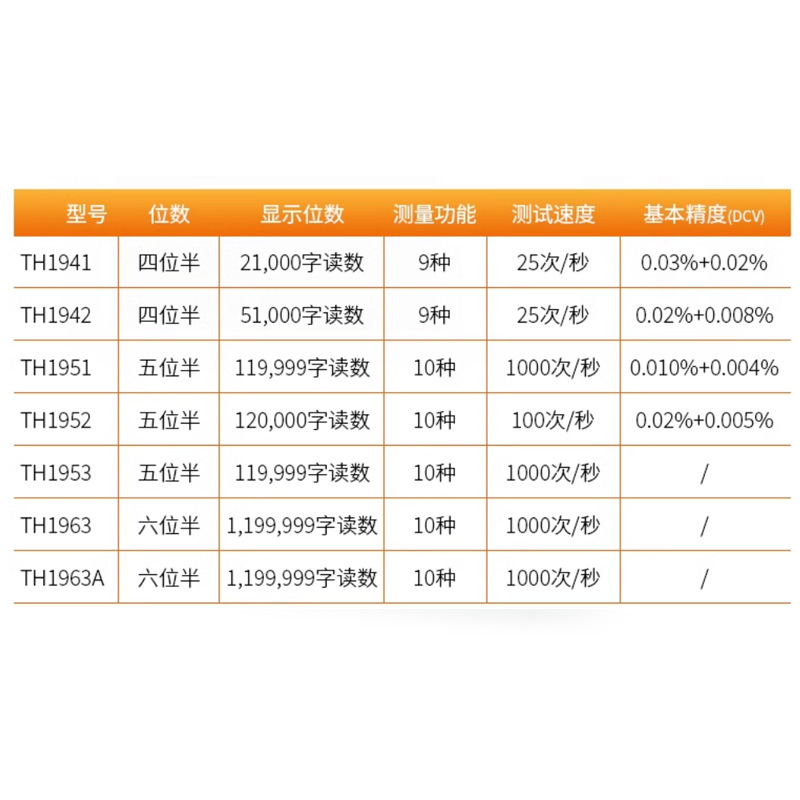 TH1941 четыре с половиной; TH1942 четыре с половиной; TH1952 пять с половиной; TH1953 пять с половиной цифр; TH1963 шесть с половиной цифр; TH1963A шесть с половиной цифр; TH26036; TH26039
