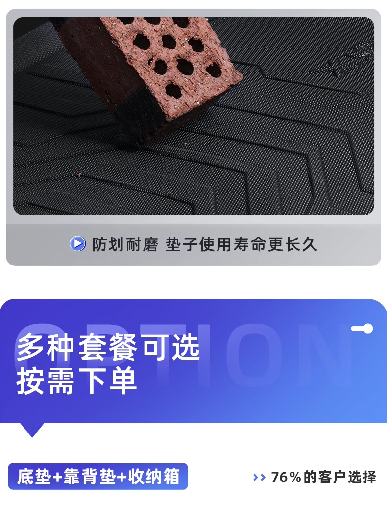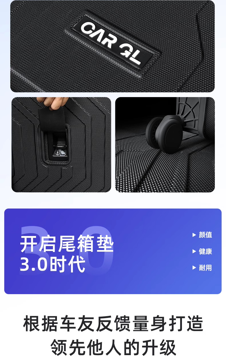 [Трехмерная высокая сторона] Коврик багажника из ТПЭ; [Износостойкий и устойчивый к царапинам] задняя спинка из ТПЭ; [Соответствие места хранения] Коврик багажника из ТПЭ + левая перегородка; [Отличная защита] Коврик багажника из ТПЭ + накладка на порог двери багажника; [Высокая экономичность] Коврик багажника из ТПЭ + задняя спинка; [Роскошная защита] Подушка багажника из ТПЭ + подушка спинки + левая перегородка; [Удобное хранение] Левая перегородка