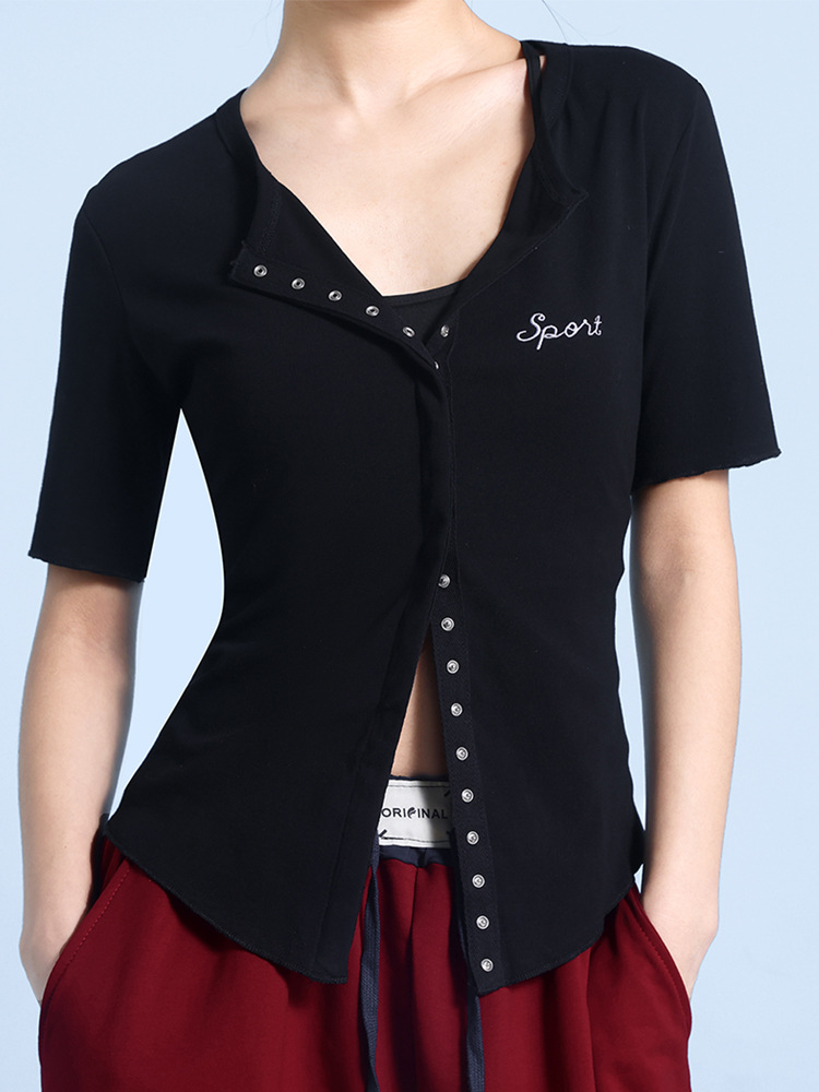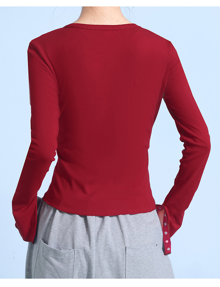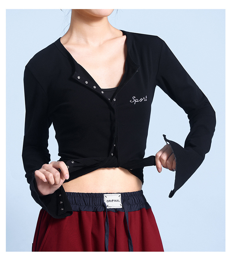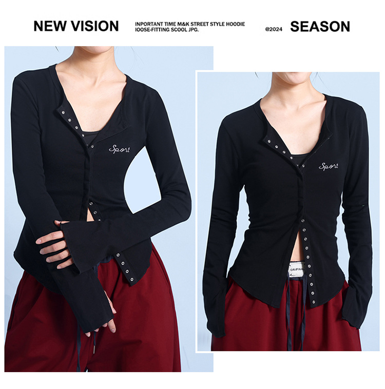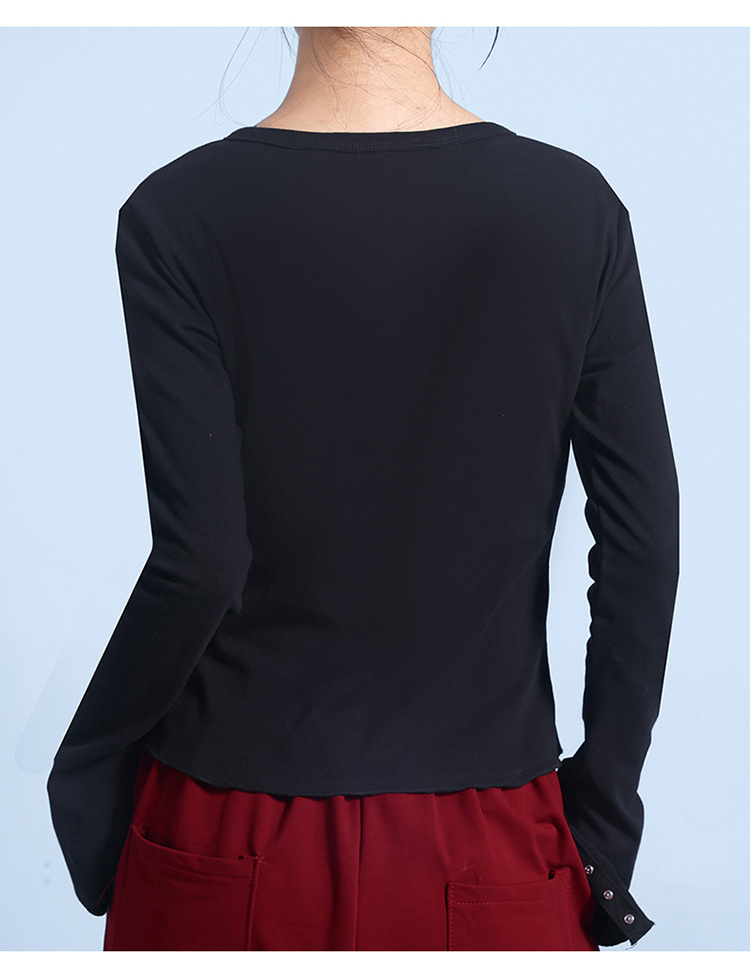 Горячая девушка черная весенняя и осенняя футболка с длинными рукавами