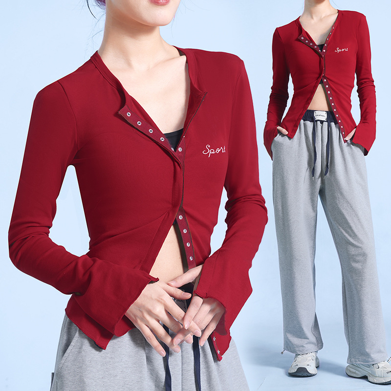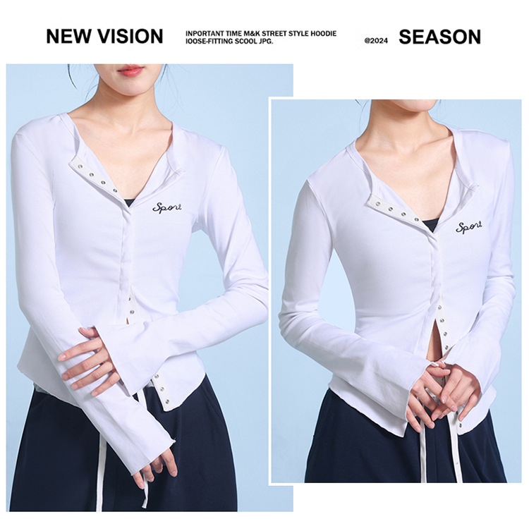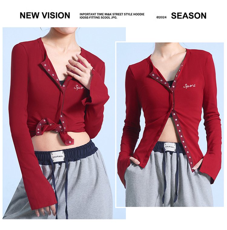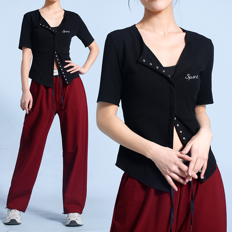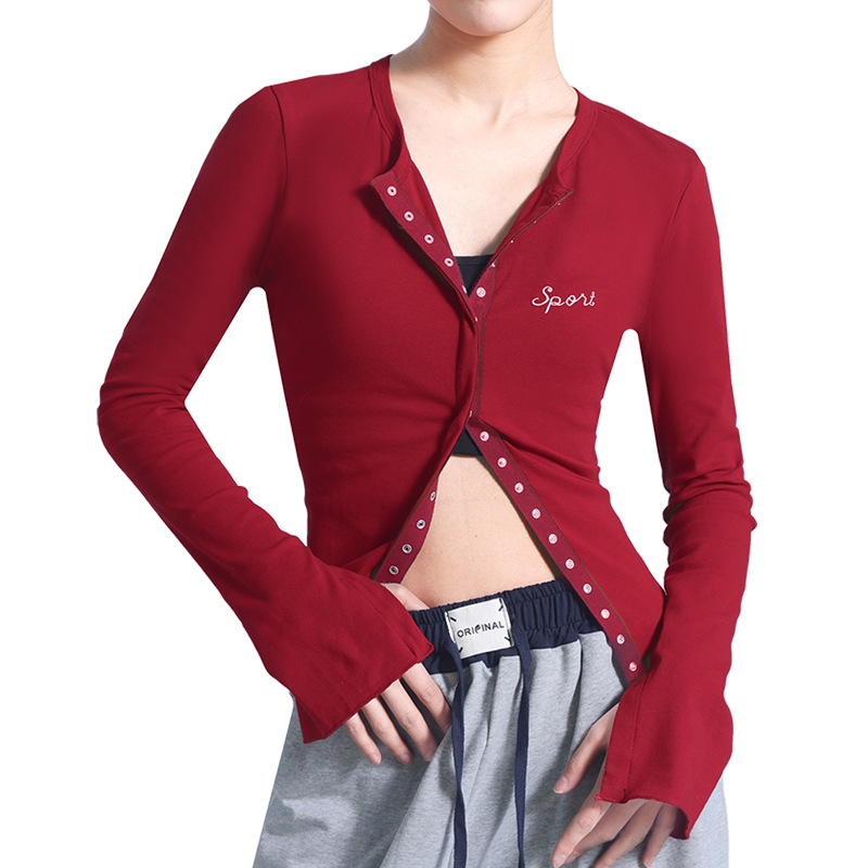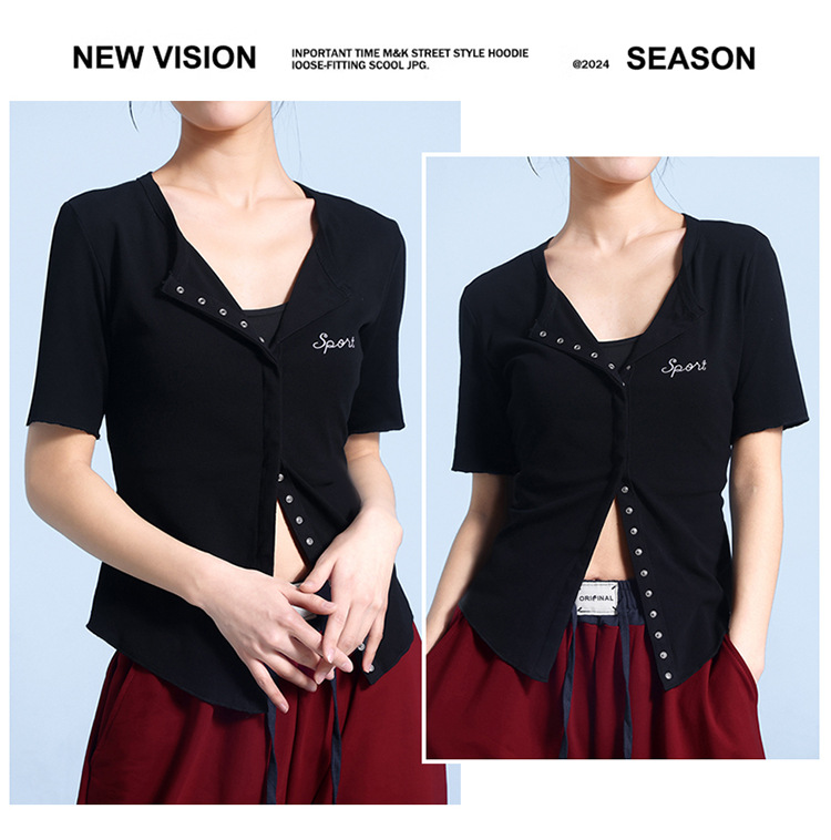 Горячая девушка черная весенняя и осенняя футболка с длинными рукавами
