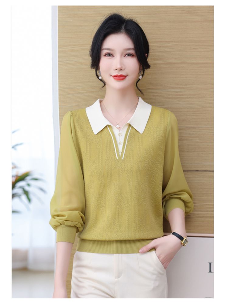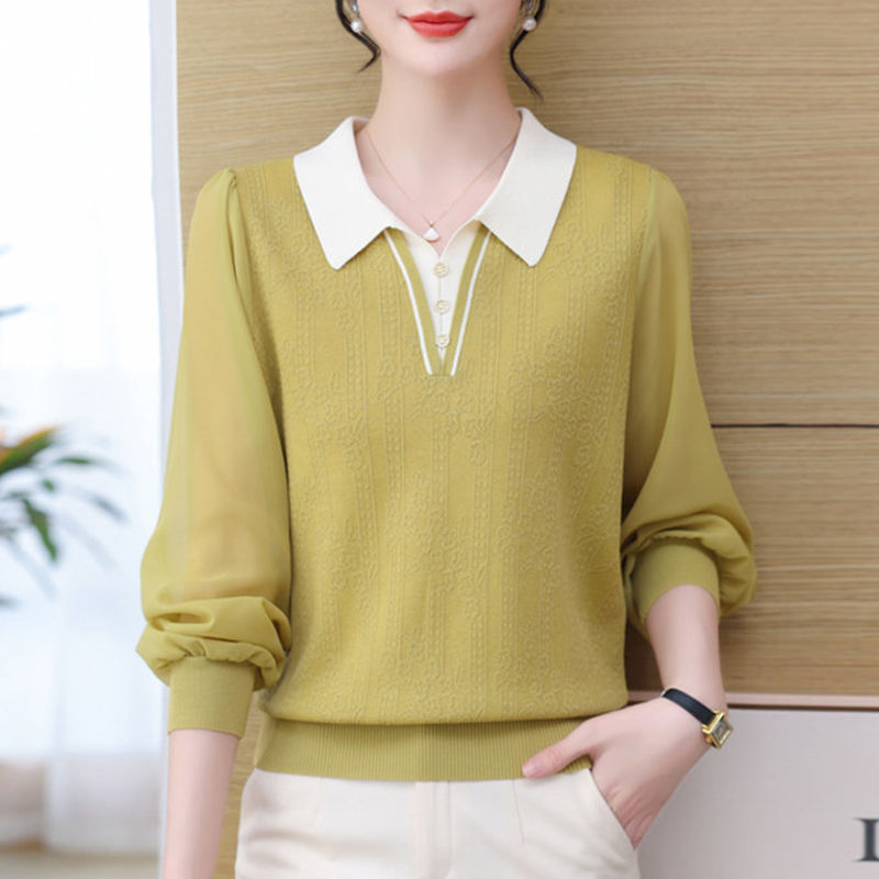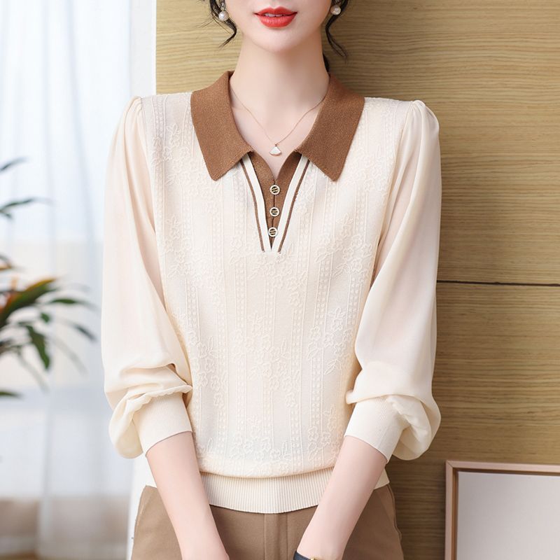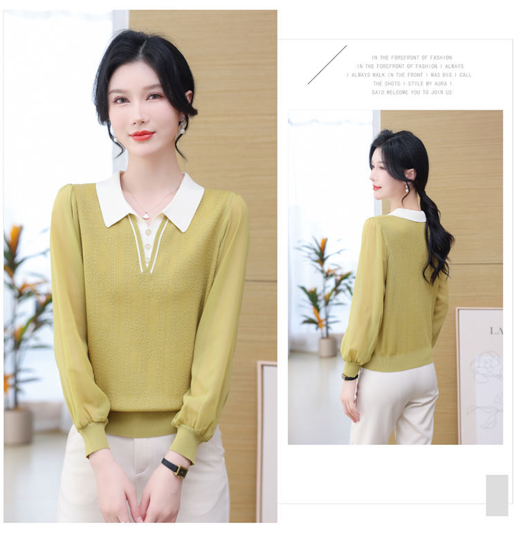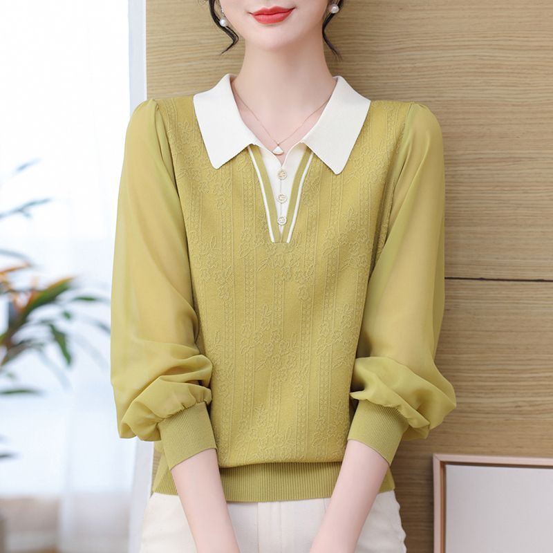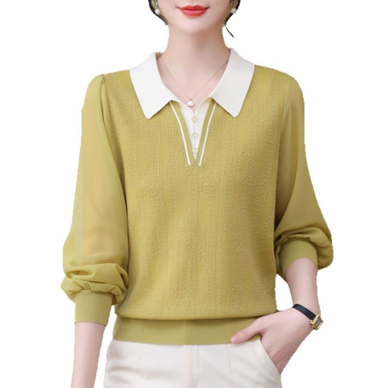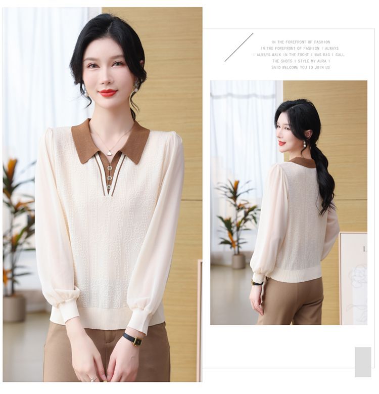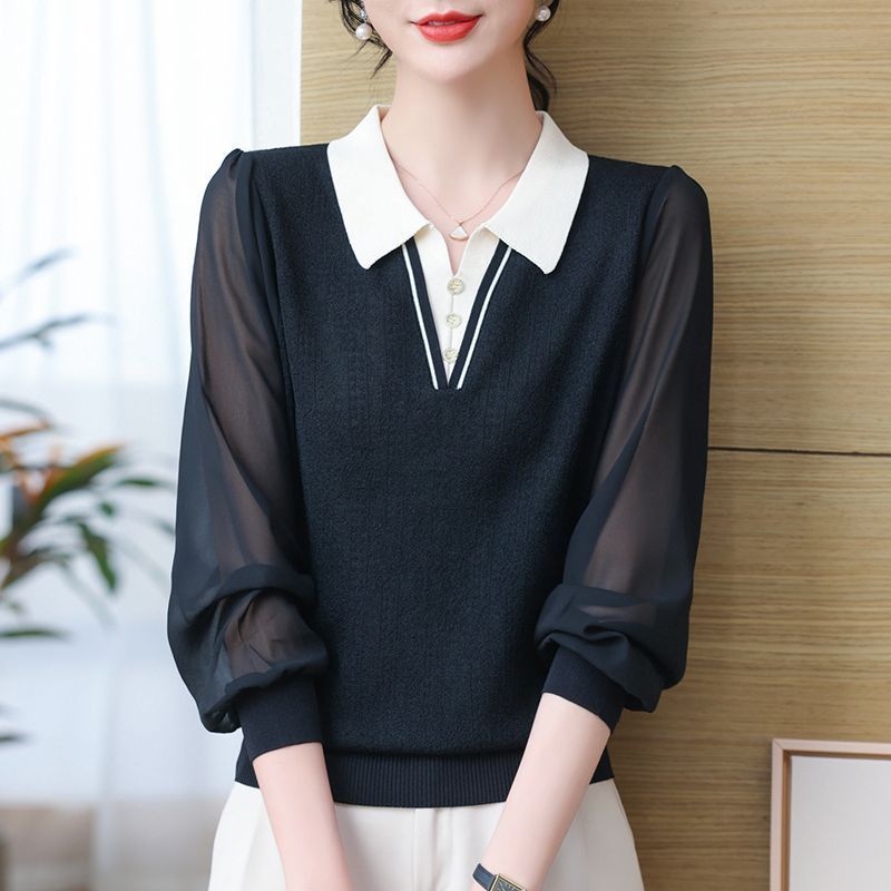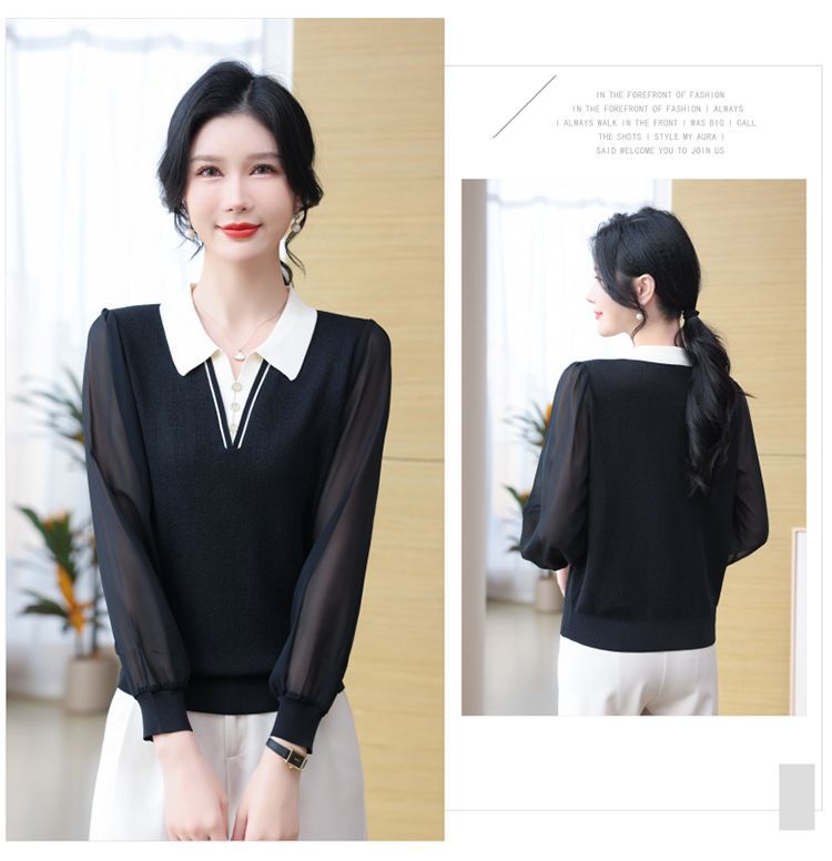 Футболка с длинным рукавом с лацканом, женская нижняя часть 2025 весна и лето новый премиум-смысл шифоновая рубашка шикарный свободный топ
