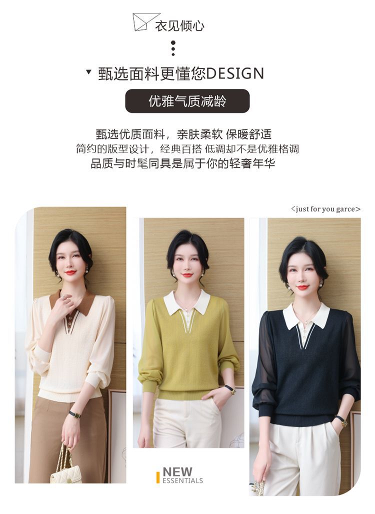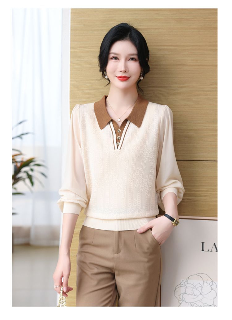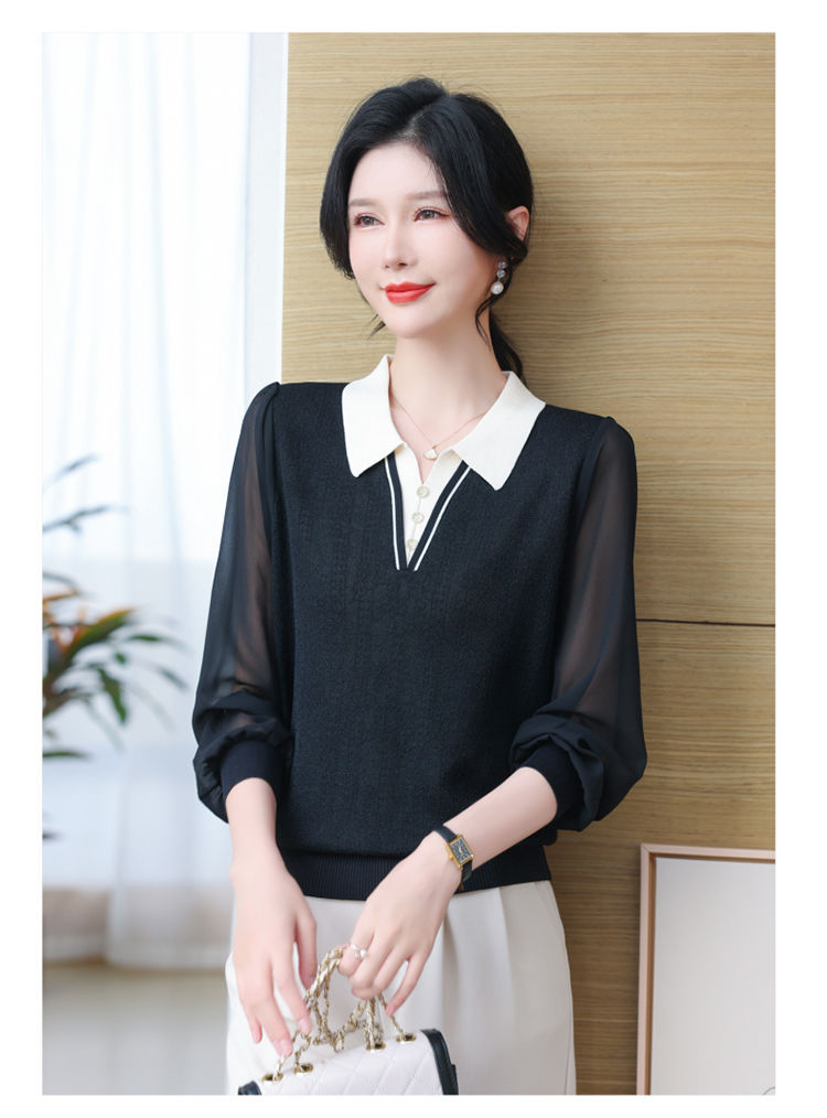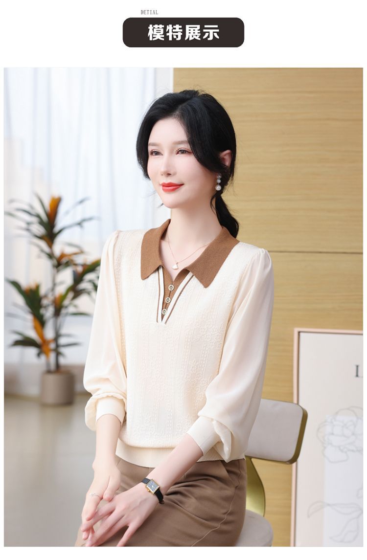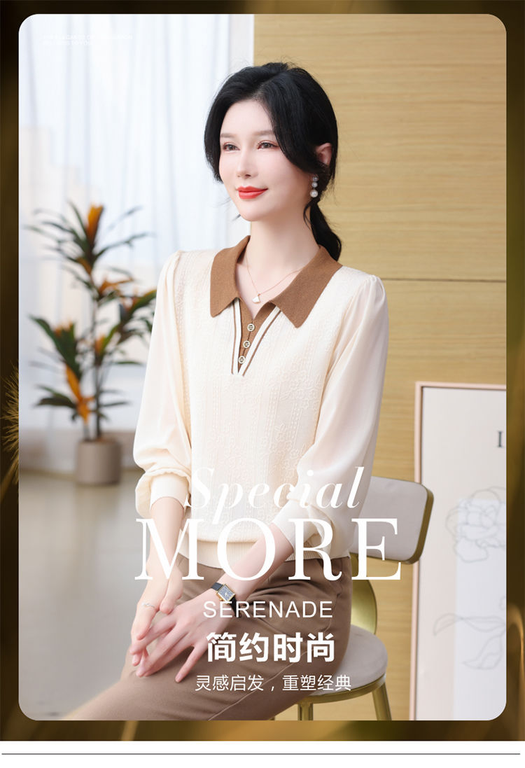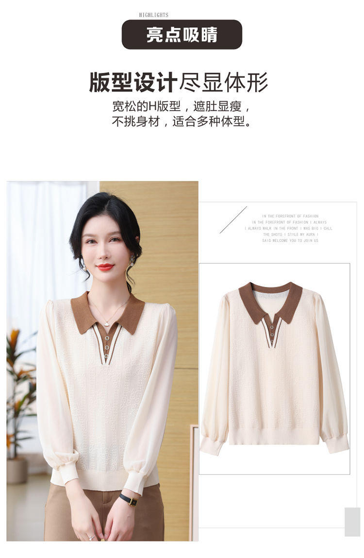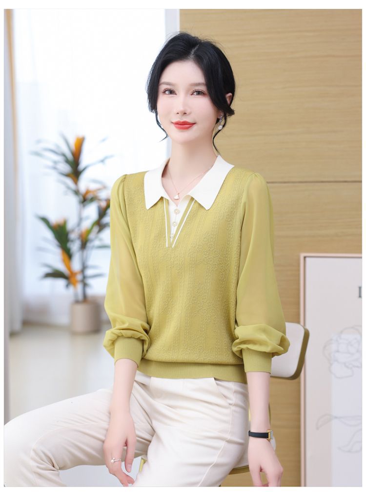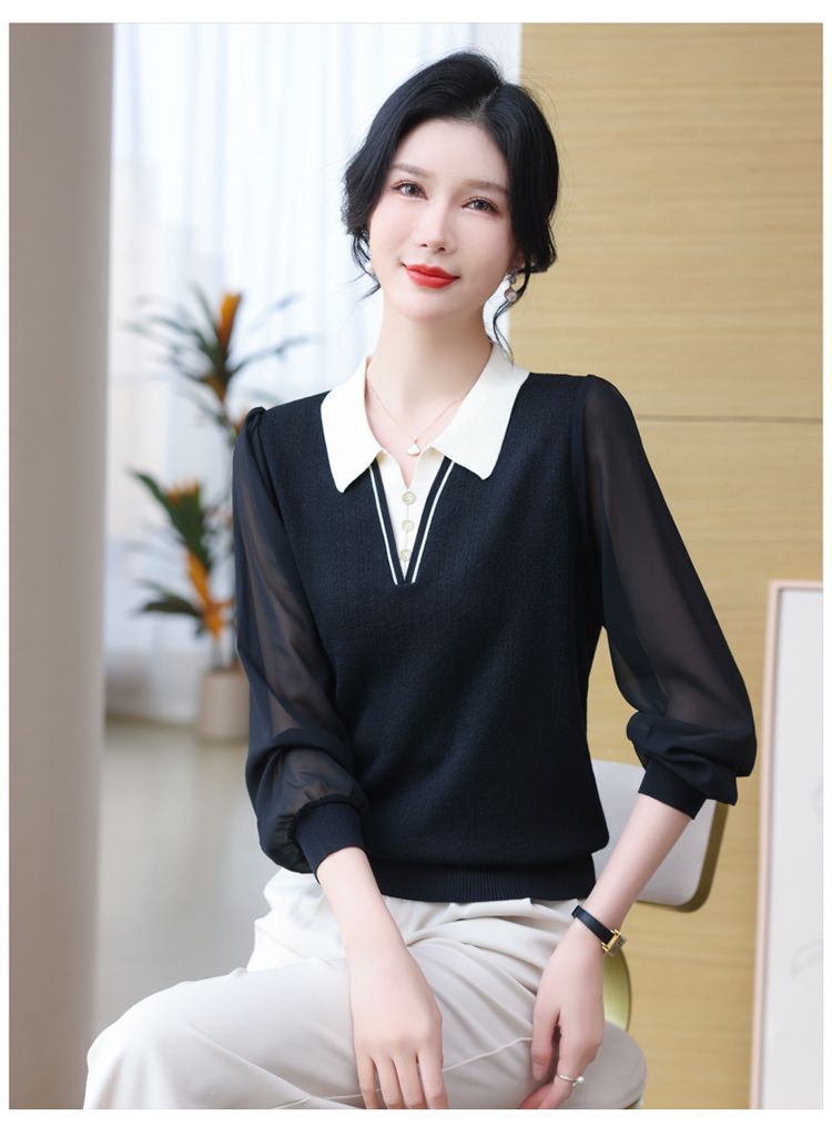 Футболка с длинным рукавом с лацканом, женская нижняя часть 2025 весна и лето новый премиум-смысл шифоновая рубашка шикарный свободный топ
