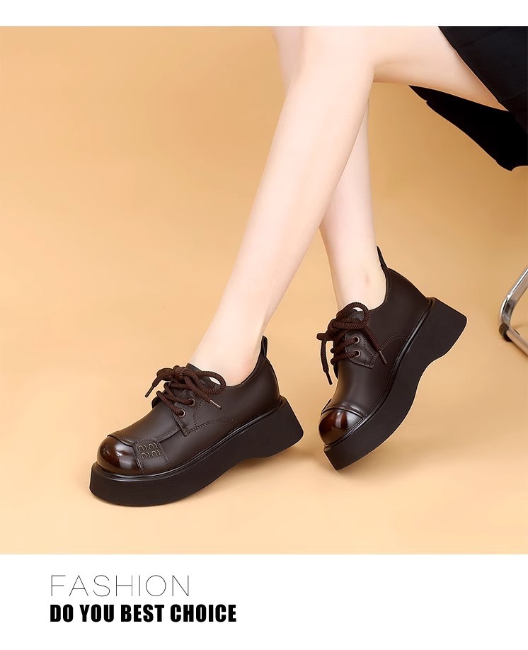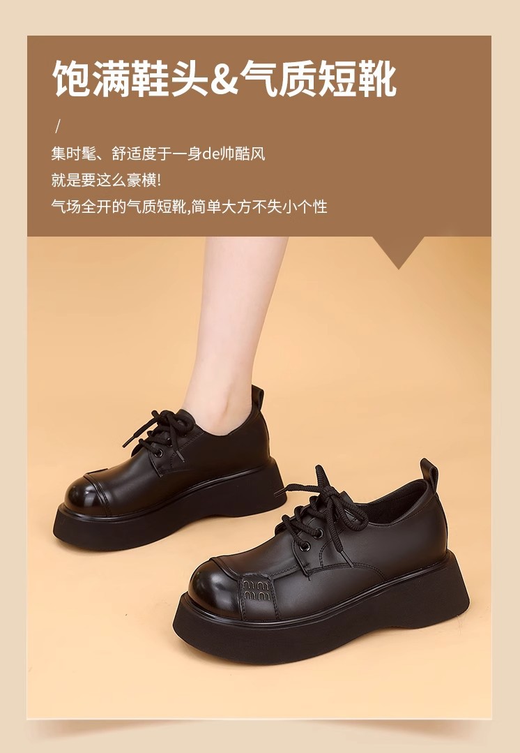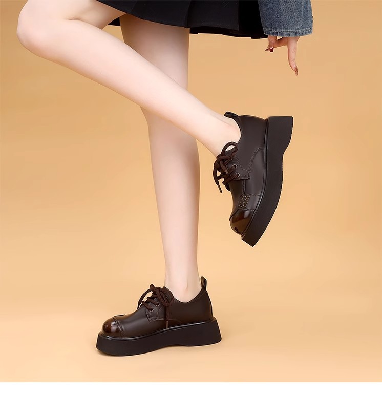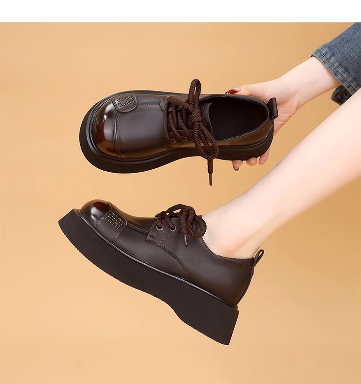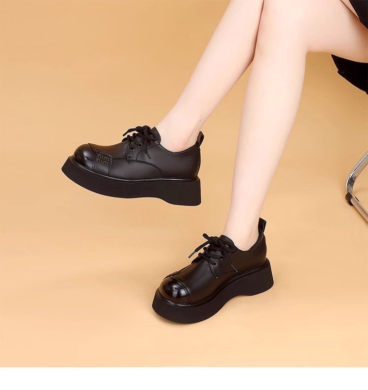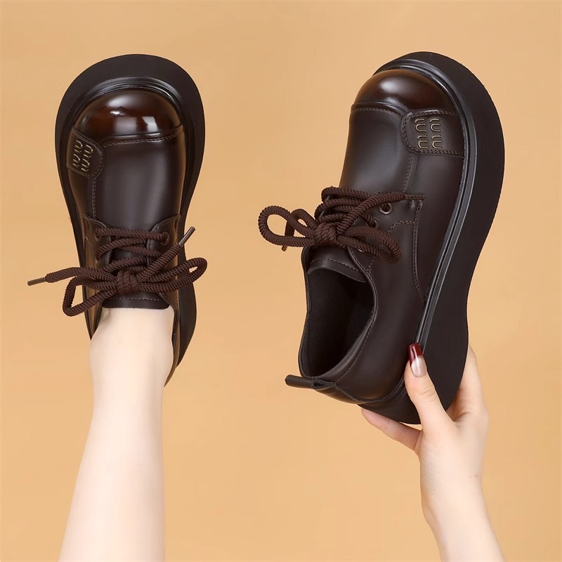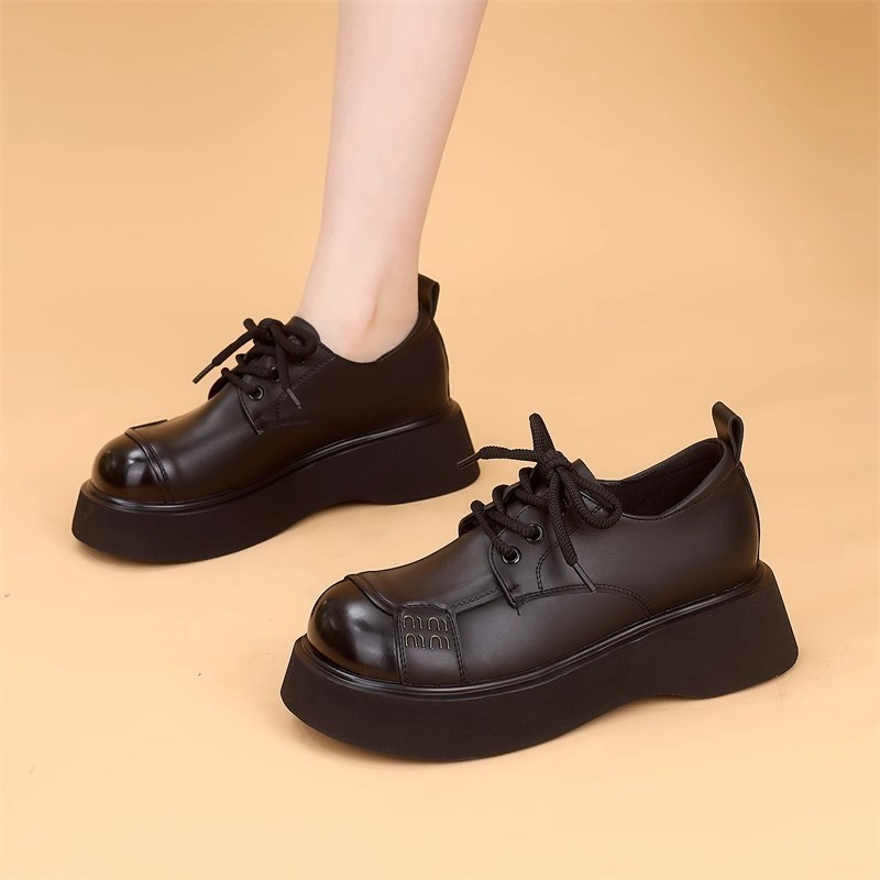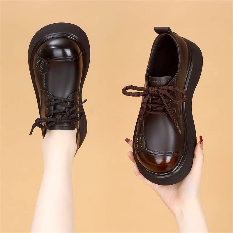 [Высокое качество] Маленькие кожаные туфли на толстой подошве женские 2025 новые весенние тонкие, легкие и увеличенные туфли Lefu