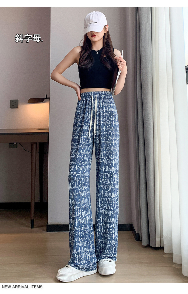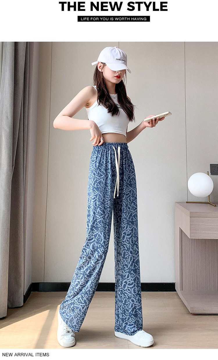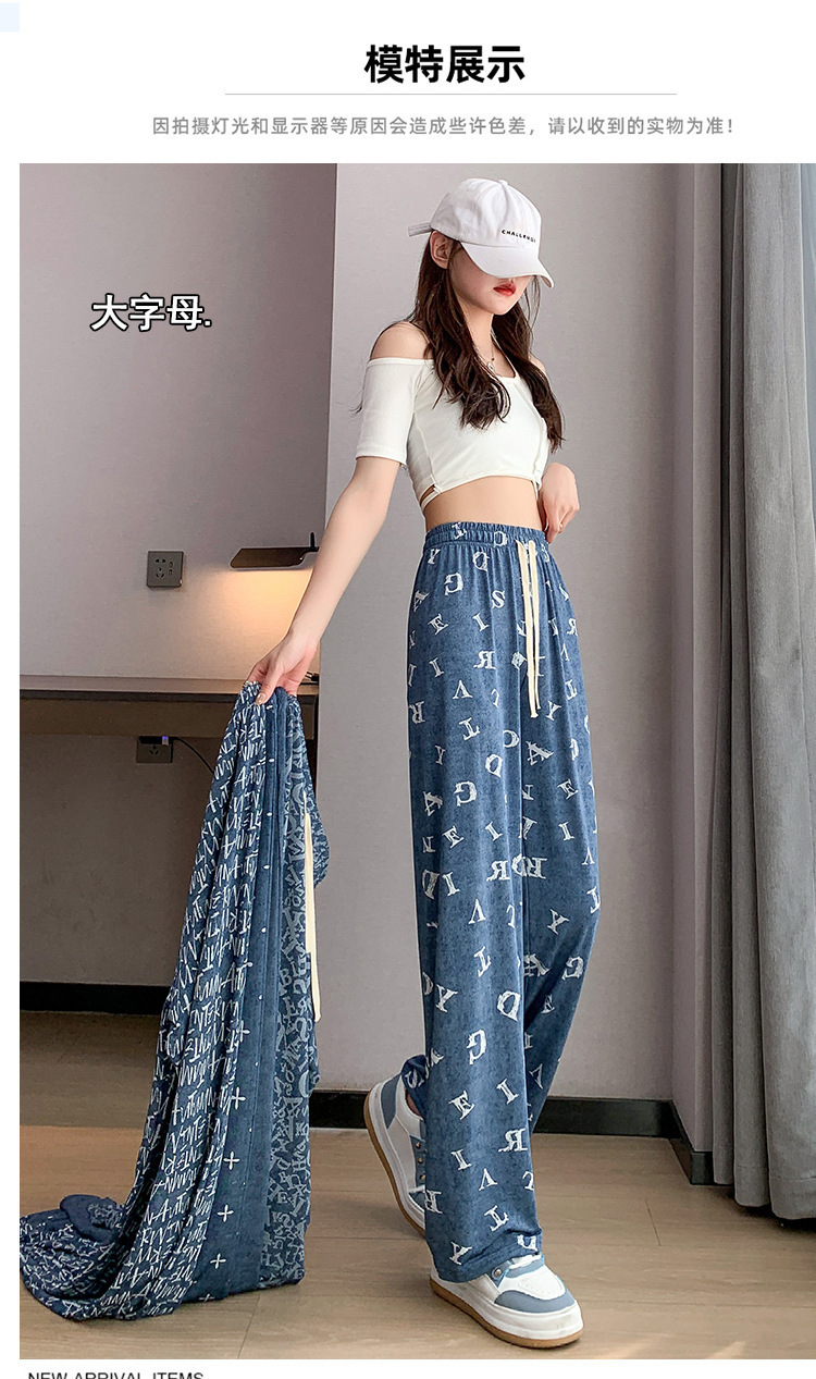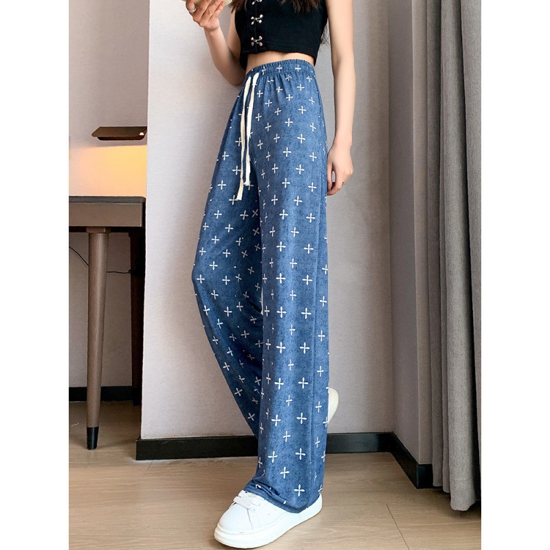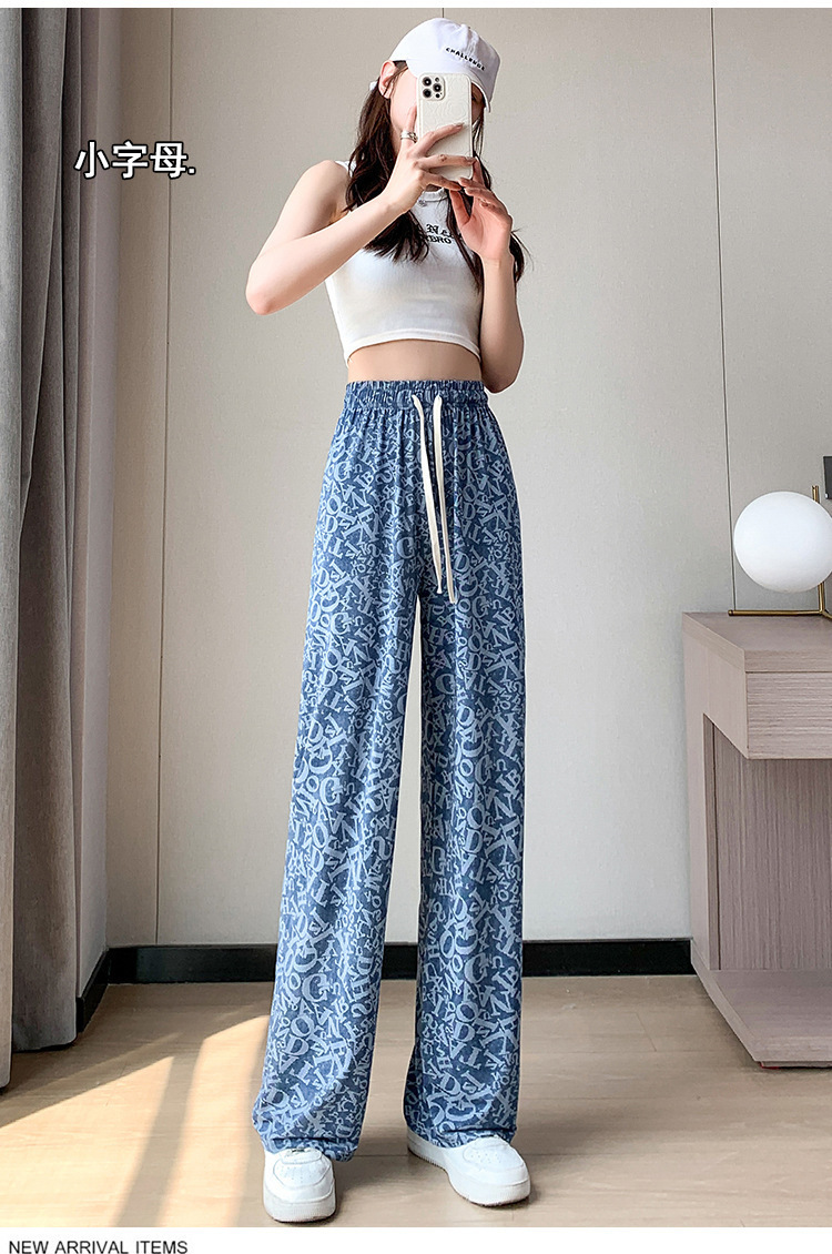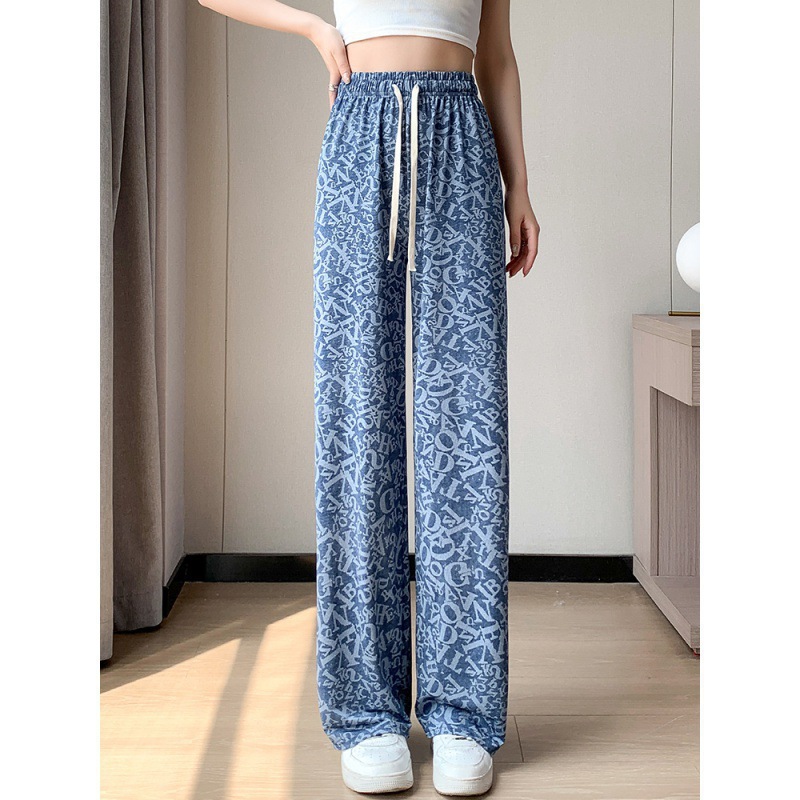Джинсовые широкие брюки из ледяного шелка женские летние брюки с высокой талией и тонким принтом, повседневные брюки тонкие свободные вертикальные штаны