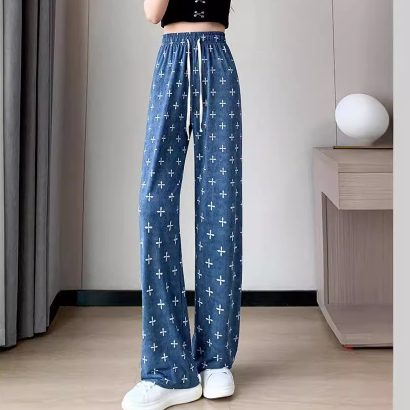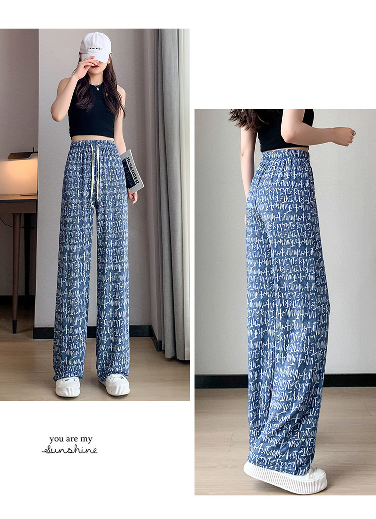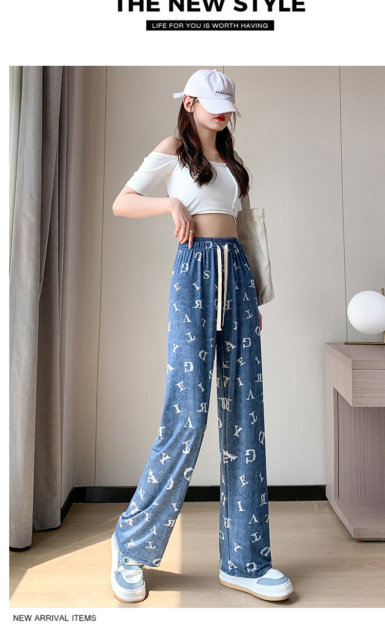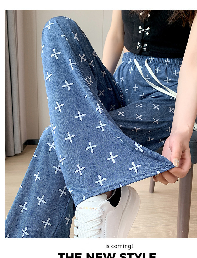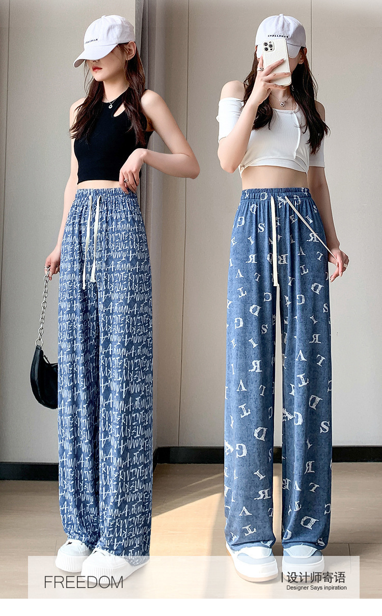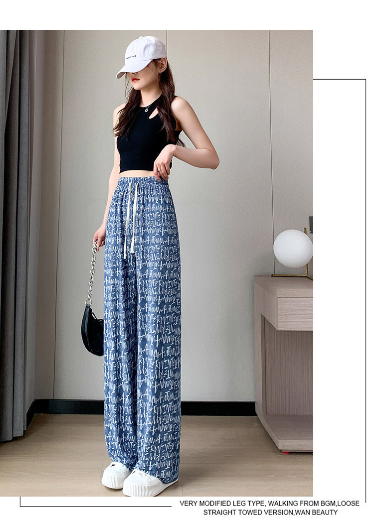 Джинсовые широкие брюки из ледяного шелка женские летние брюки с высокой талией и тонким принтом, повседневные брюки тонкие свободные вертикальные штаны