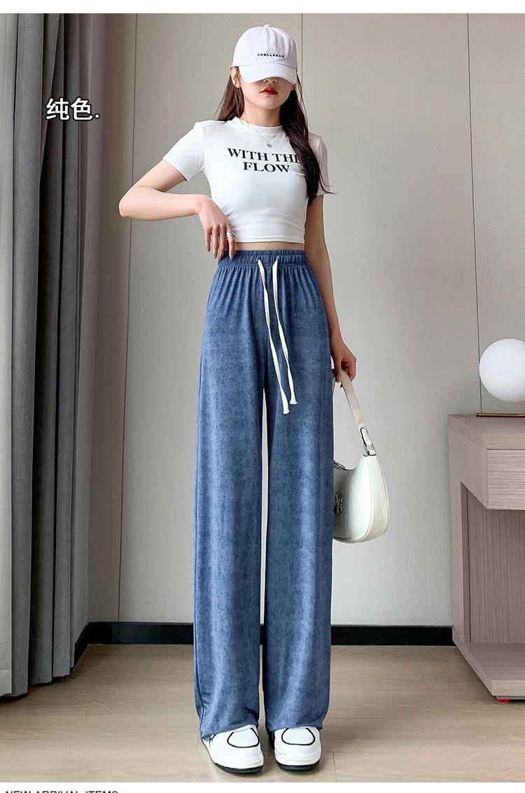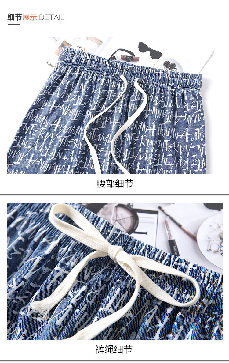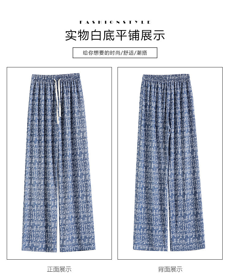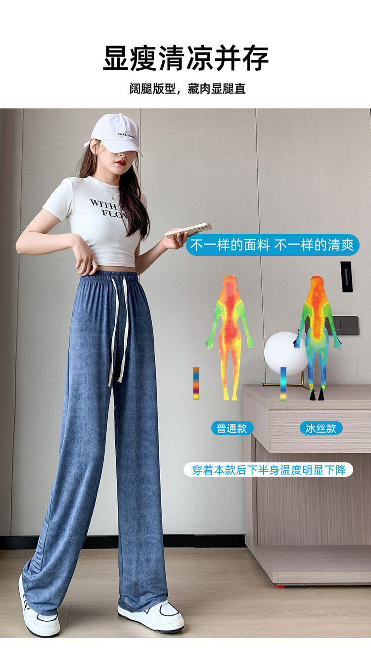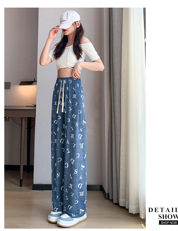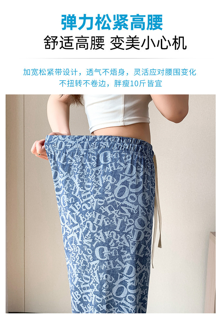 Джинсовые широкие брюки из ледяного шелка женские летние брюки с высокой талией и тонким принтом, повседневные брюки тонкие свободные вертикальные штаны