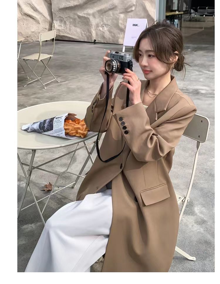 2025 осень и зима корейский длинный пиджак женский повседневный костюм свободный тонкий темперамент плащ