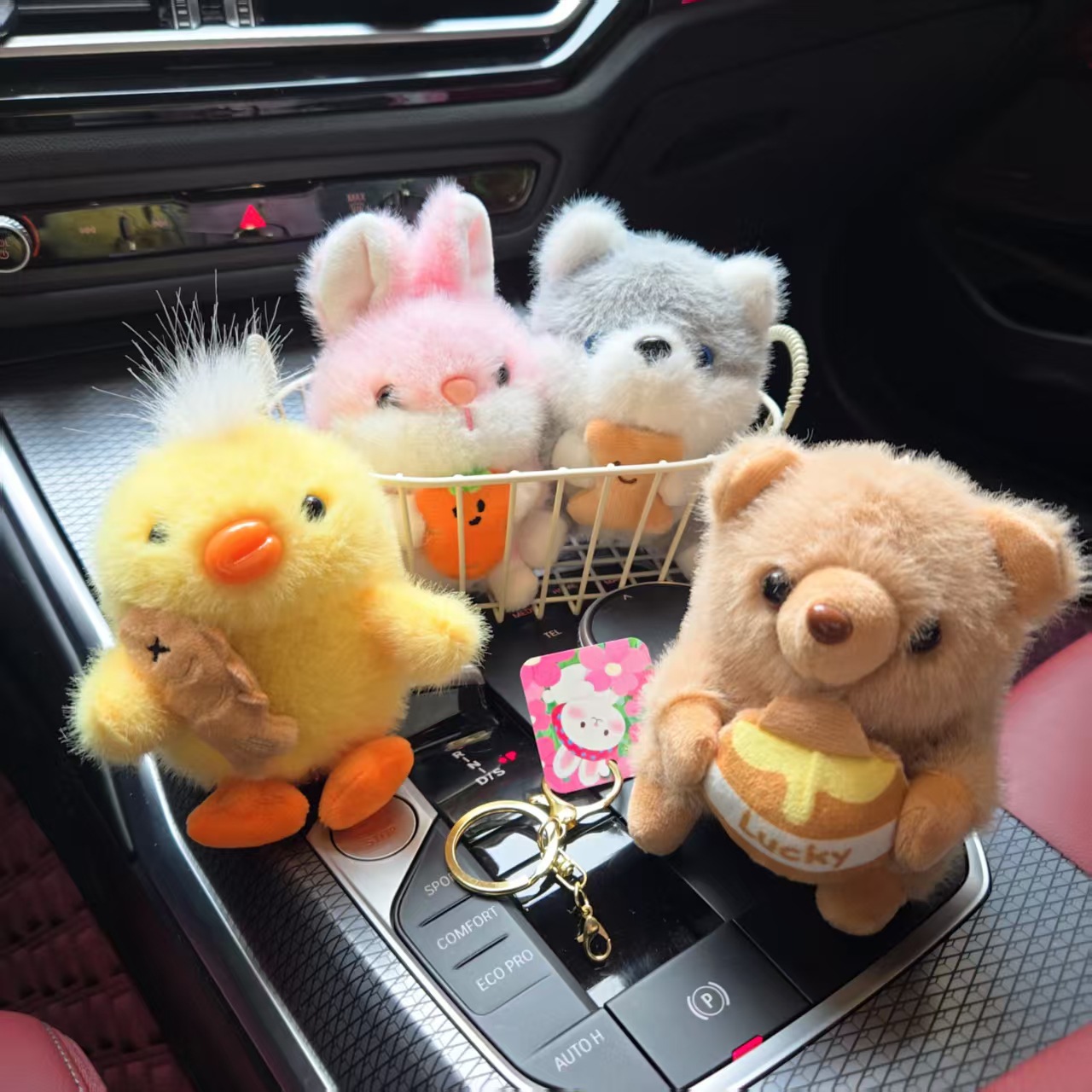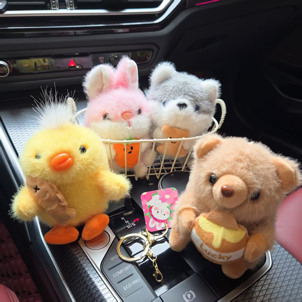 розовый кролик; желтый цыпленок; бурый медведь; серый хаски