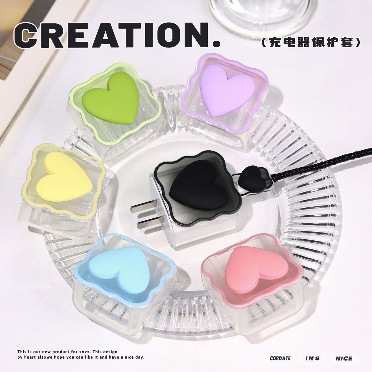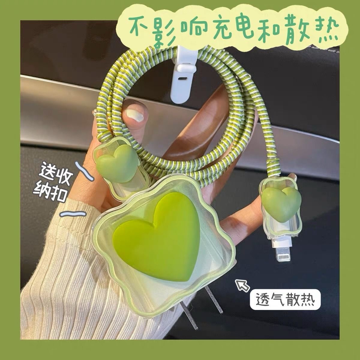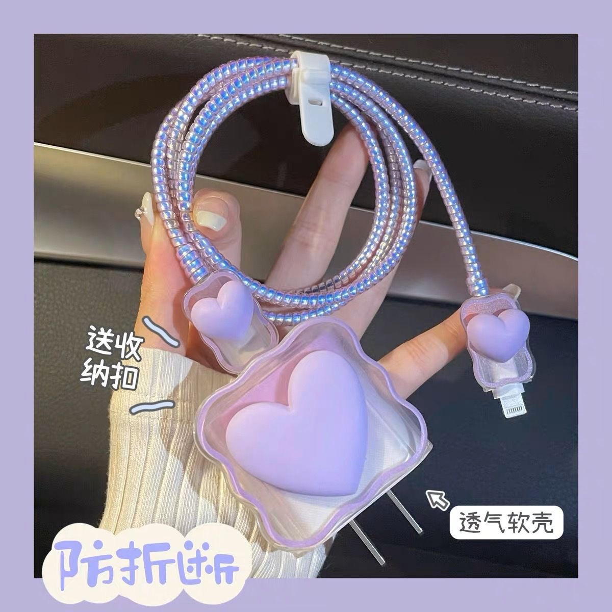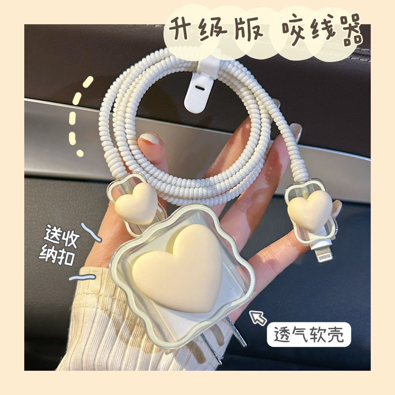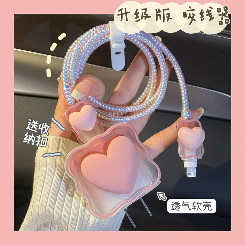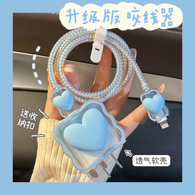 Цветной градиентный чехол в форме сердца для зарядного устройства Apple 20 Вт, защитный чехол для кабеля, защита от повреждений и обрыва.