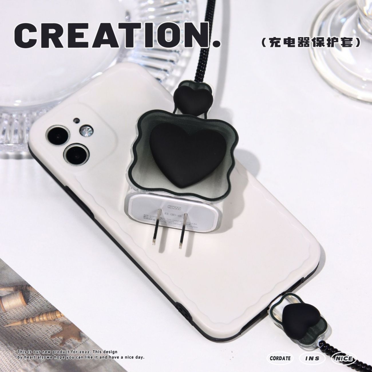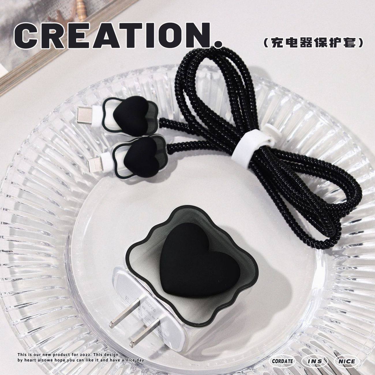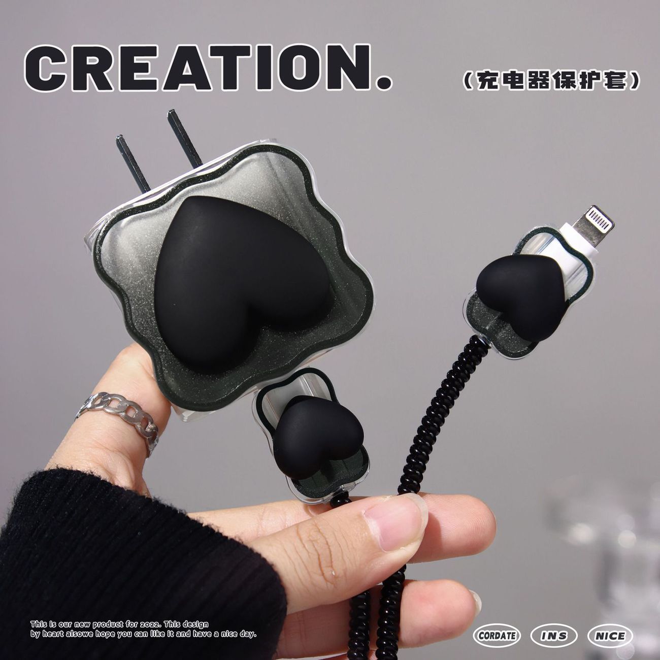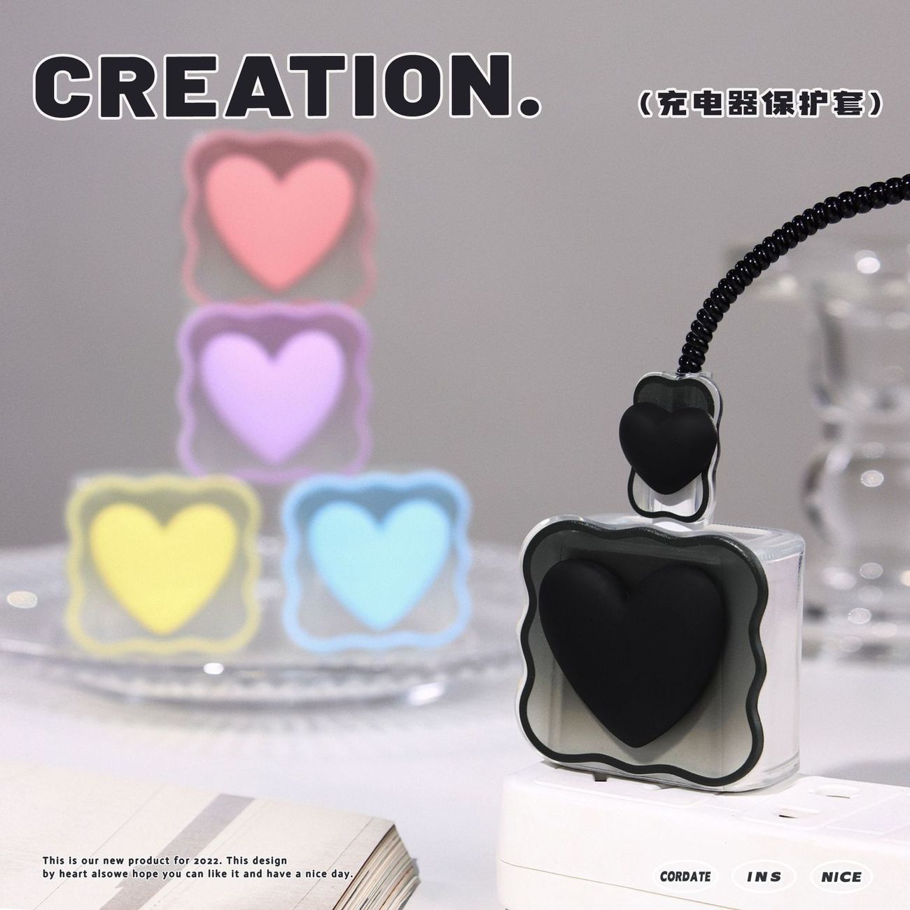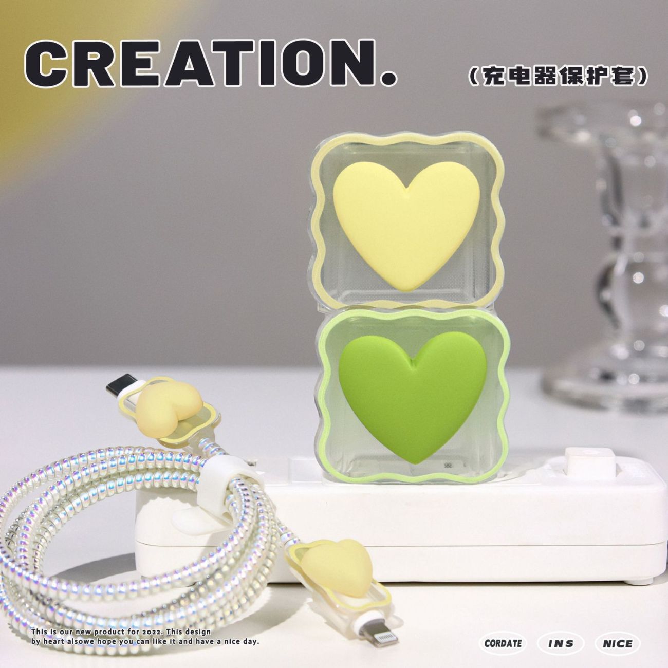 Цветной градиентный чехол в форме сердца для зарядного устройства Apple 20 Вт, защитный чехол для кабеля, защита от повреждений и обрыва.