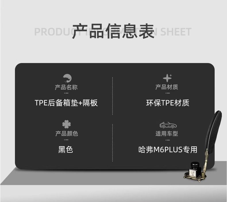 [Мастерство и качество] Коврик для багажника из ТПЭ — стереоскопическая высокая сторона; [Водонепроницаемая и износостойкая] Задняя спинка из ТПЭ — улучшенная и утолщенная.; [Резервное обновление] Коврик багажника из ТПЭ + перегородки с обеих сторон; [Защитные сокровища] Коврик багажника из ТПЭ + задняя спинка; [Роскошный полный комплект] Коврик в багажник + подушка спинки + перегородки с обеих сторон; [Удобное хранение] Перегородки с обеих сторон