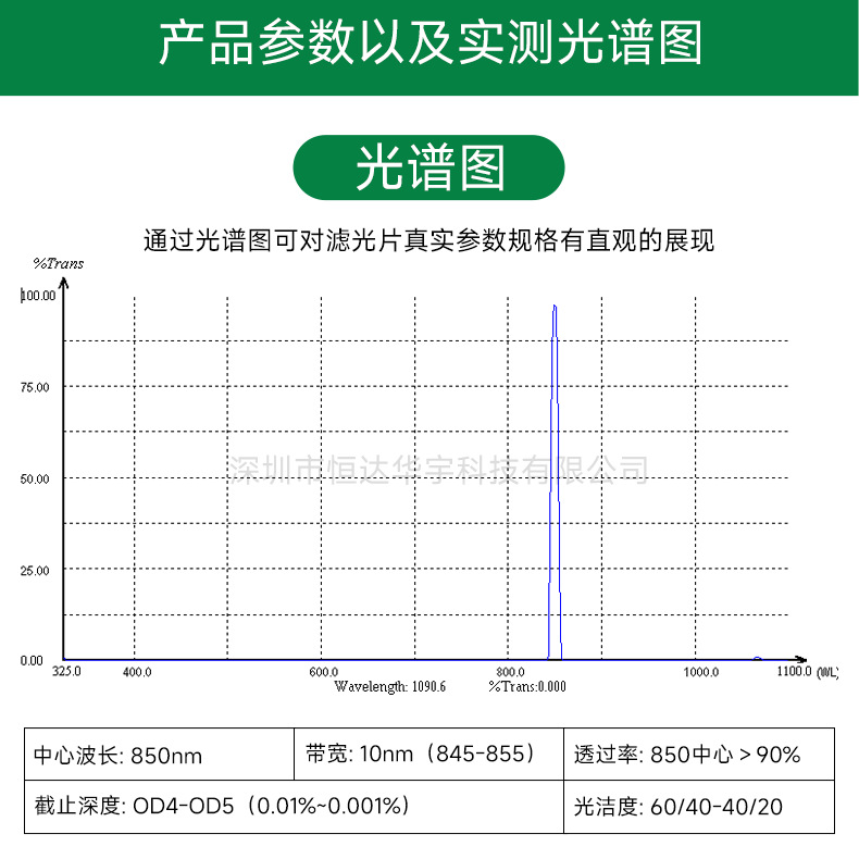 Ультраузкополосный фильтр 850 нм, полоса пропускания 10 нм, среднеполосовая пропускаемость ≥94%, фильтр с касанием-фильтрацией OD4-OD5