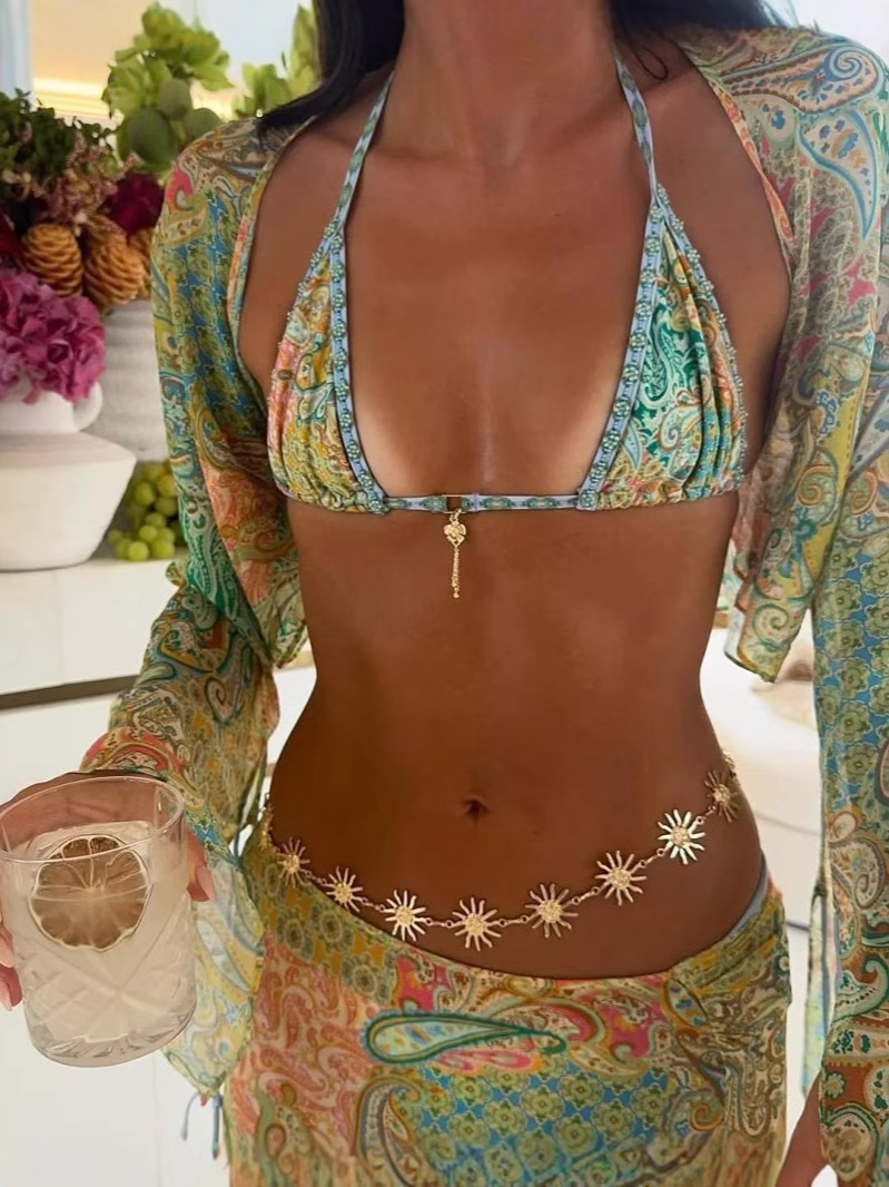 GY26044 Европейский и американский стиль 2025 года, новый купальник с принтом, шнуровкой и разрезом, сексуальный бикини для женщин, пляжный комплект
