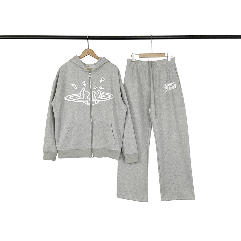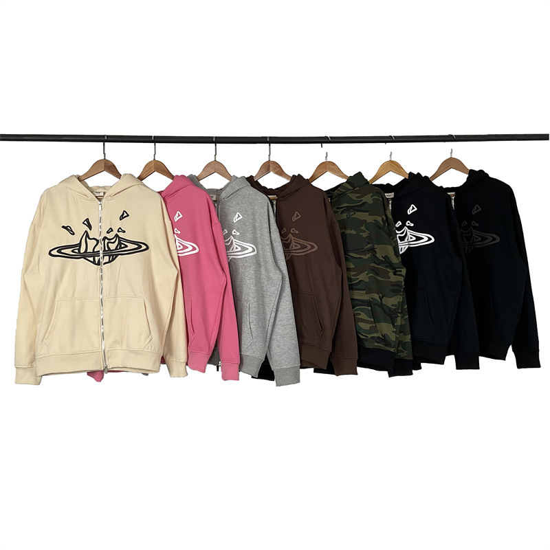 Внешняя торговля Оптовая трансграничная сломанная планета пенистый принт плюс кардиган с капюшоном свитер европейский и американский повседневный костюм