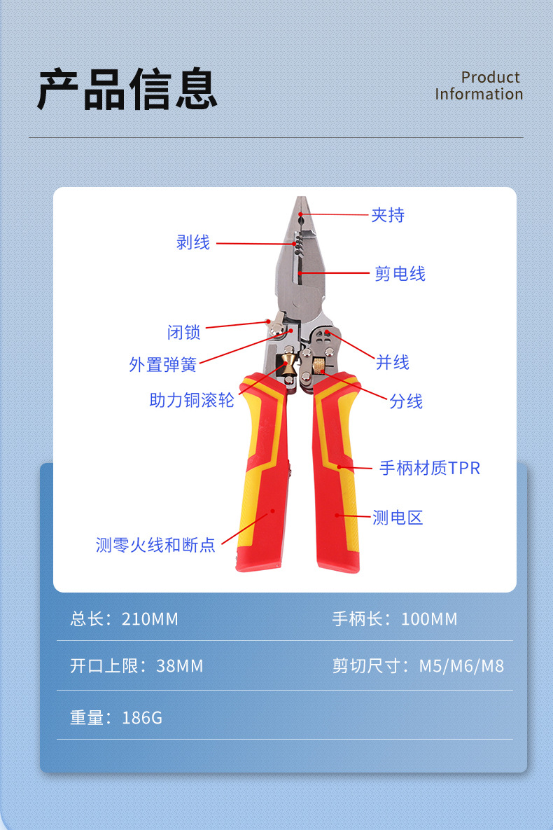 [Красная и желтая ручка] Электрическая тестовая модель 8-в-1 для электрика, инструмент для зачистки проводов