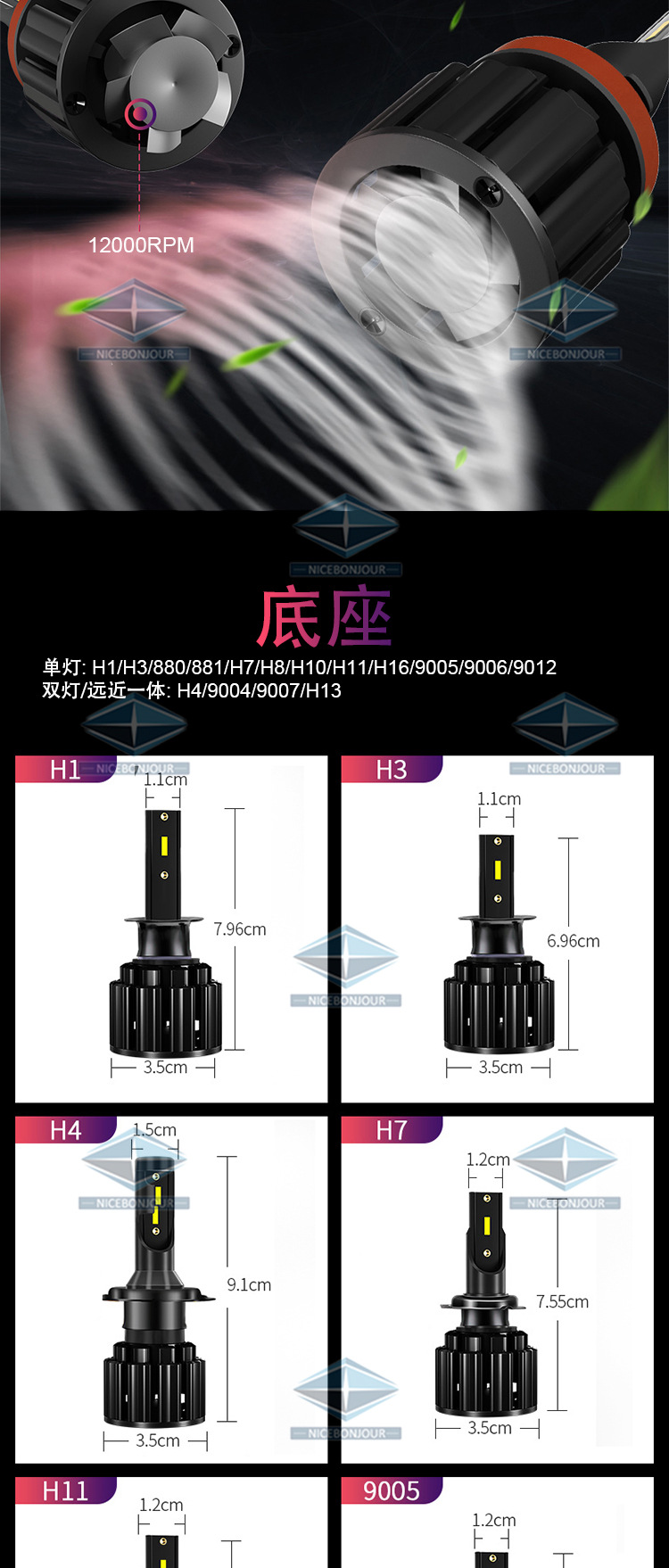 H1-одиночный свет; H3-одиночный свет; H4-двойные фары (дальние и ближние встроены); H7-одиночный свет; H8-одиночный свет; H10-одиночный свет; H11-одиночный свет; 9005-одиночный свет; 9006-одиночный свет; 9012-одиночный свет; H16-одиночный свет