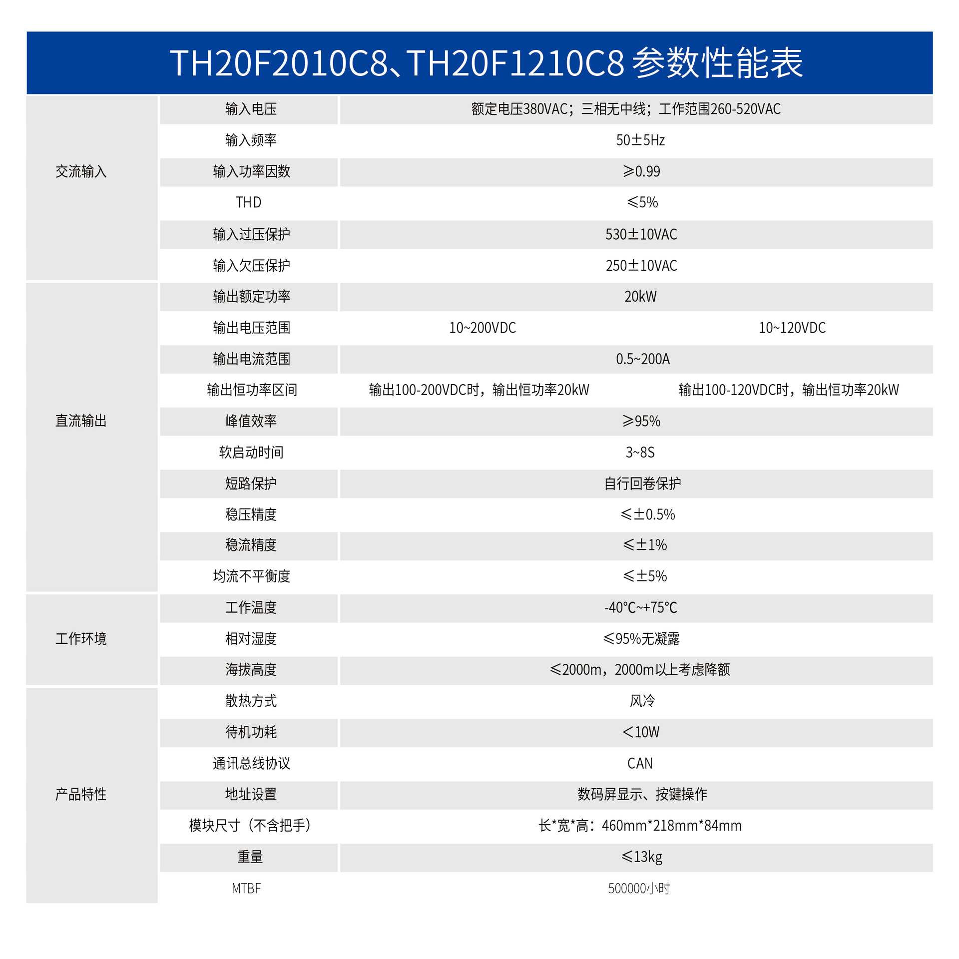 | 输出恒功率区间 | 输出100-200VDC时,输出恒功率20kW | |