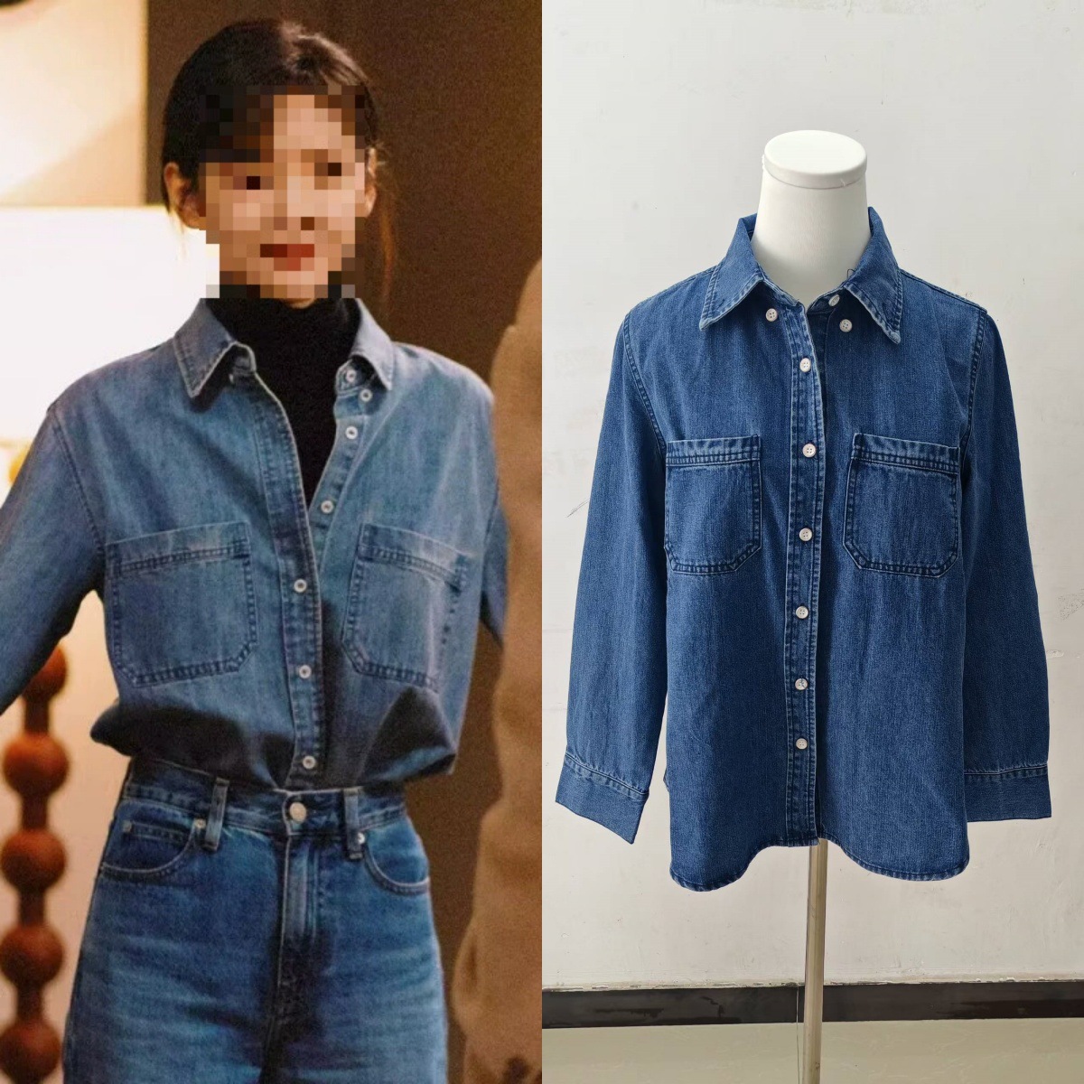 Долгосроки в наличии: осенне-зимняя джинсовая рубашка в стиле Ифан Чжан Руонан, многослойная рубашка, образ знаменитости 2025 года