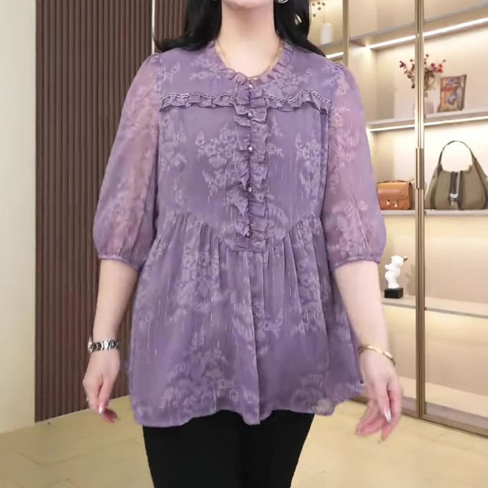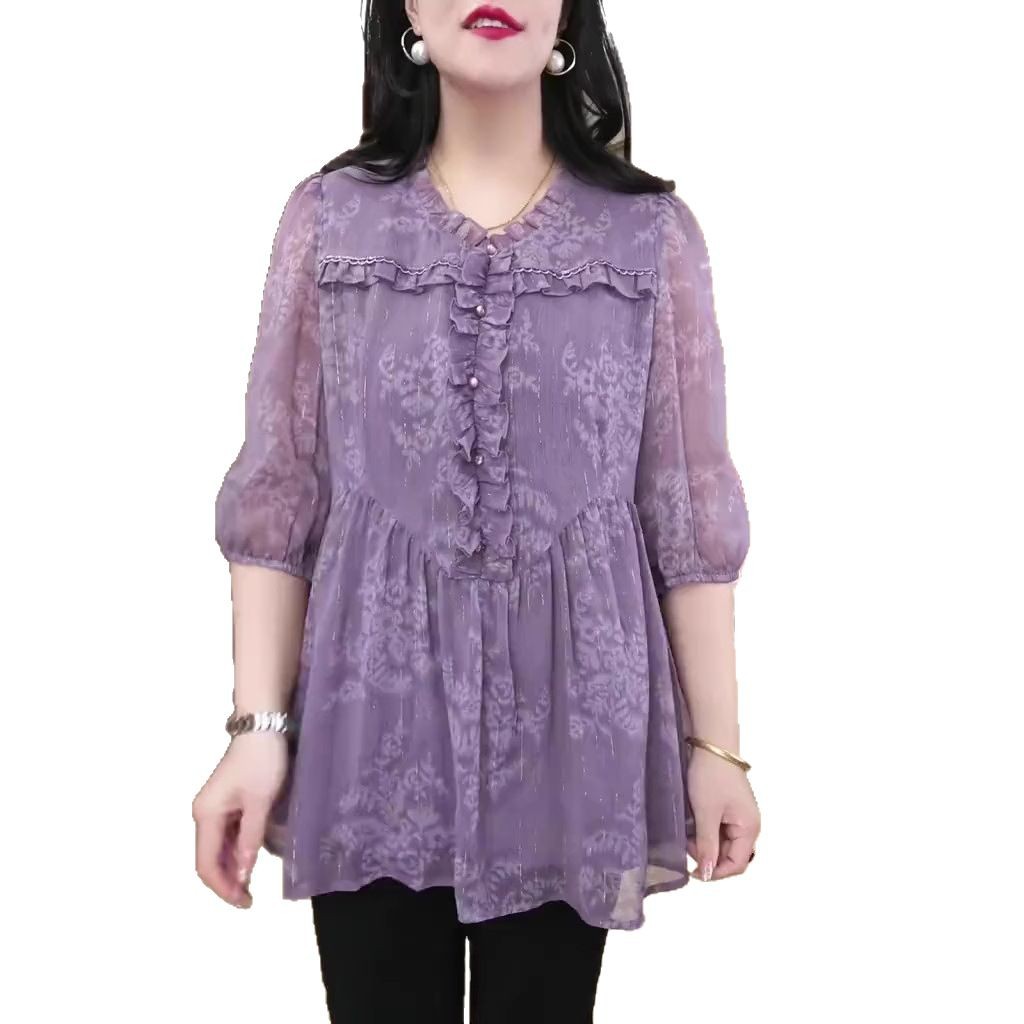 Летний новый интернет-красный тот же шифоновый принт высокого класса леди модная маленькая рубашка топ большой размер толстая MM женская одежда