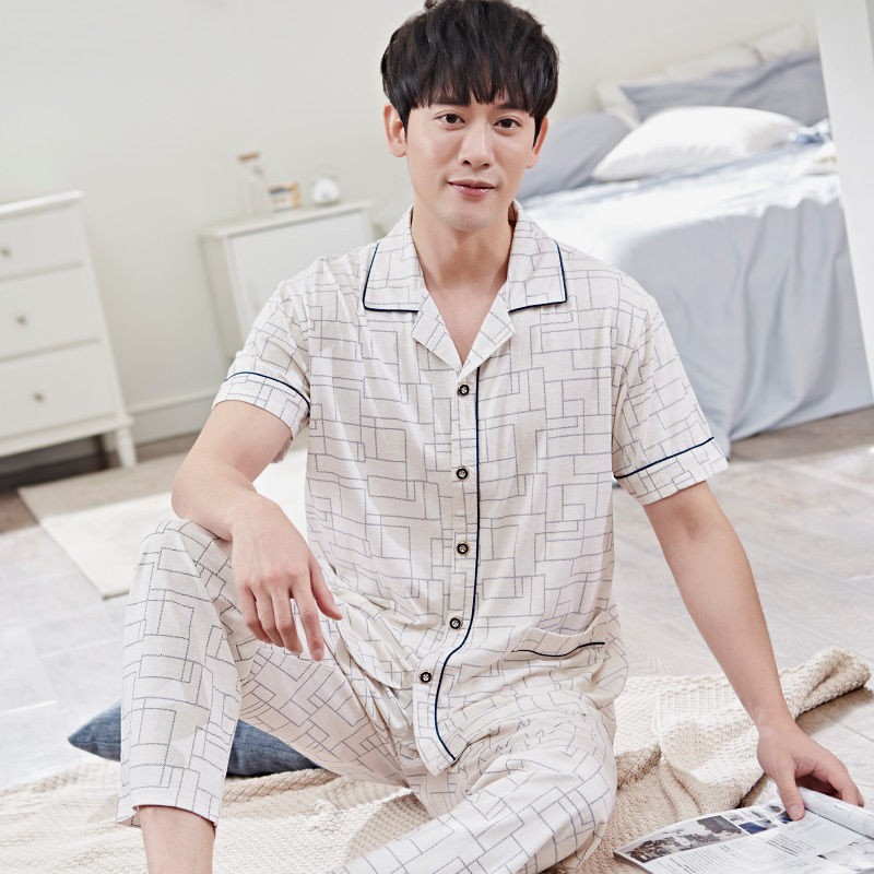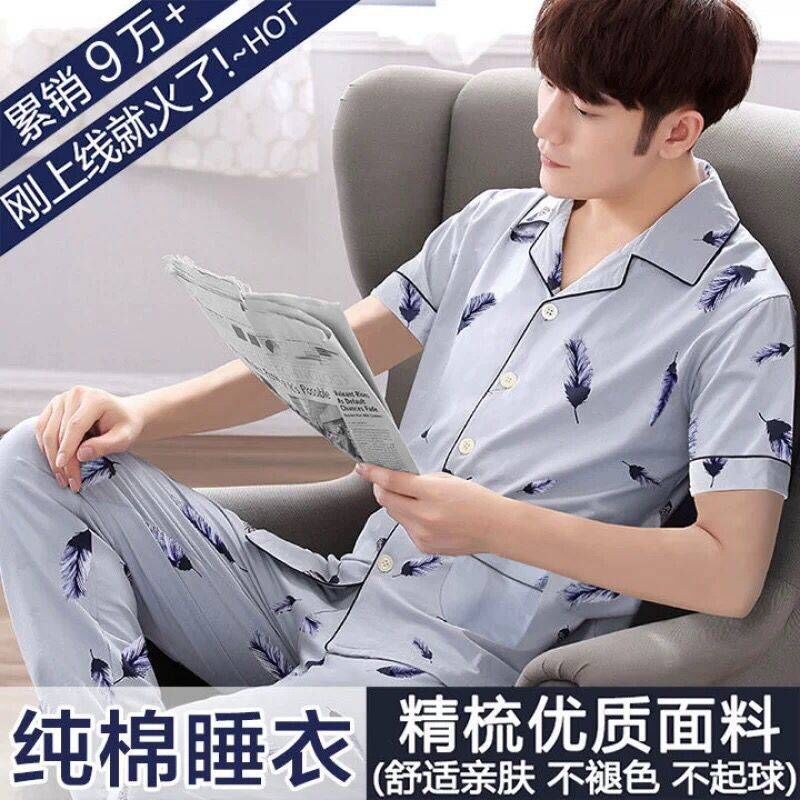 Пижама для мужчин летом тонкий с короткими рукавами молодежный кардиган простой большой размер набор домашней одежды