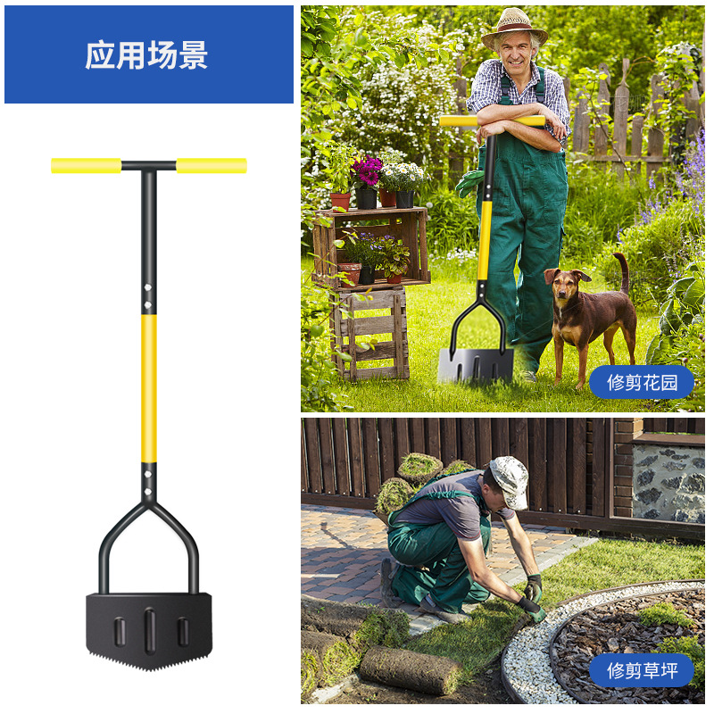 手动剪边铲 锯齿草坪修边机 带把半月草坪边缘铲工具 台阶修边铲