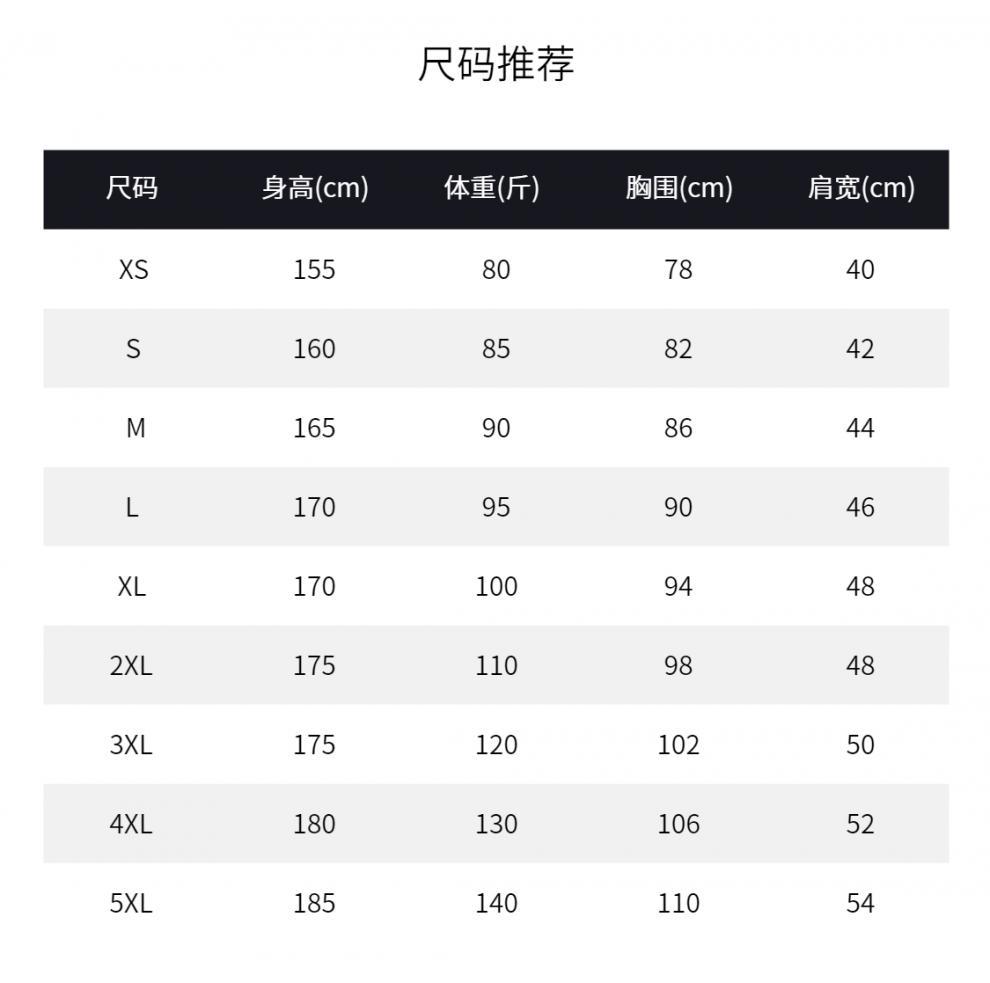 XL (рекомендуется 44-55kg ); 2XL (рекомендуется 55-60kg ); 3XL (рекомендуется 60-65kg ); 4XL (рекомендуется 65-70kg ); 5XL (рекомендуется 70-75kg ); 6XL (рекомендуется 75-82.5kg )