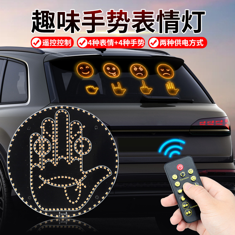 Трансграничная новая автомобильная светодиодная веселая лампа смайлика заднее стекло многофункциональная сигнальная лампа жестов