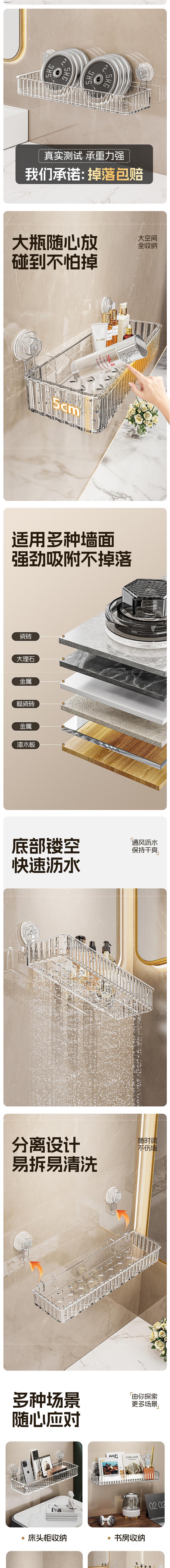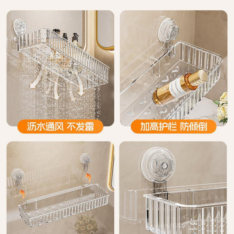 Акриловая полка для ванной комнаты, настенная полка для хранения косметики с присосками для унитаза, без сверления, оптом