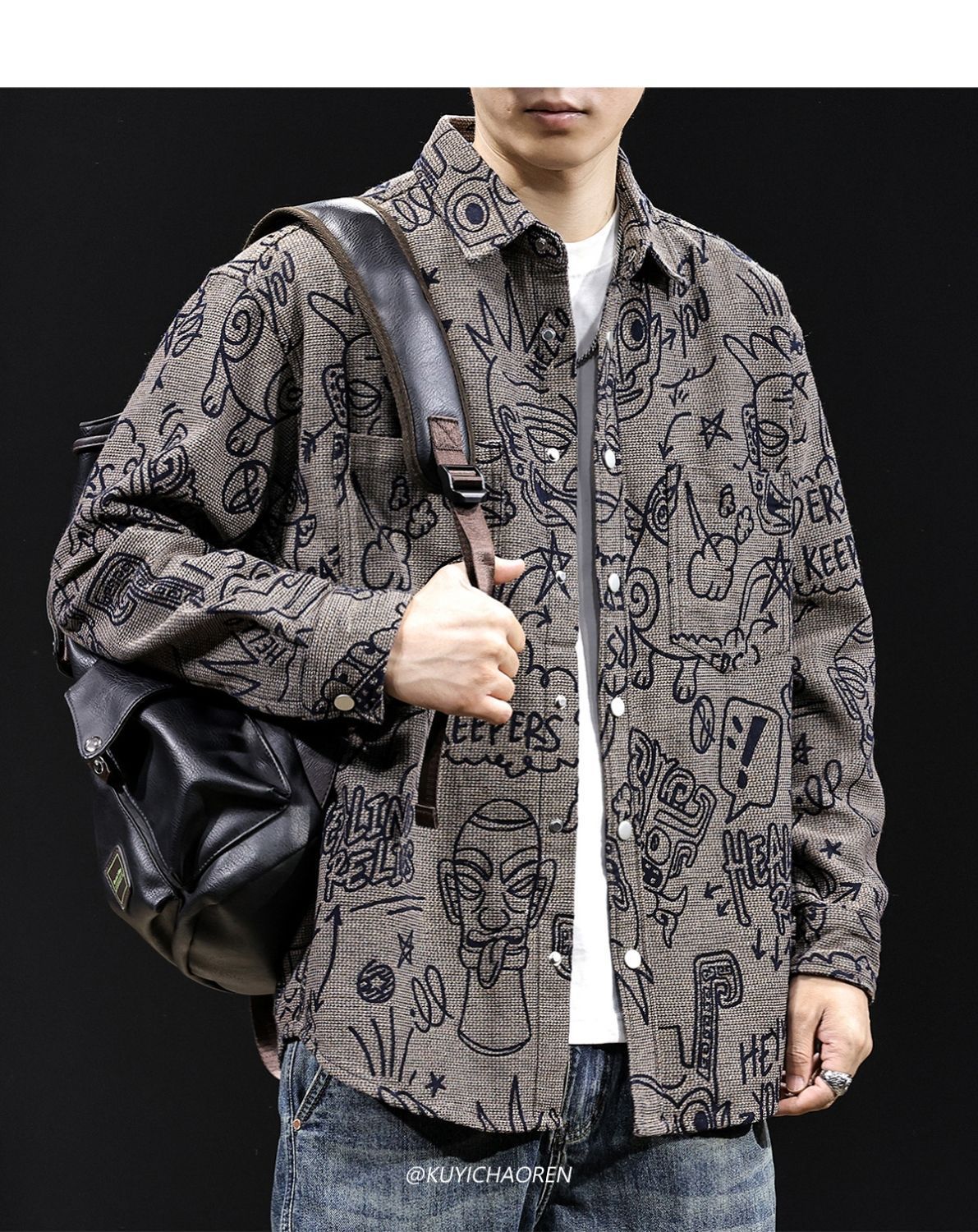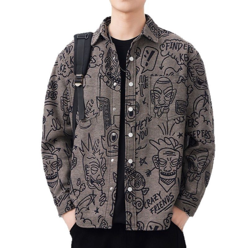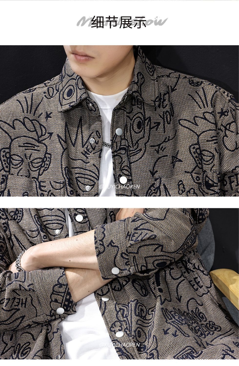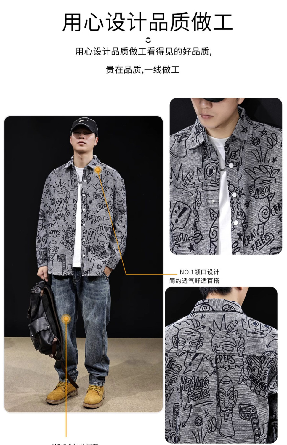 Американская ретро жаккардовая рубашка мужская куртка с длинными рукавами 2025 новый повседневный высокого класса приливная одежда большой размер весна и осень