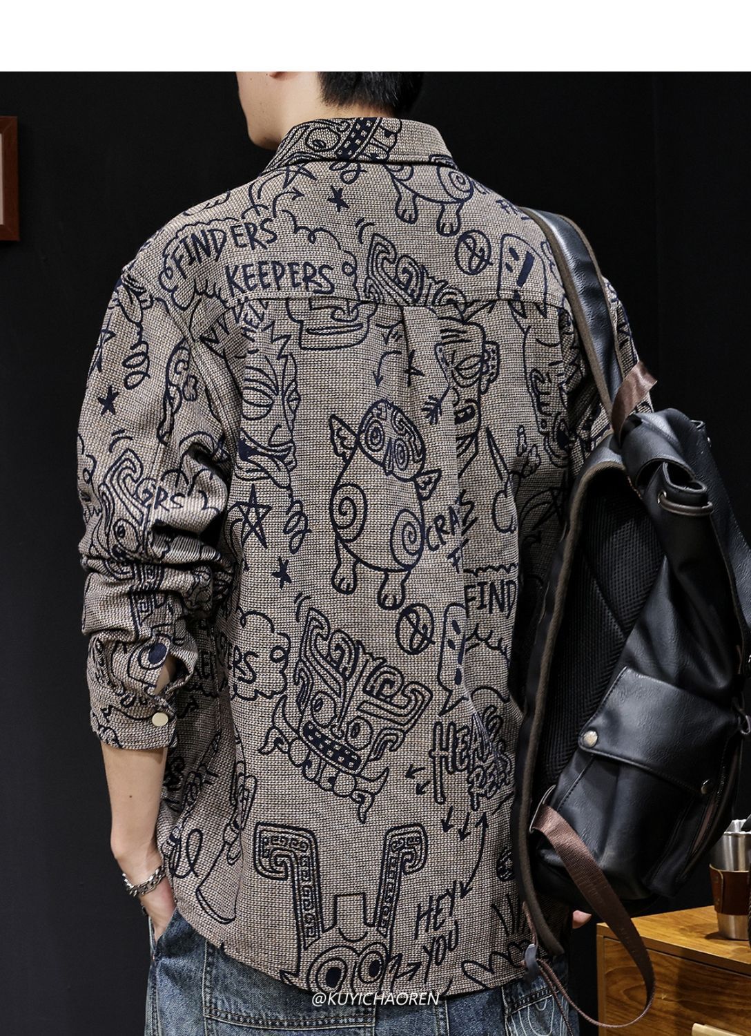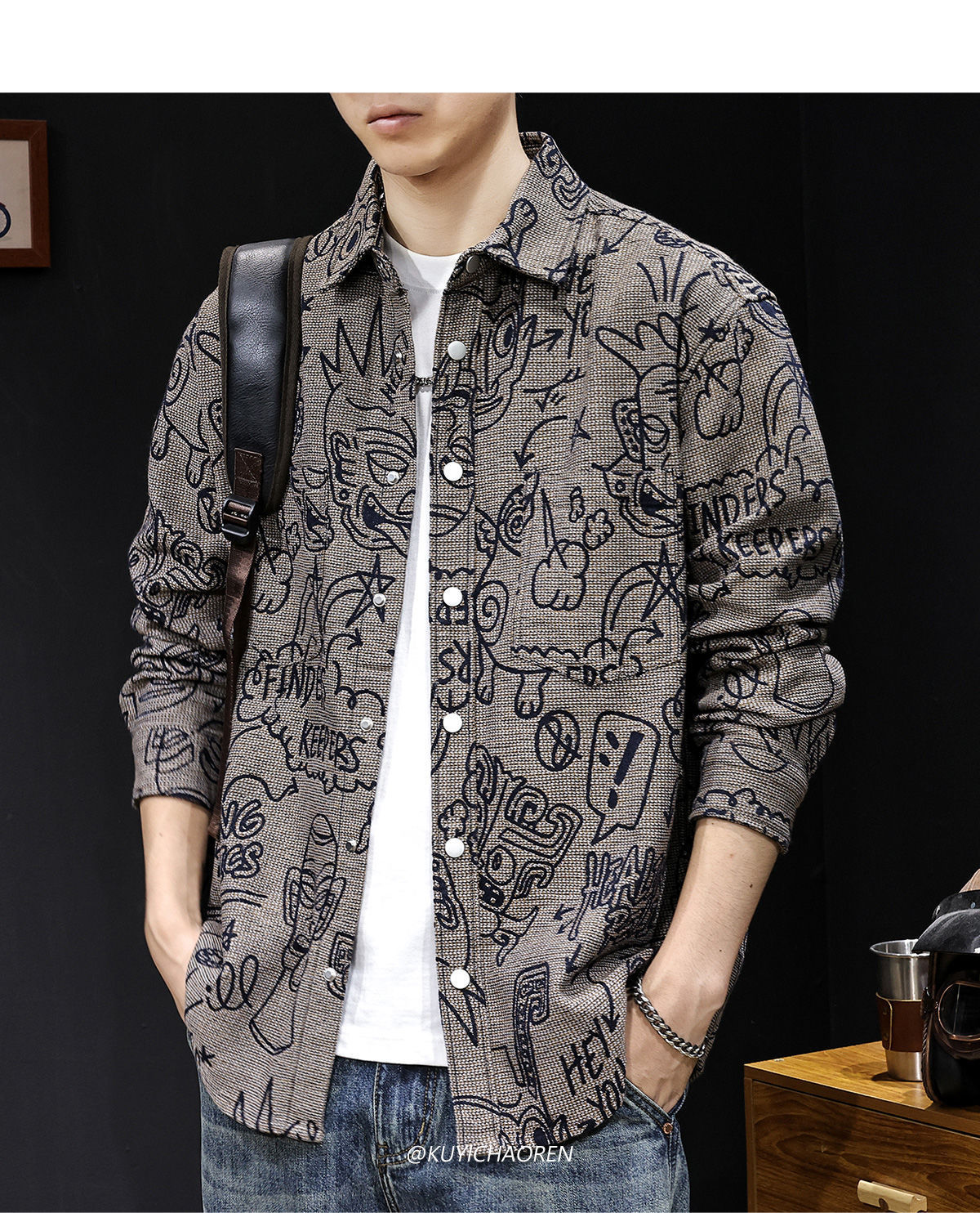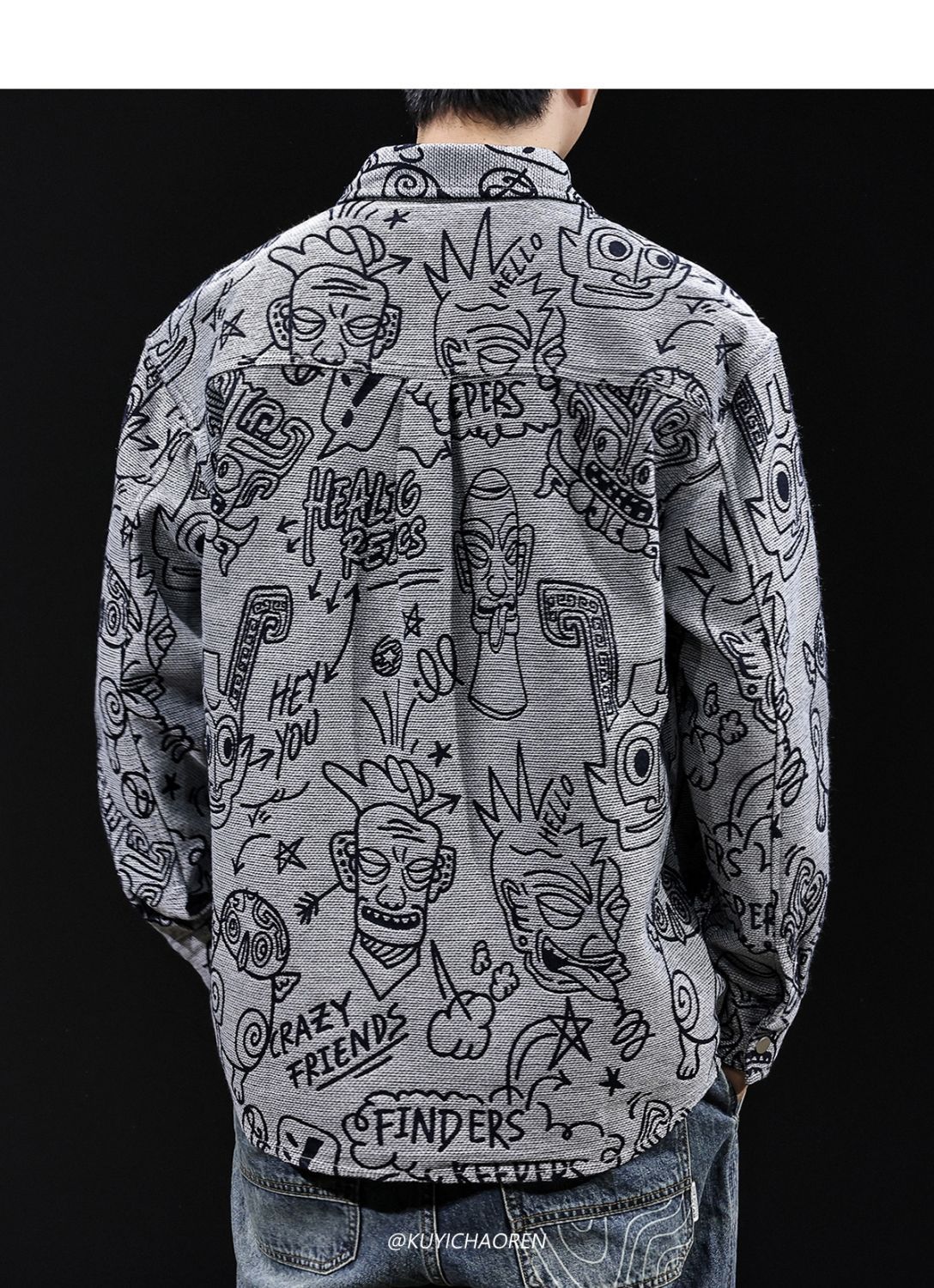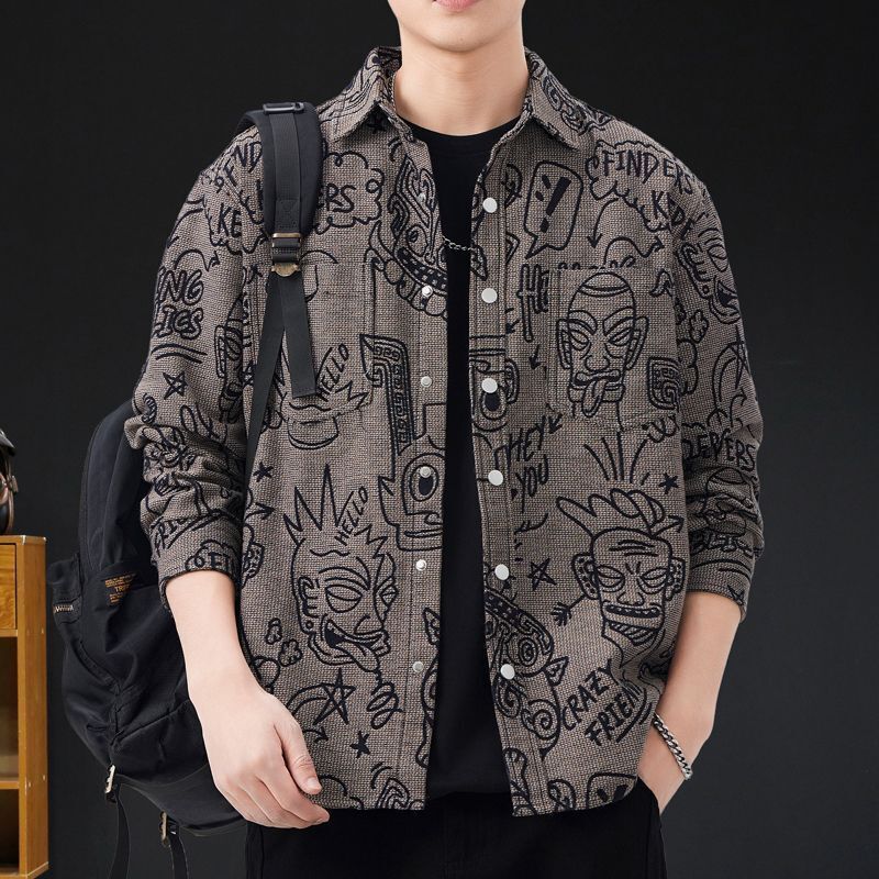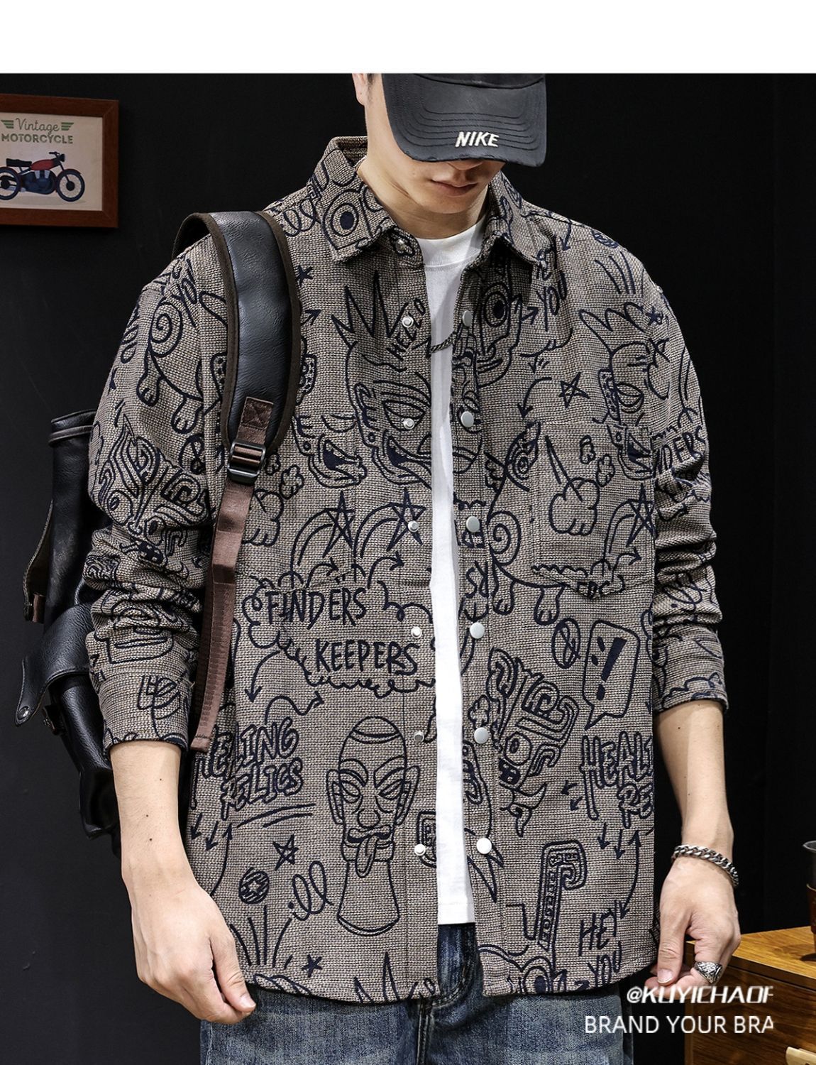 Американская ретро жаккардовая рубашка мужская куртка с длинными рукавами 2025 новый повседневный высокого класса приливная одежда большой размер весна и осень