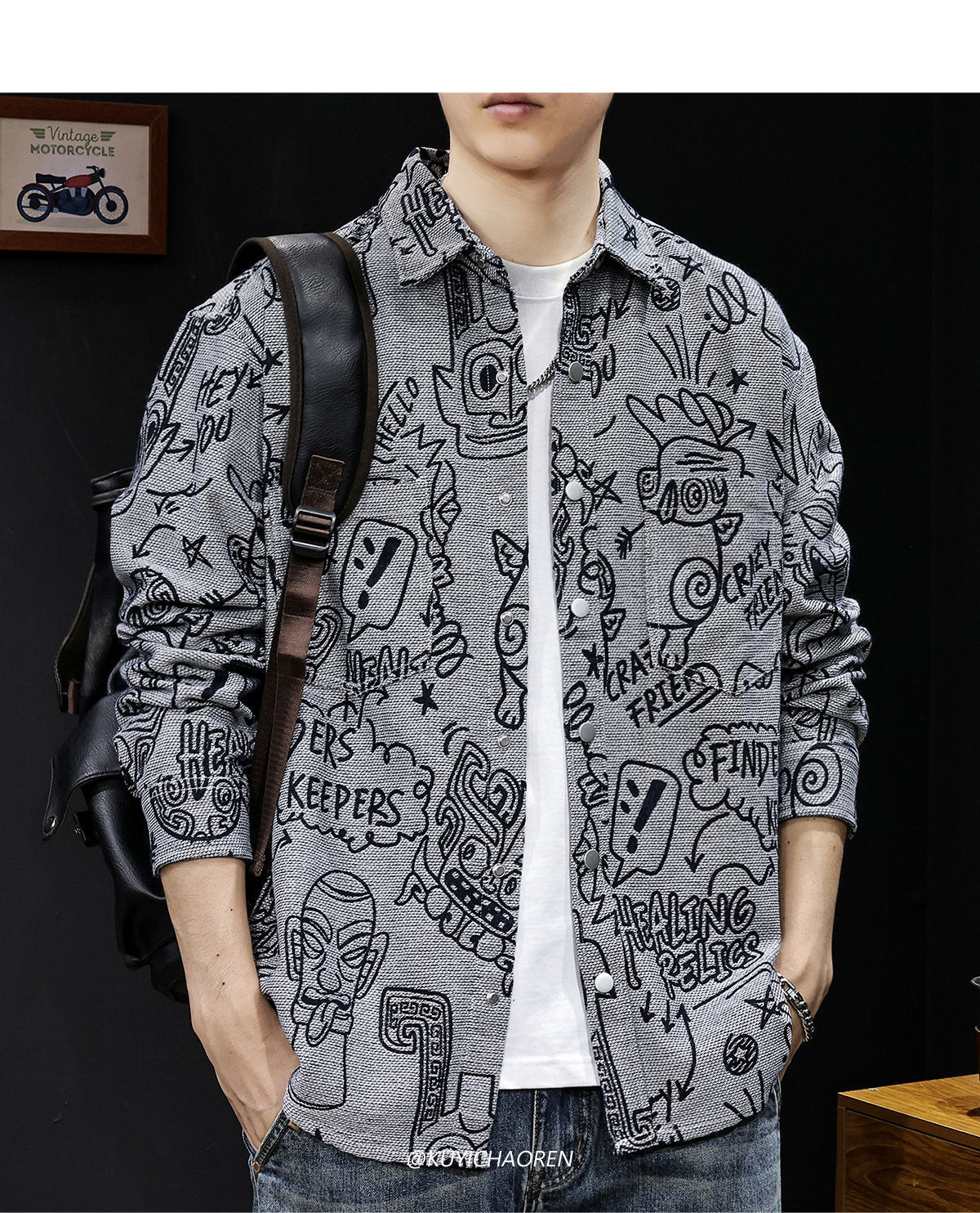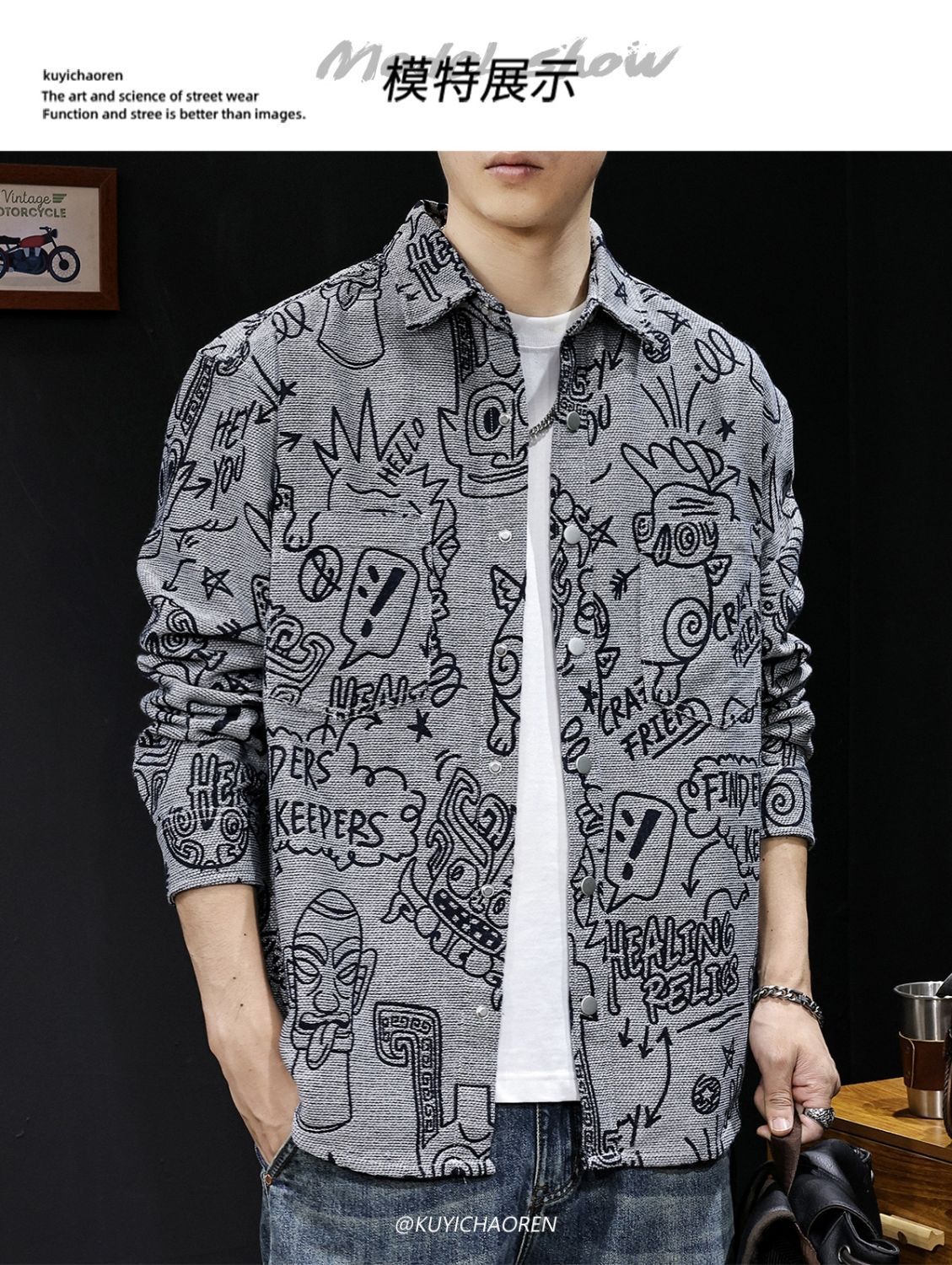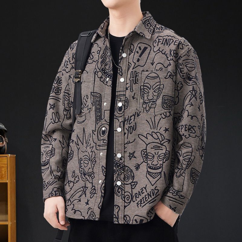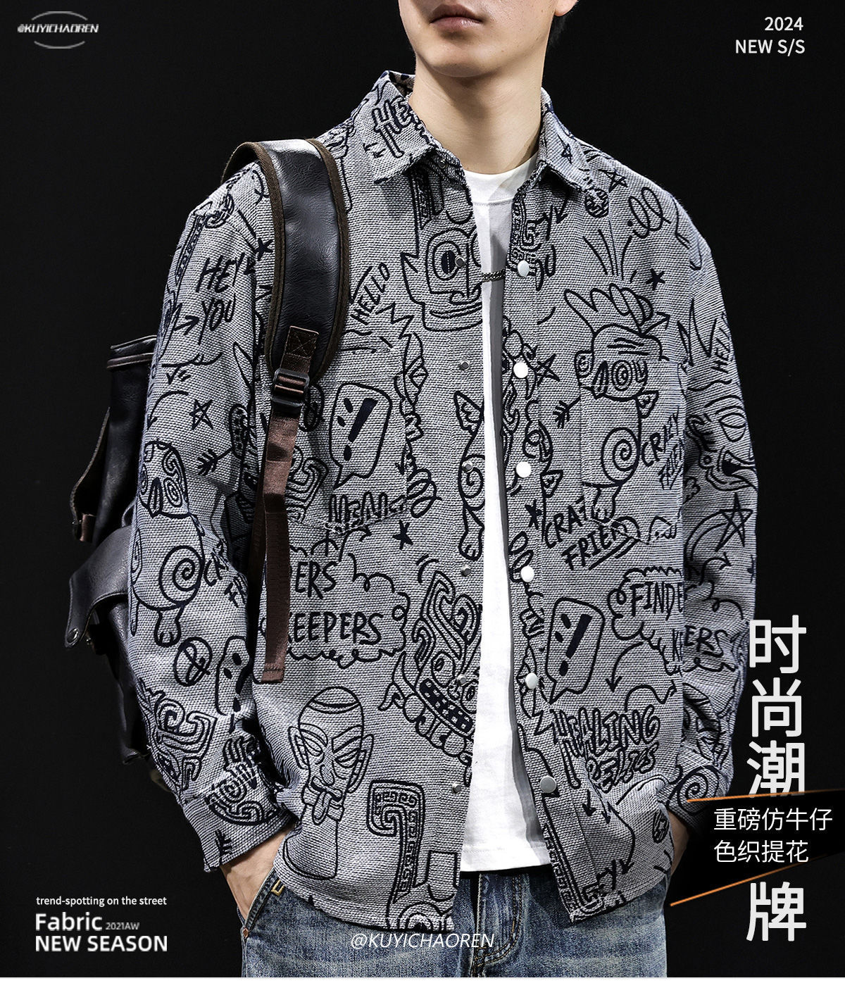 Американская ретро жаккардовая рубашка мужская куртка с длинными рукавами 2025 новый повседневный высокого класса приливная одежда большой размер весна и осень