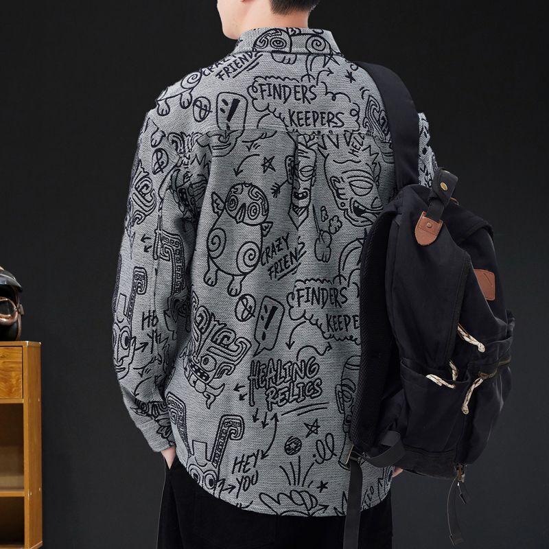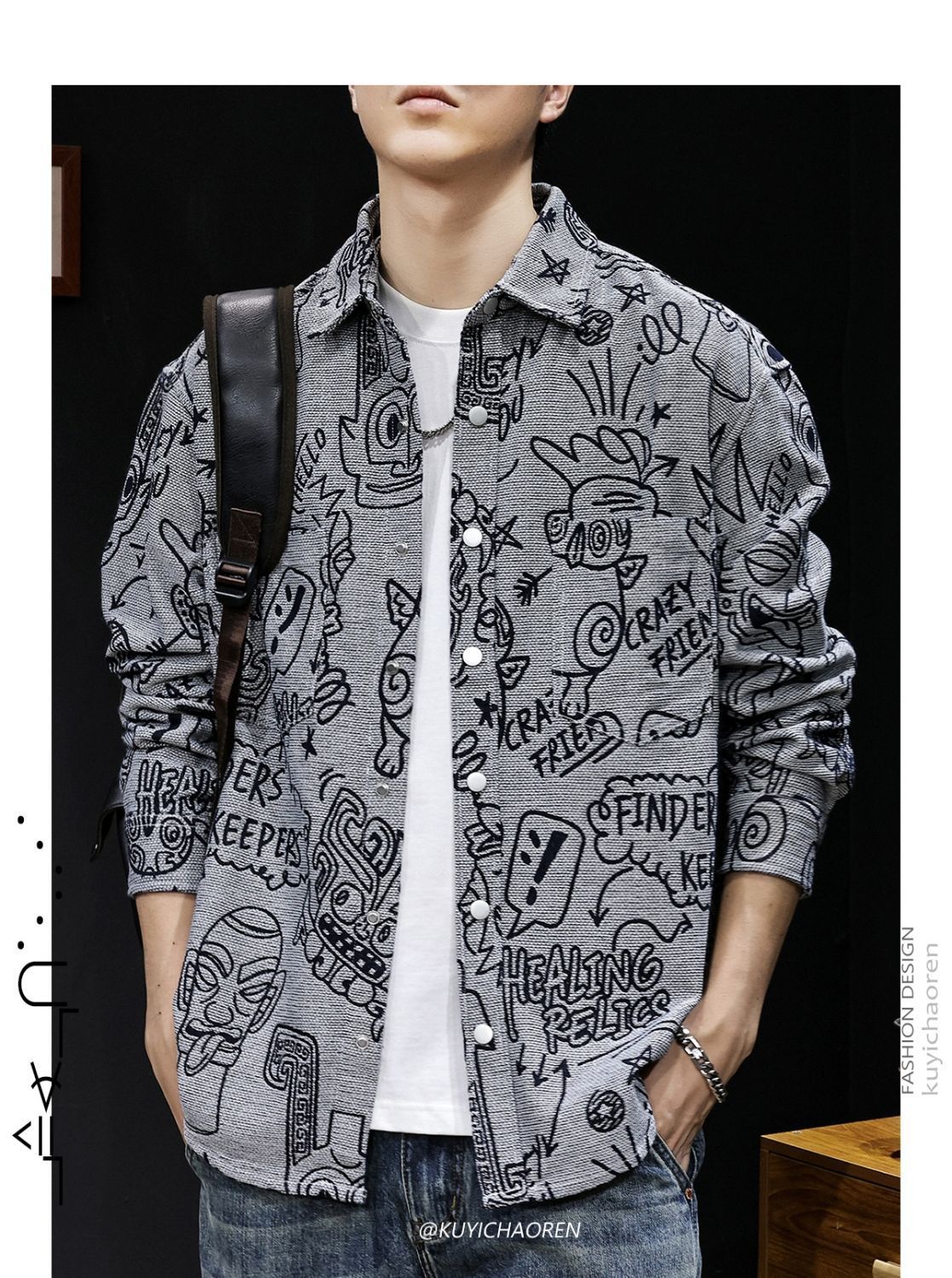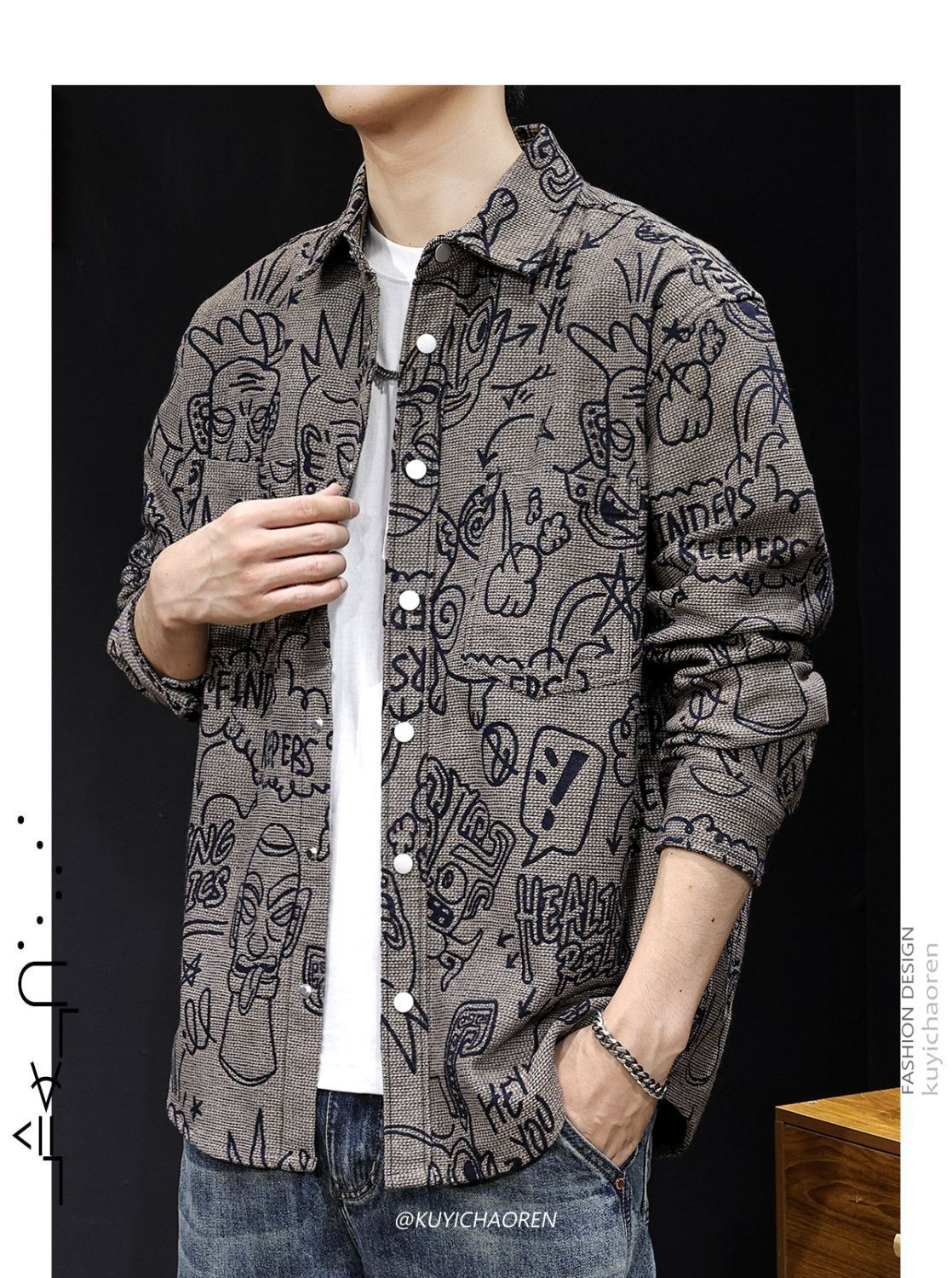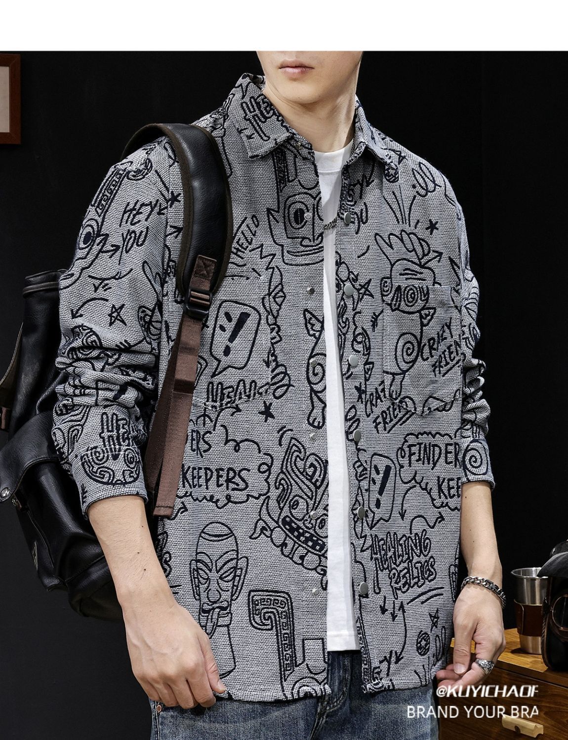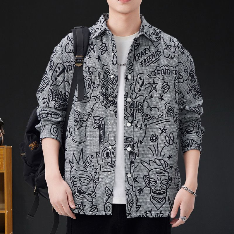 Американская ретро жаккардовая рубашка мужская куртка с длинными рукавами 2025 новый повседневный высокого класса приливная одежда большой размер весна и осень