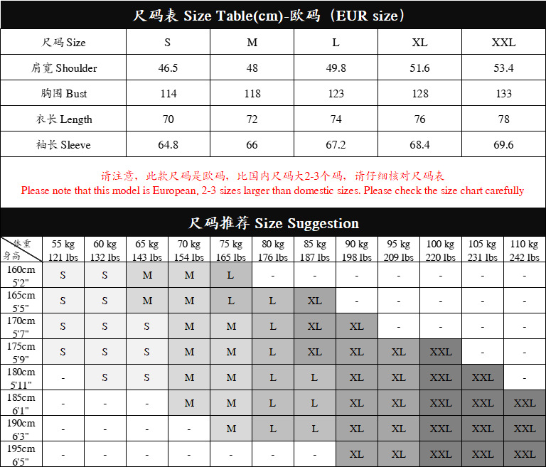 此款外套为欧美尺寸,比亚洲码偏大2个尺寸