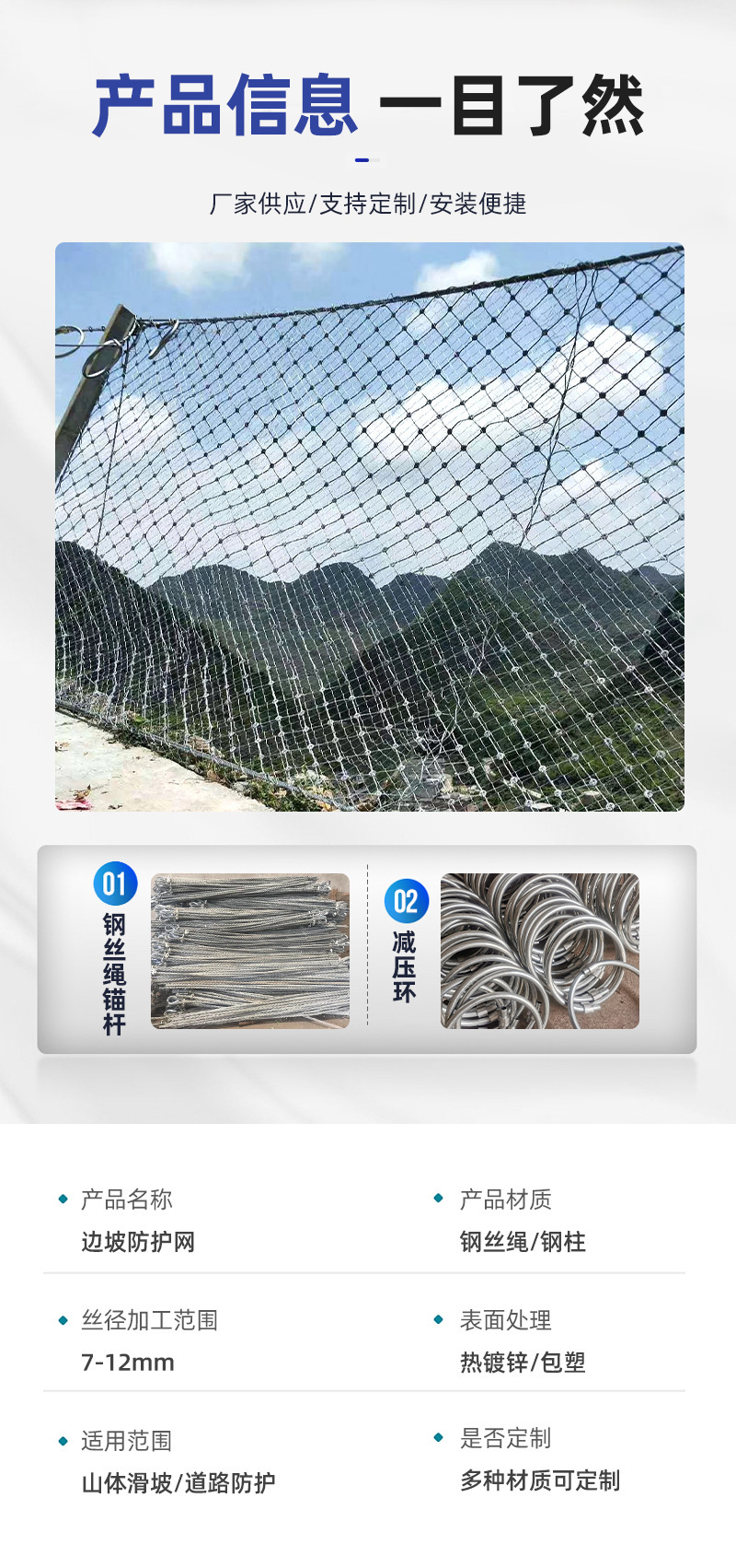Защитная сетка наклона с активным краем, защитная сетка из камня, предотвращающая падение, стальная проволока для горного наклона, высокоскоростная защитная сетка с гибким наклоном