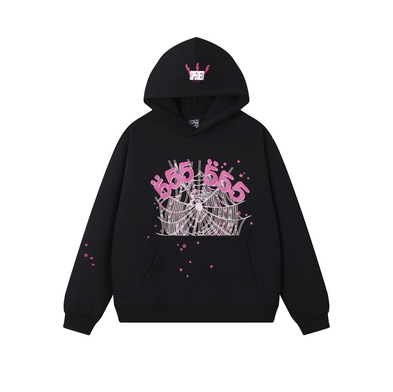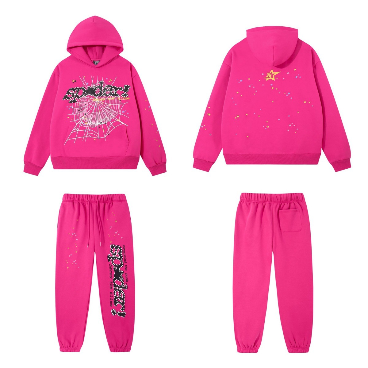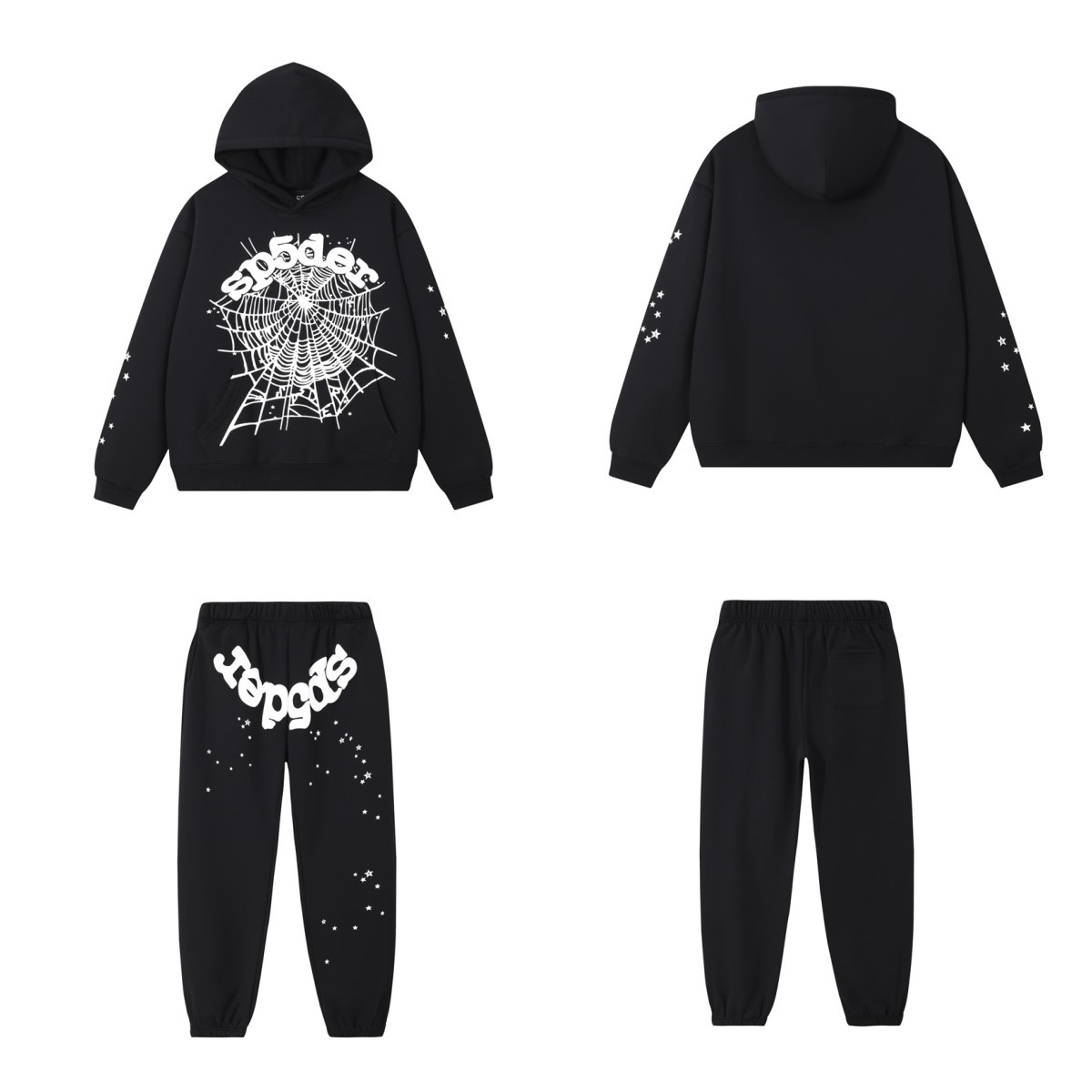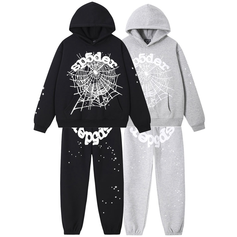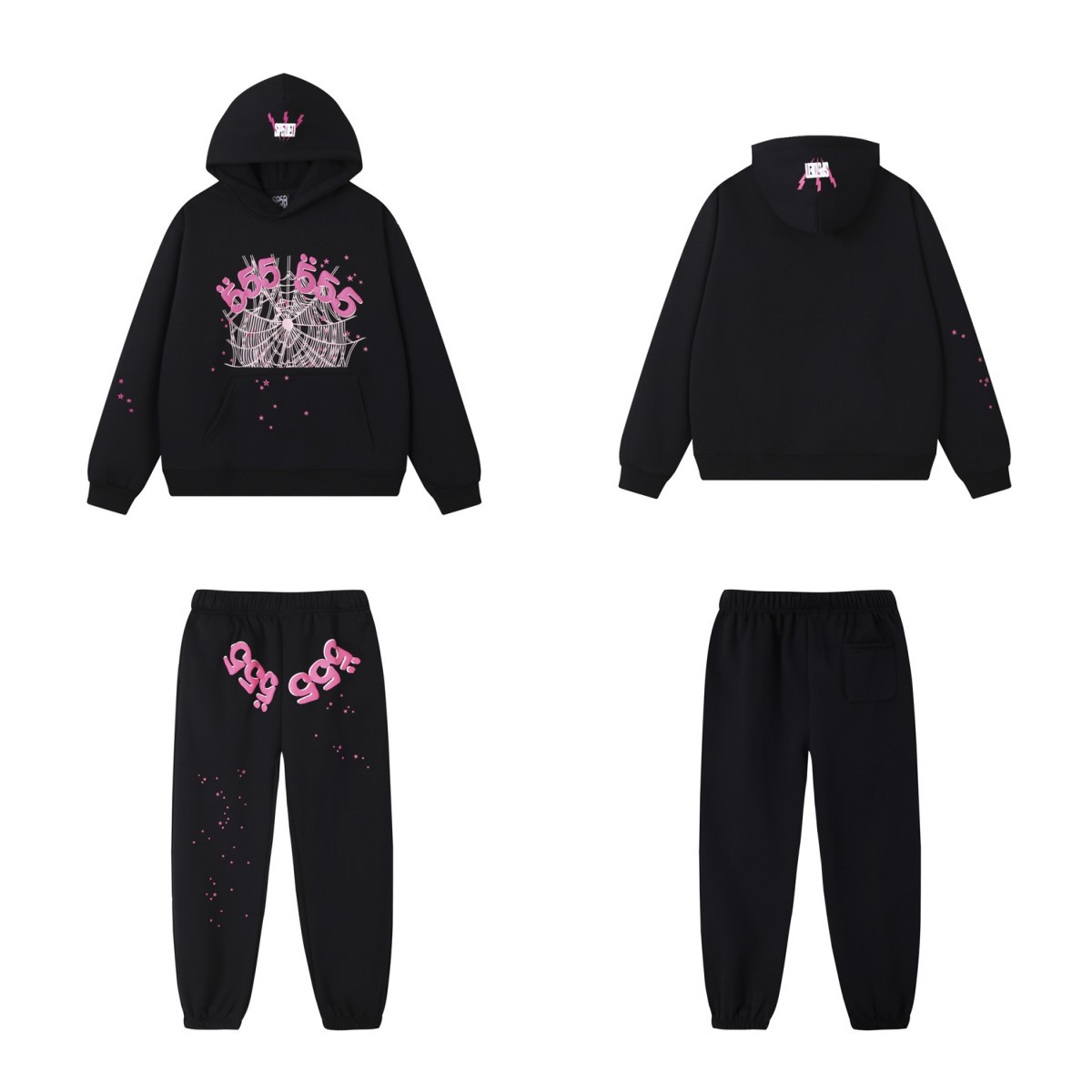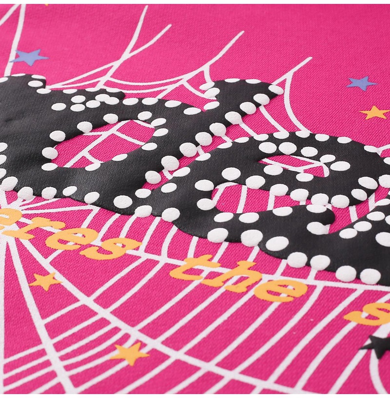 Красота Sp5der 55555 Классический паутинный принт для мужчин и женщин Повседневные тенденции с флисом брюки с капюшоном
