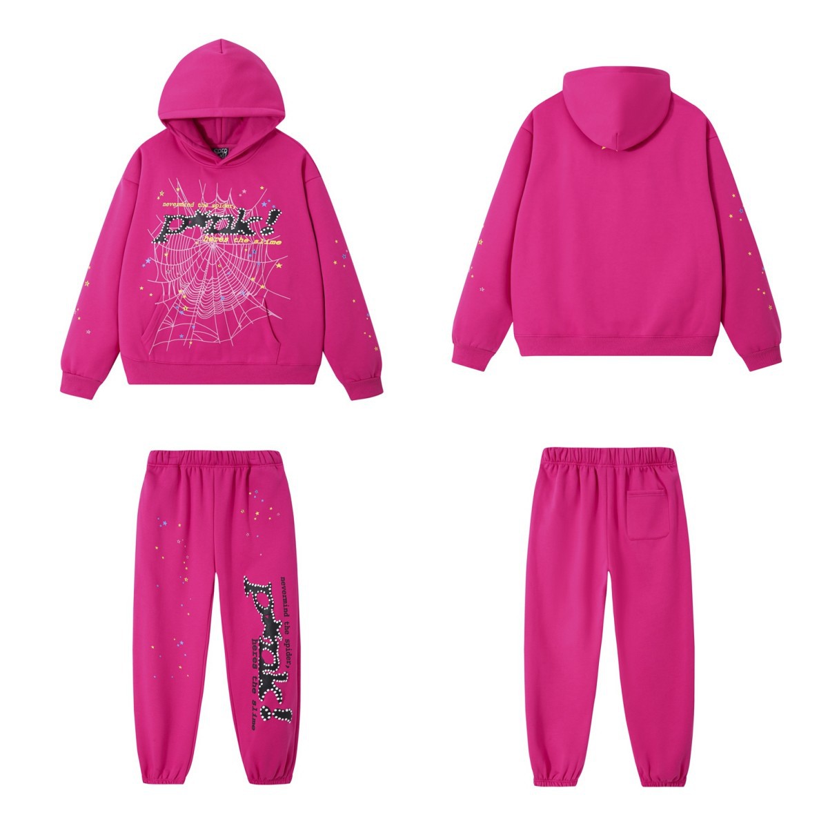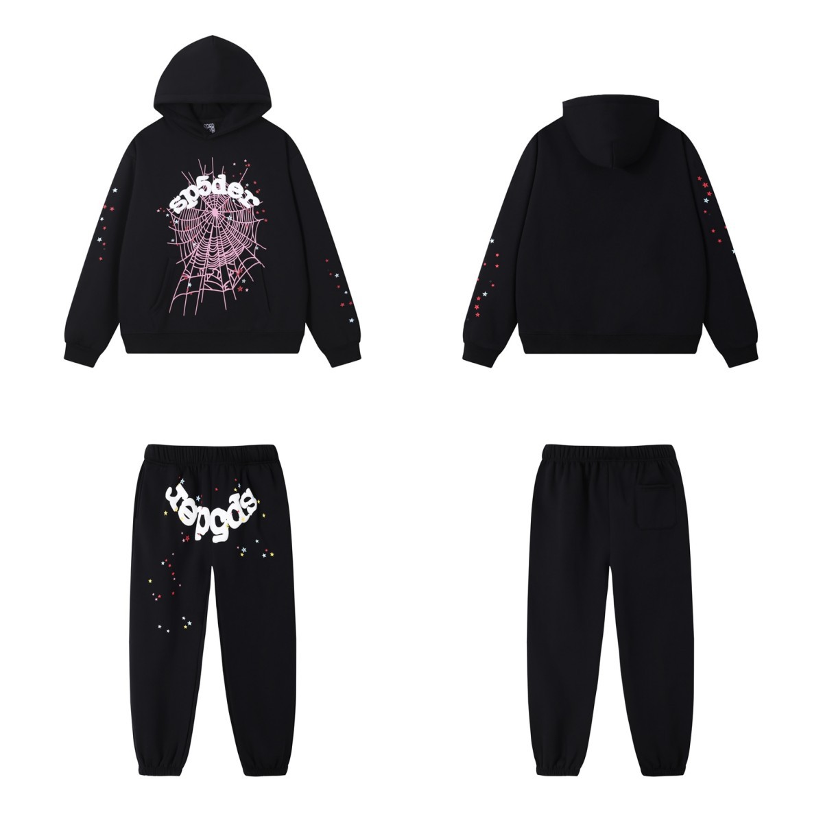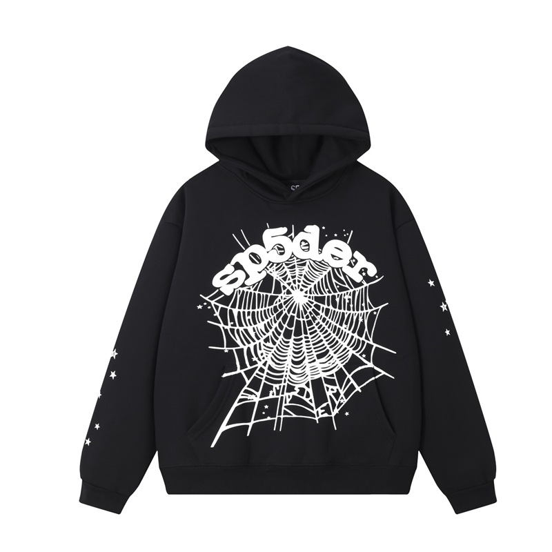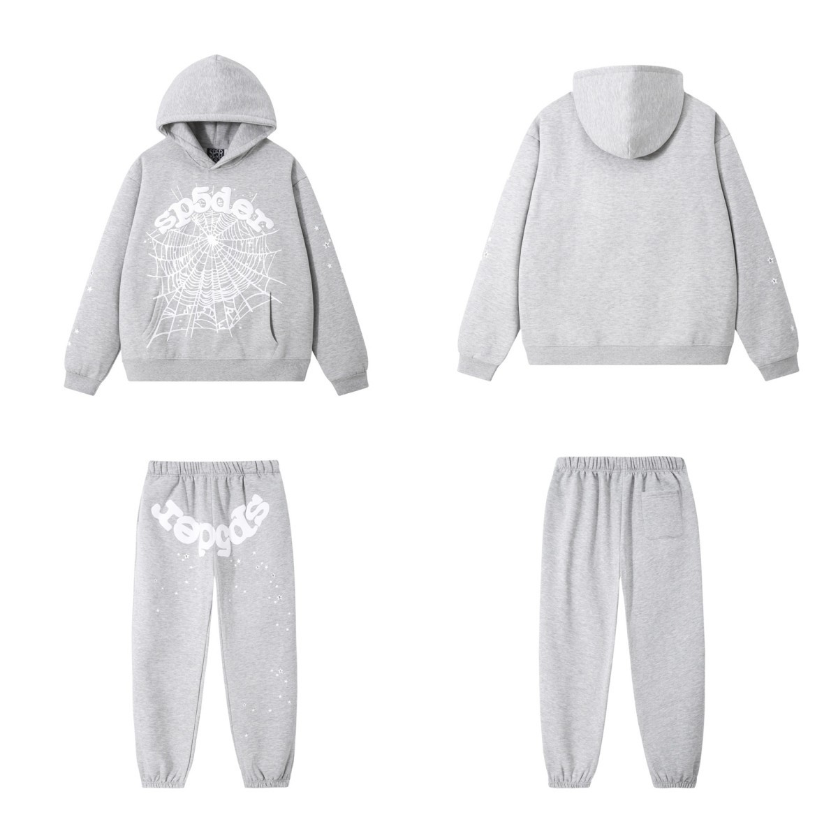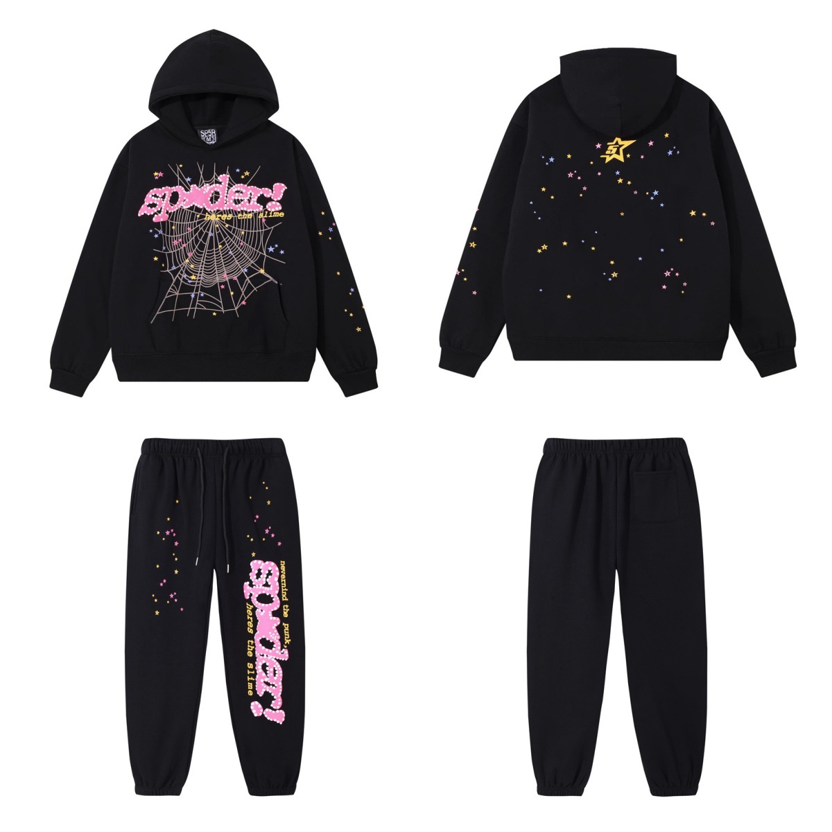 Красота Sp5der 55555 Классический паутинный принт для мужчин и женщин Повседневные тенденции с флисом брюки с капюшоном
