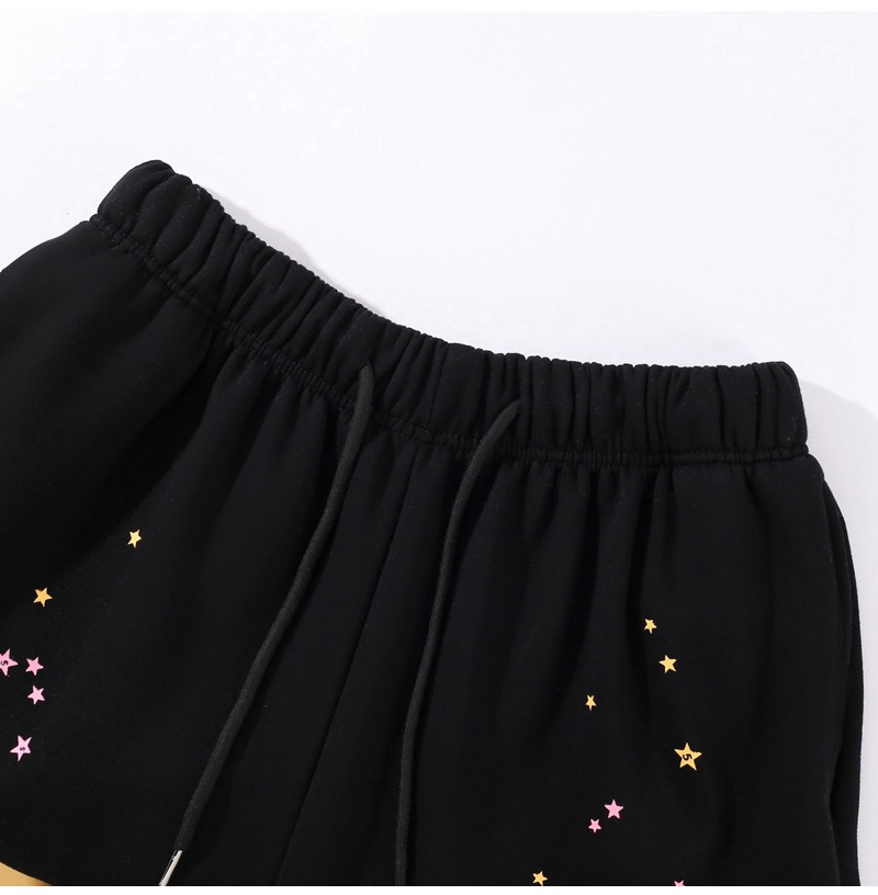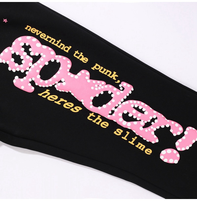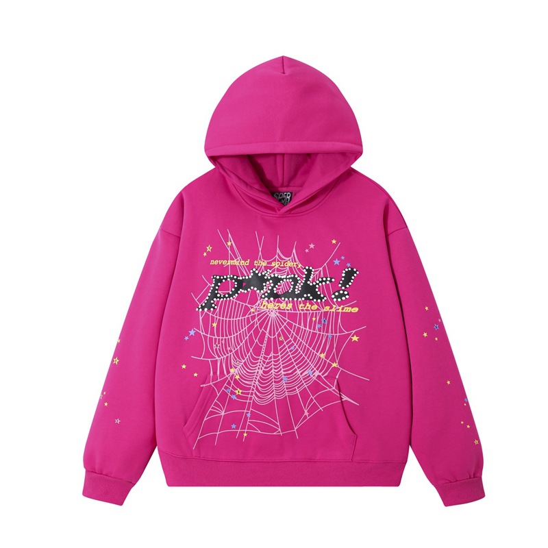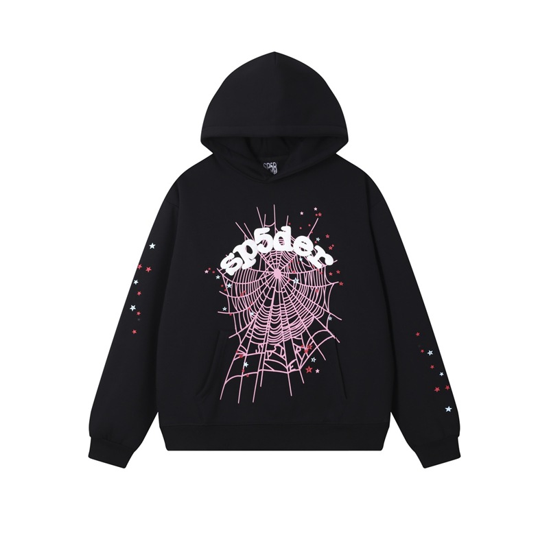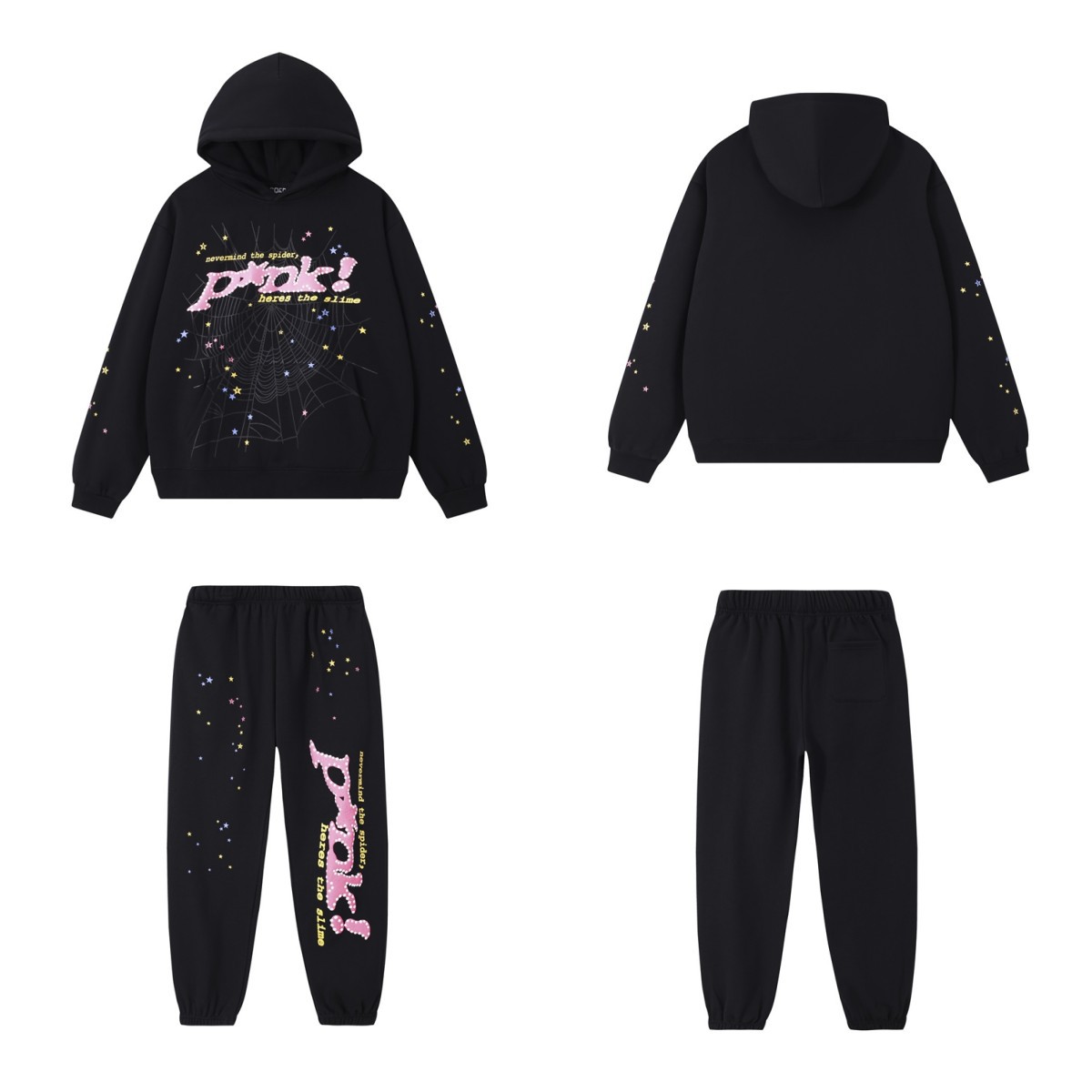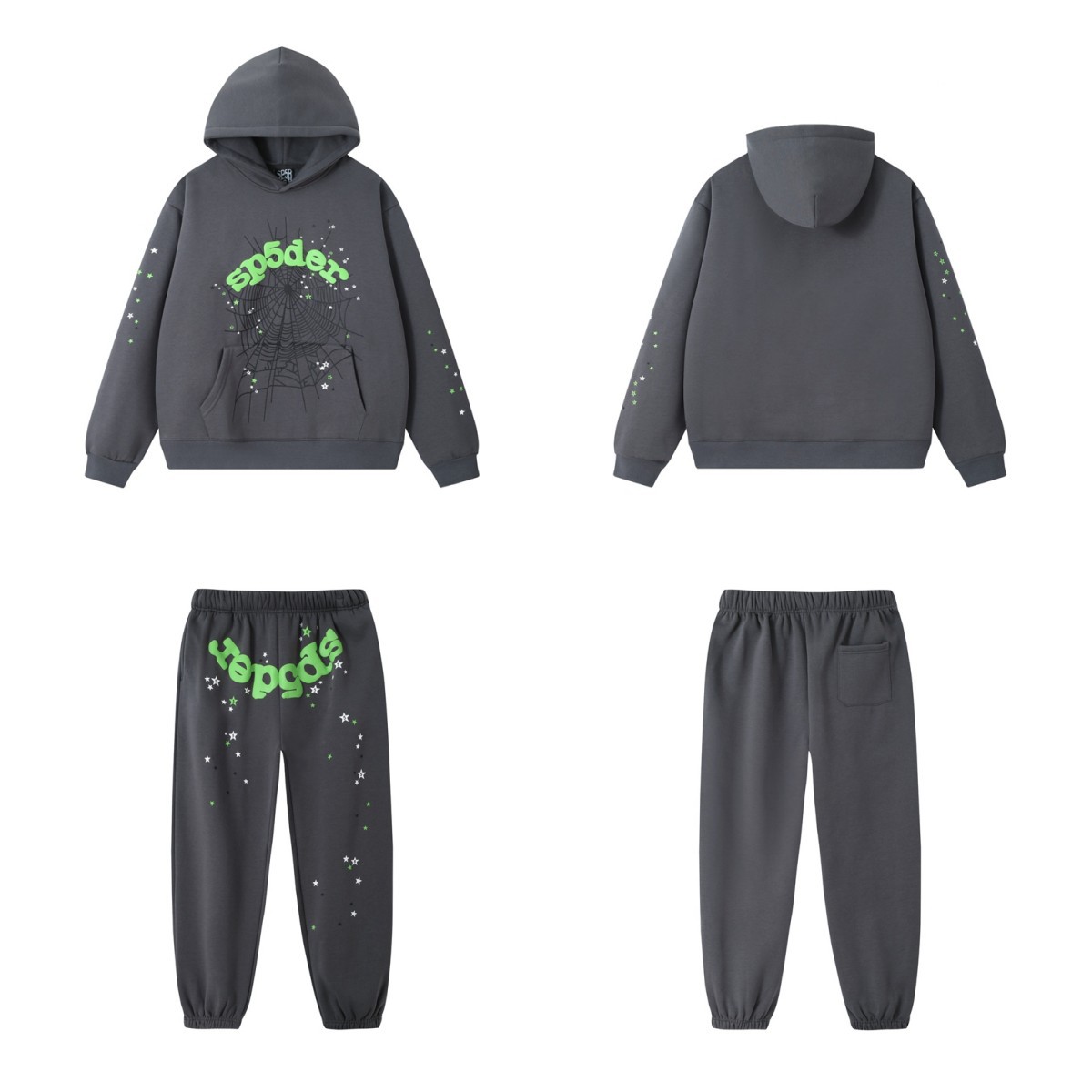 Красота Sp5der 55555 Классический паутинный принт для мужчин и женщин Повседневные тенденции с флисом брюки с капюшоном