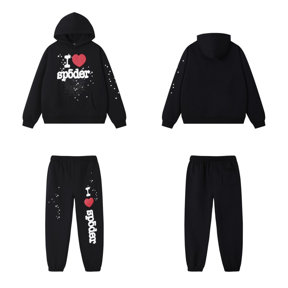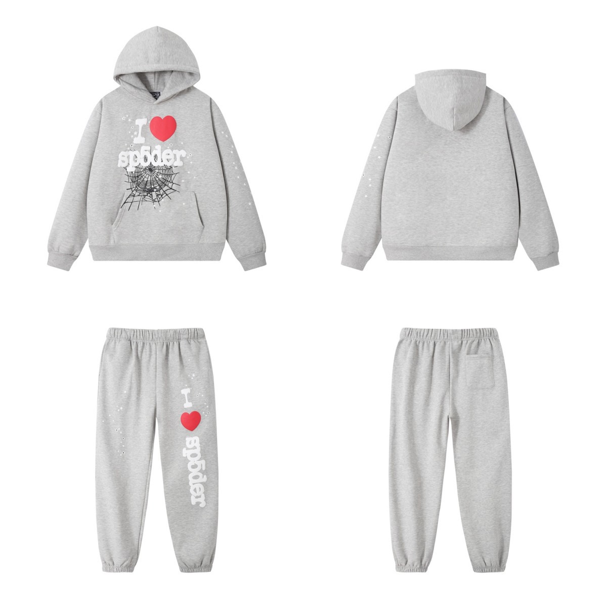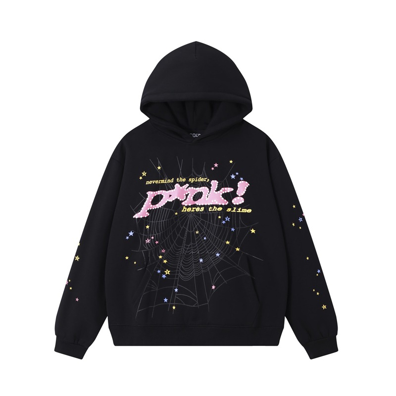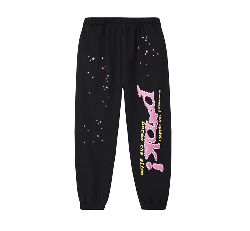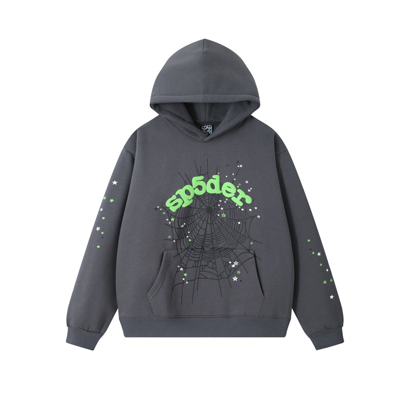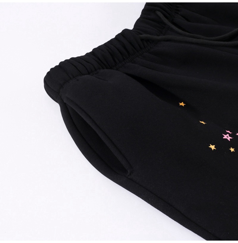 Красота Sp5der 55555 Классический паутинный принт для мужчин и женщин Повседневные тенденции с флисом брюки с капюшоном