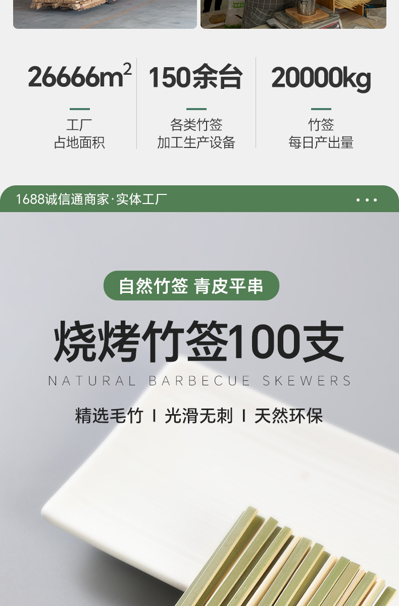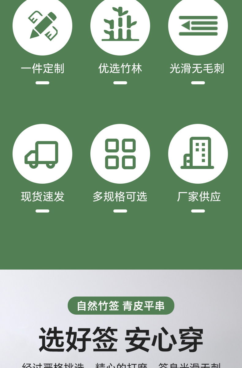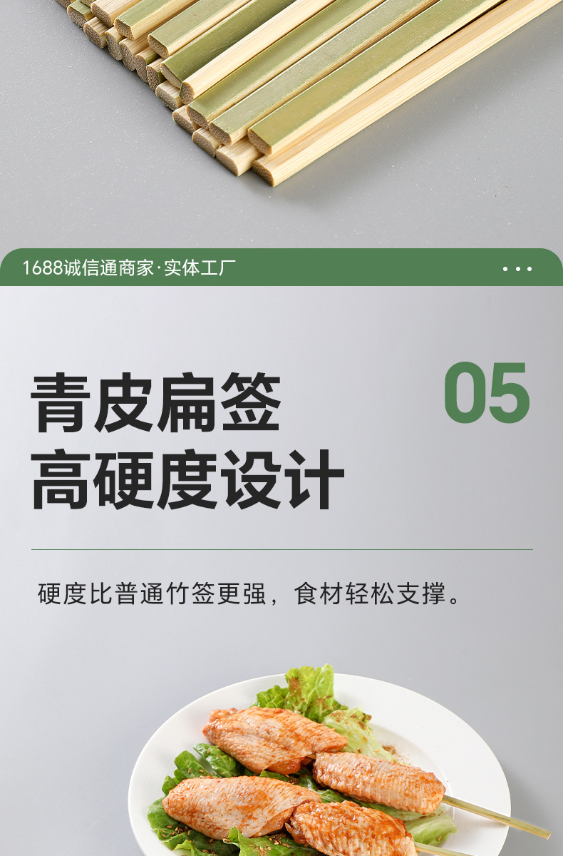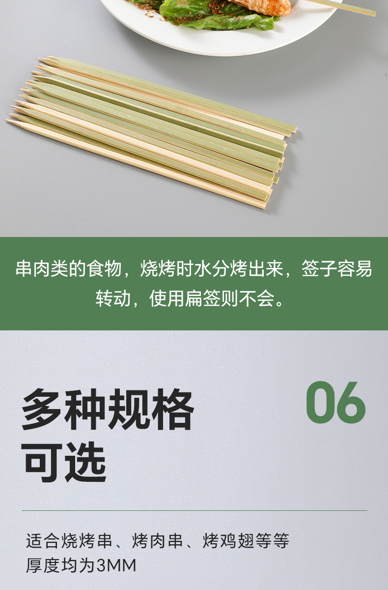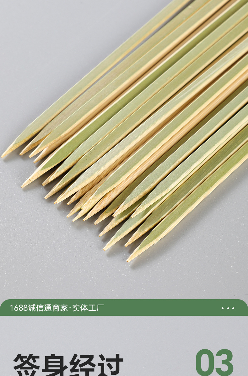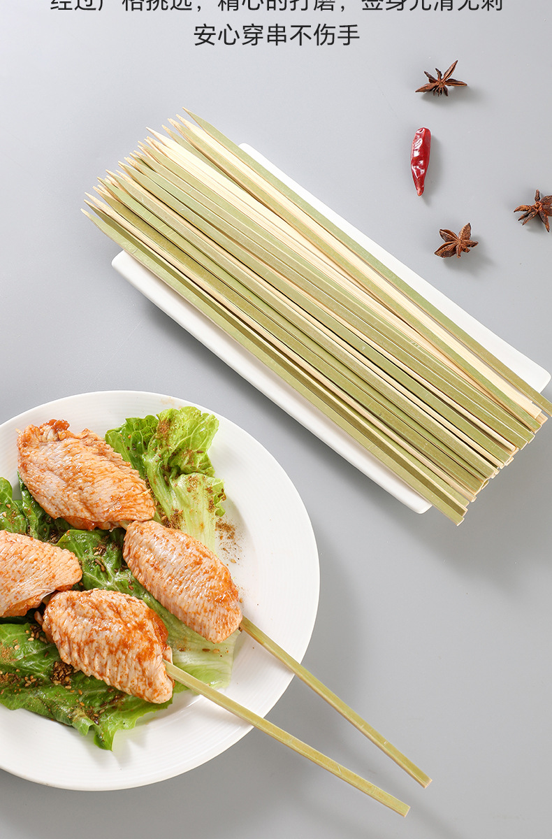 Бамбуковая палка плоская палка зеленая шкура жареная птица жареная бамбуковая палка одноразовая шашлык из баранины коммерческая оптовая бамбуковая палка для барбекю