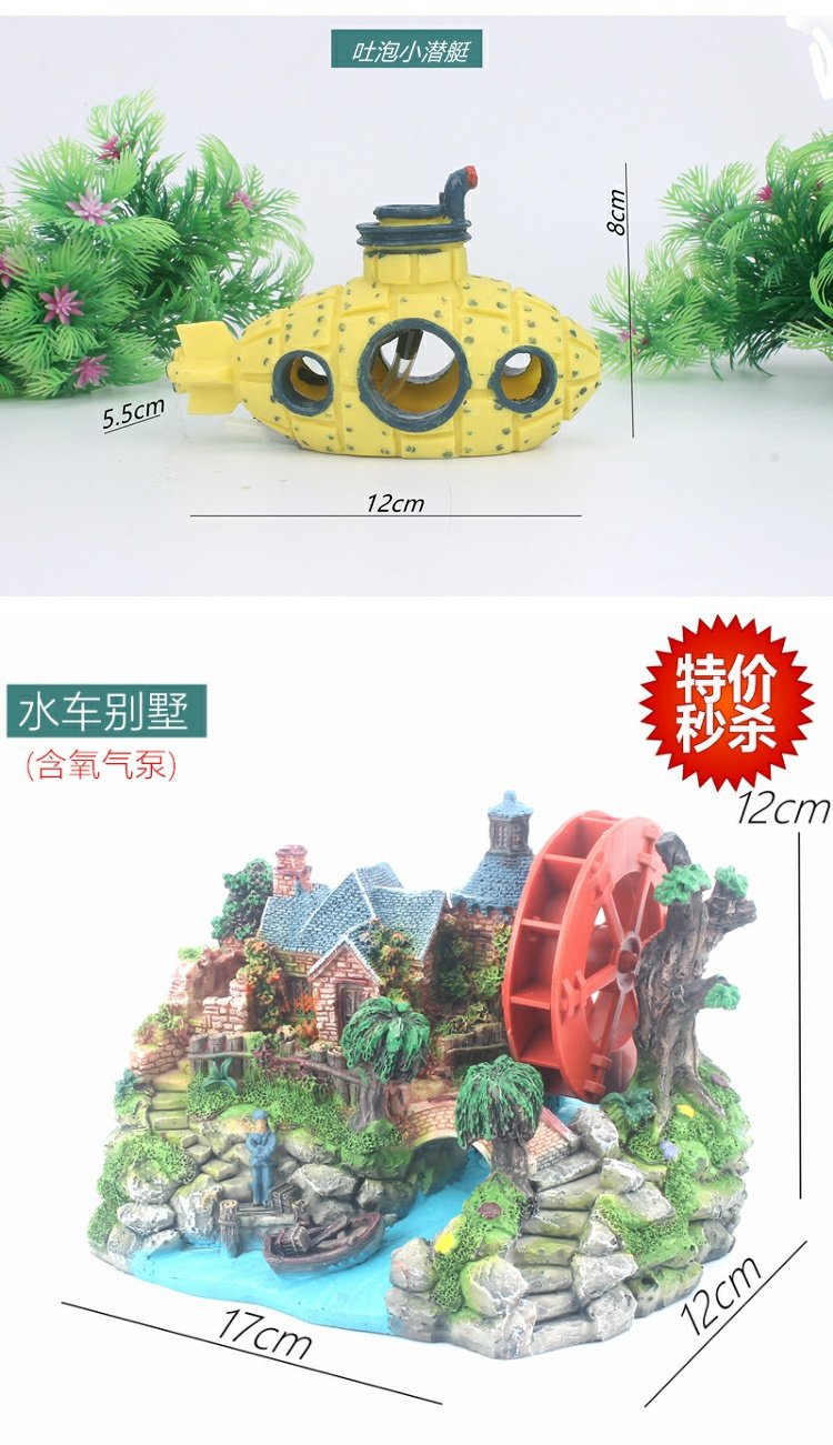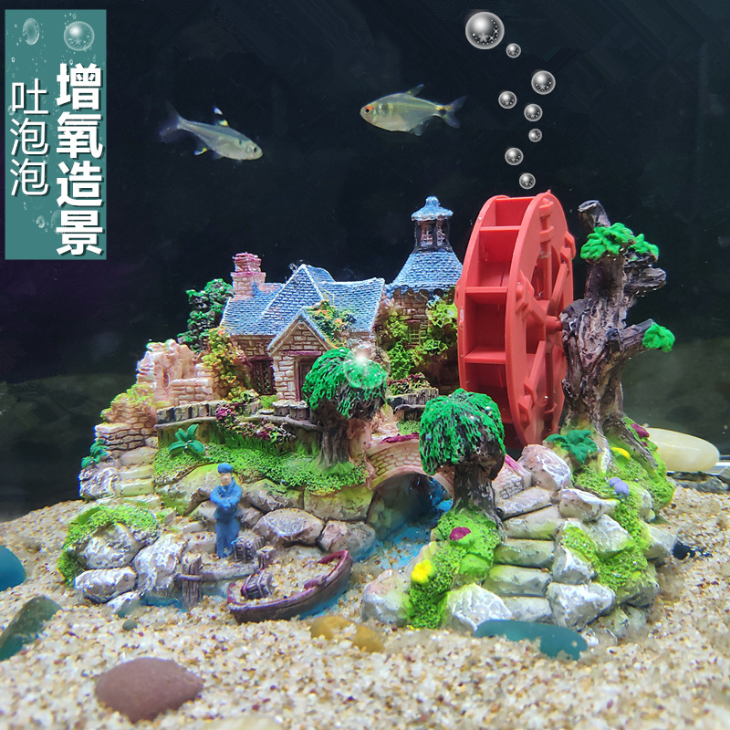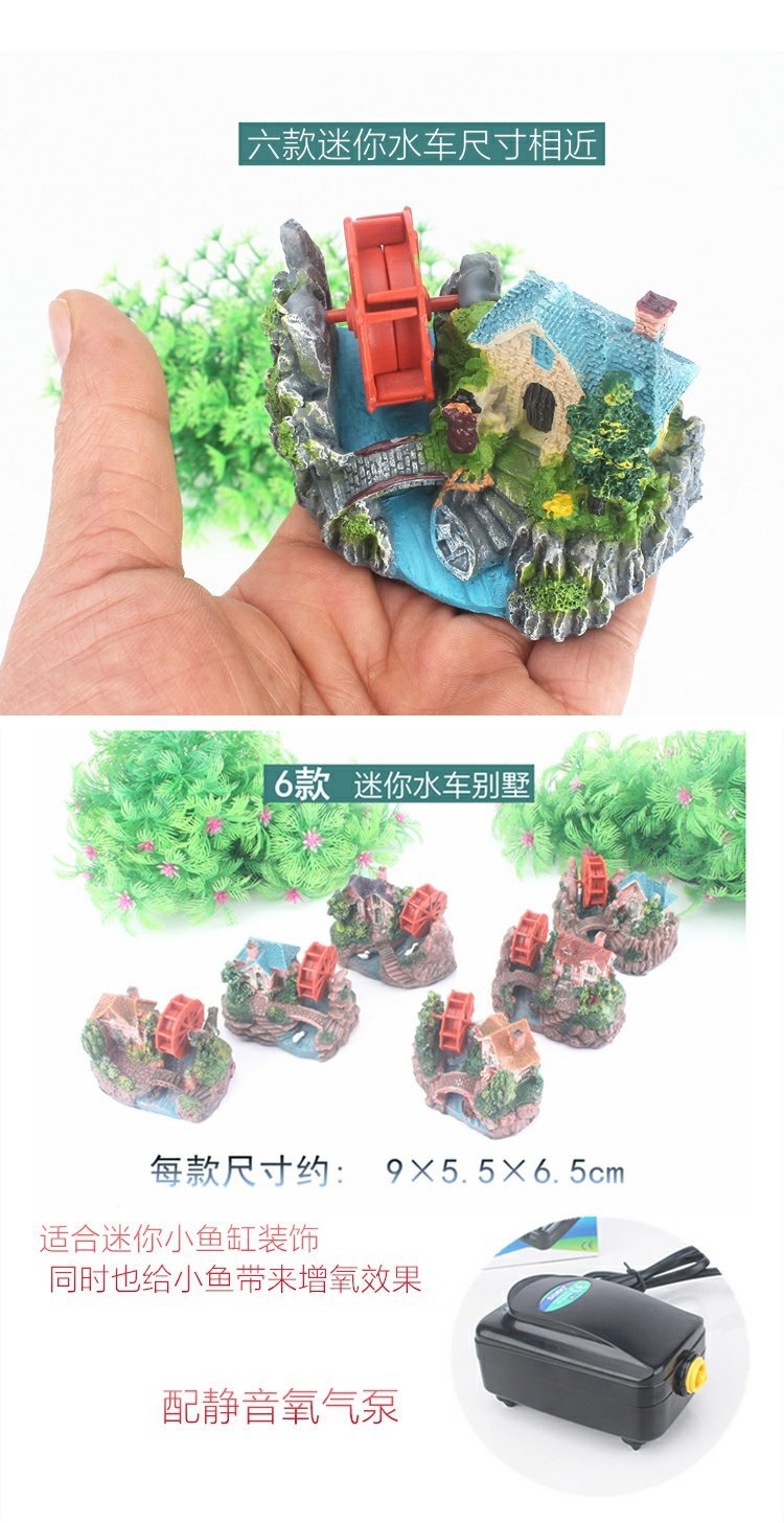 Мини-домик с водяным колесом (поставляется с кислородным насосом); Большая вилла с водяным колесом (с кислородным насосом); Сельский дом на водяном колесе (кислородный насос)