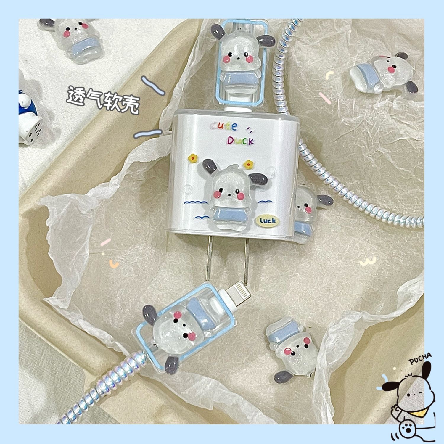 Сетка красная мультяшная пача собака клейкая наклейка для Apple 20 Вт зарядная головка защитный чехол 18 Вт обмотка проволоки защиты мягкой оболочки