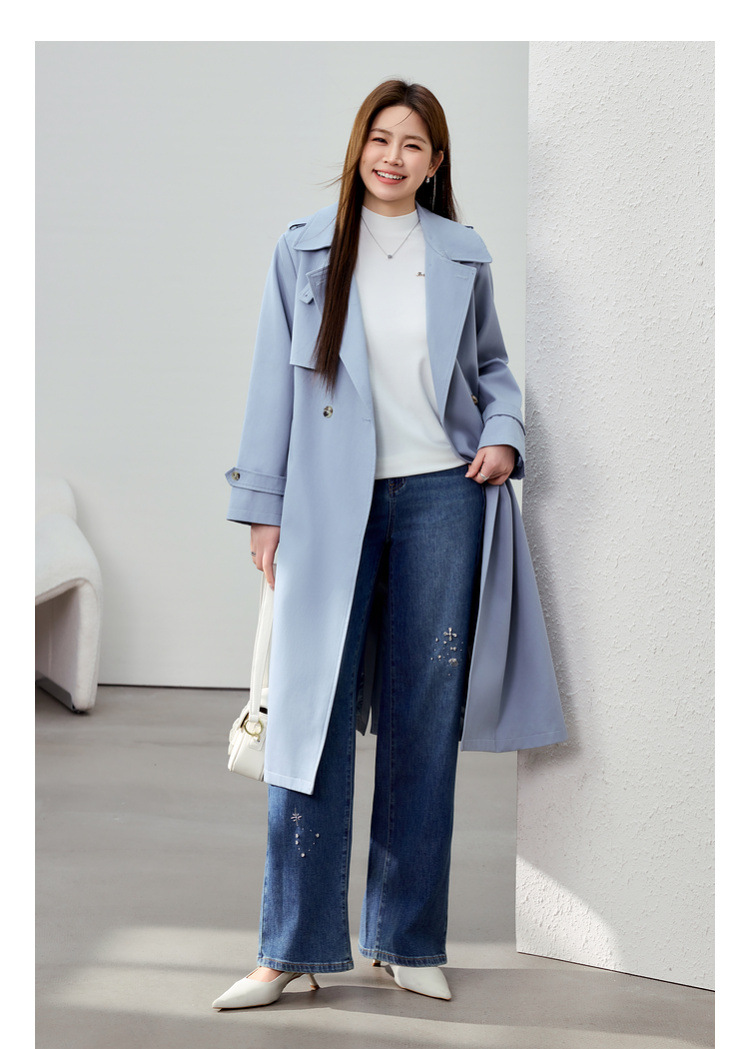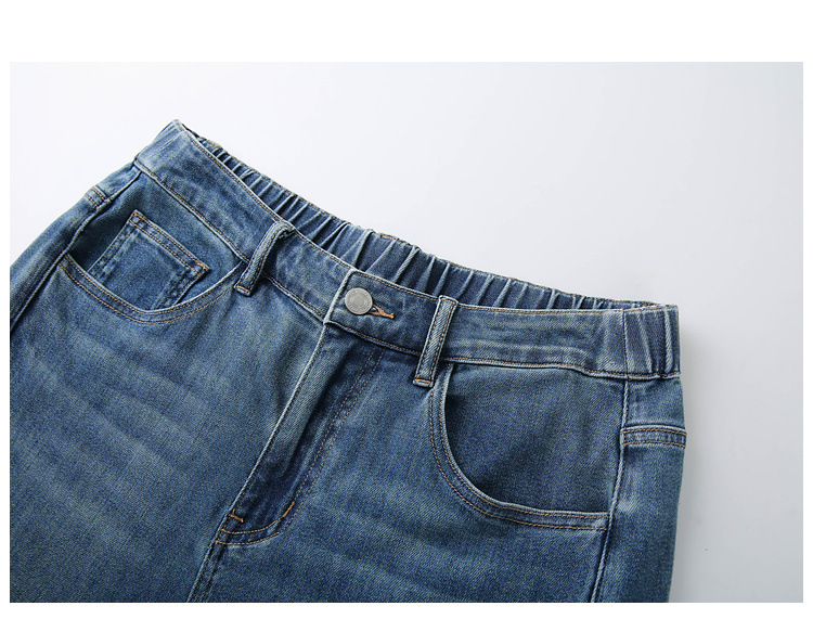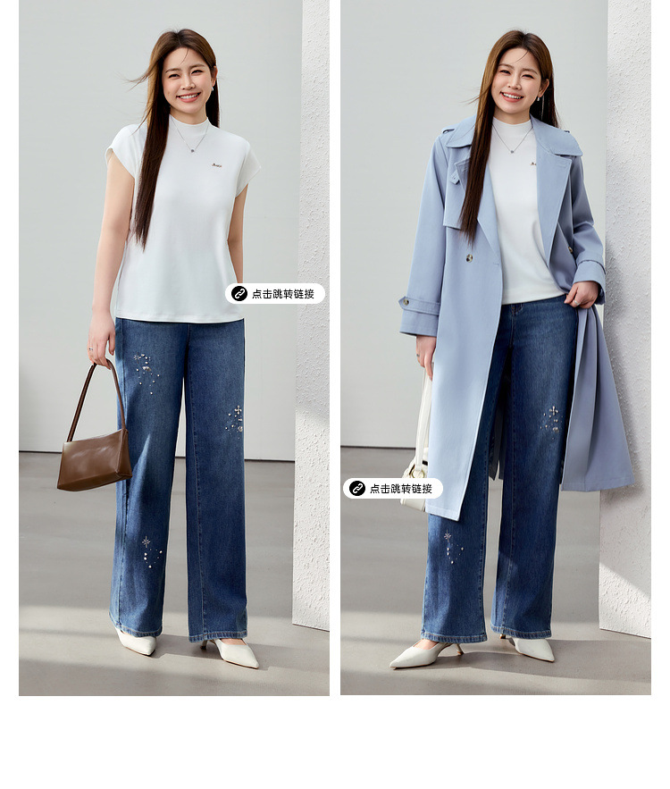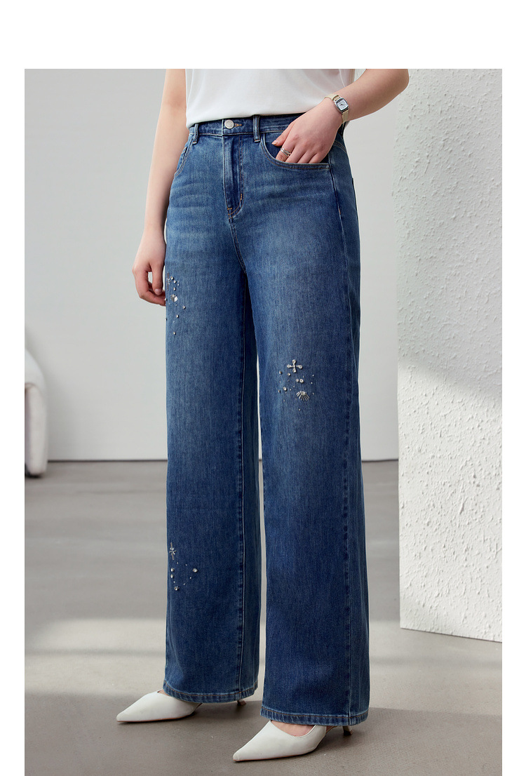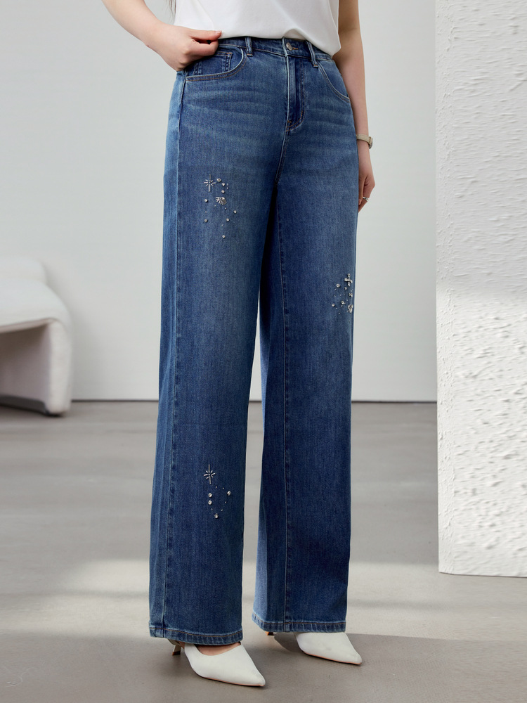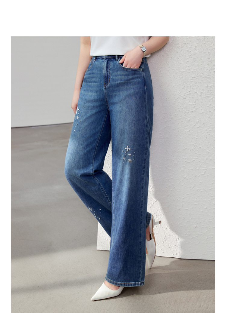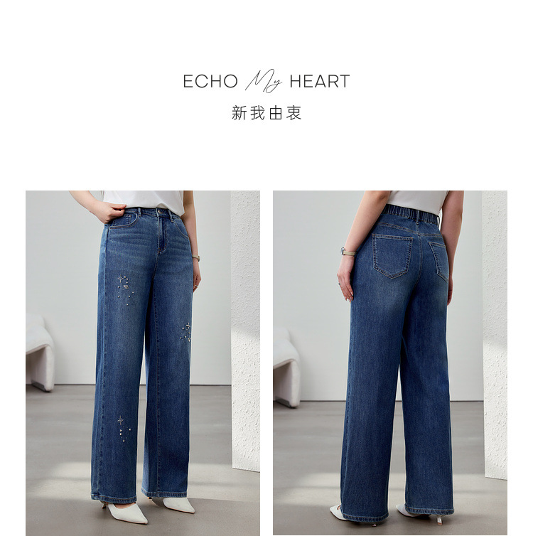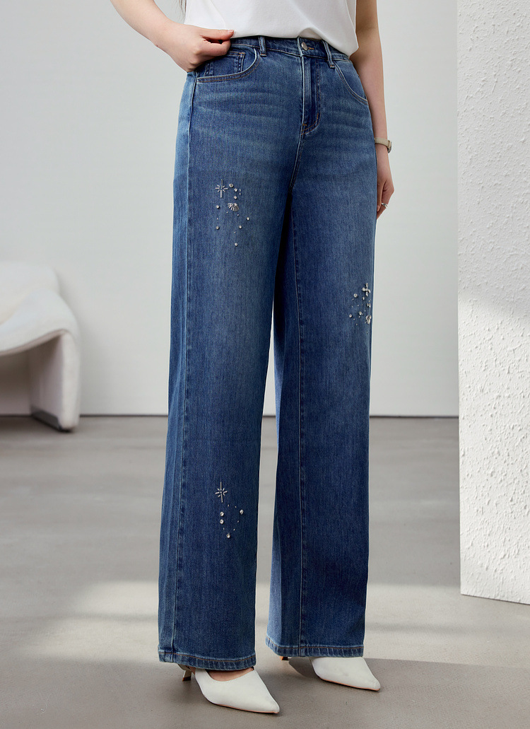 [Модные бусы с бисером, покрывающий мясо, тонкие и широкие джинсы] Funny Show большой размер женский толстый мм весенний новый