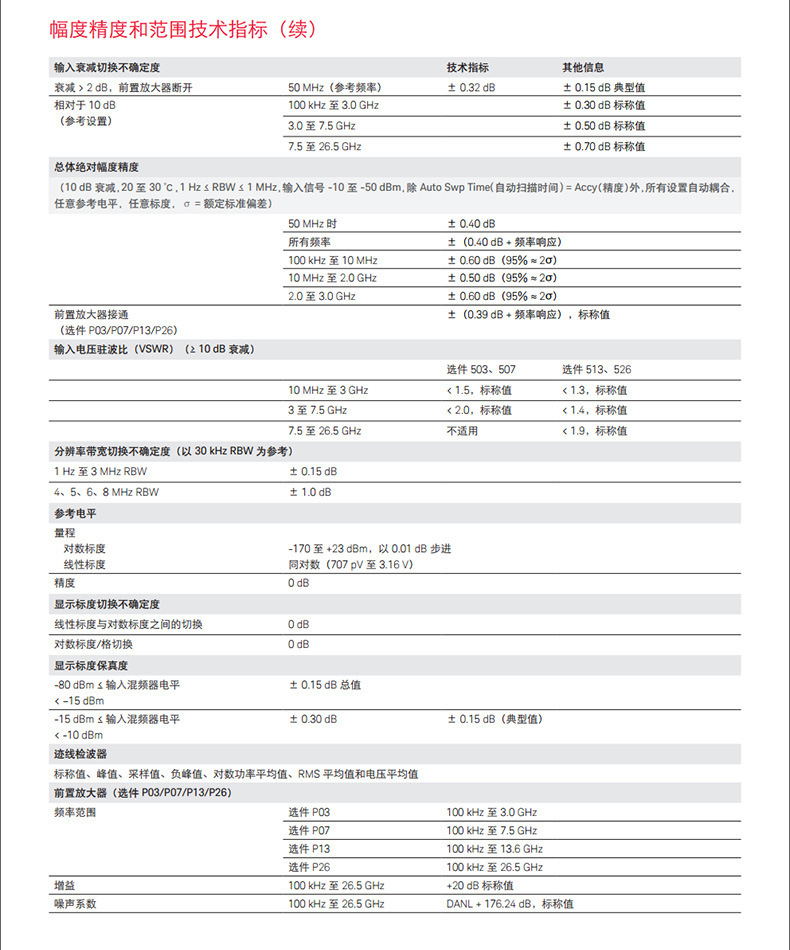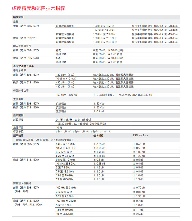 N9000B -503(9kHz-3GHz); N9000B -507 (от 9 кГц до 7,5 ГГц); N9000B-513(9 kHz to 13.6 GHz ); N9000B -526 (от 9 кГц до 26,5 ГГц); [Опция] N9000B-B25 [полоса анализа 25 МГц]; [Опция] Опорная частота N9000B-PFR; [Опция] Источник отслеживания N9000B-T06 от 9 кГц до 6 ГГц; [Опция] Источник отслеживания N9000B-T03 от 9 кГц до 3 ГГц; [Опция] Предусилитель N9000B-P03, 3 ГГц; [Опция] Предусилитель N9000B-P07, 7,5 ГГц; [Опция] Предусилитель N9000B-P13, 13,6 ГГц; [Опция] Предусилитель N9000B-P26, 26,5 ГГц