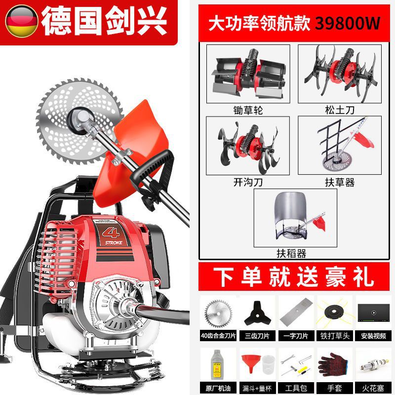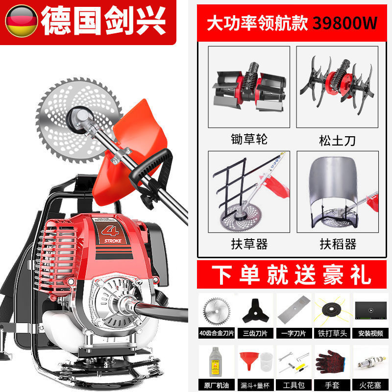 Немецкая газонокосилка Jianxing с бензиновым двигателем, рюкзак, четырехтактная, маленькая, многофункциональная, сельскохозяйственная, для прополки, бытовой уборки