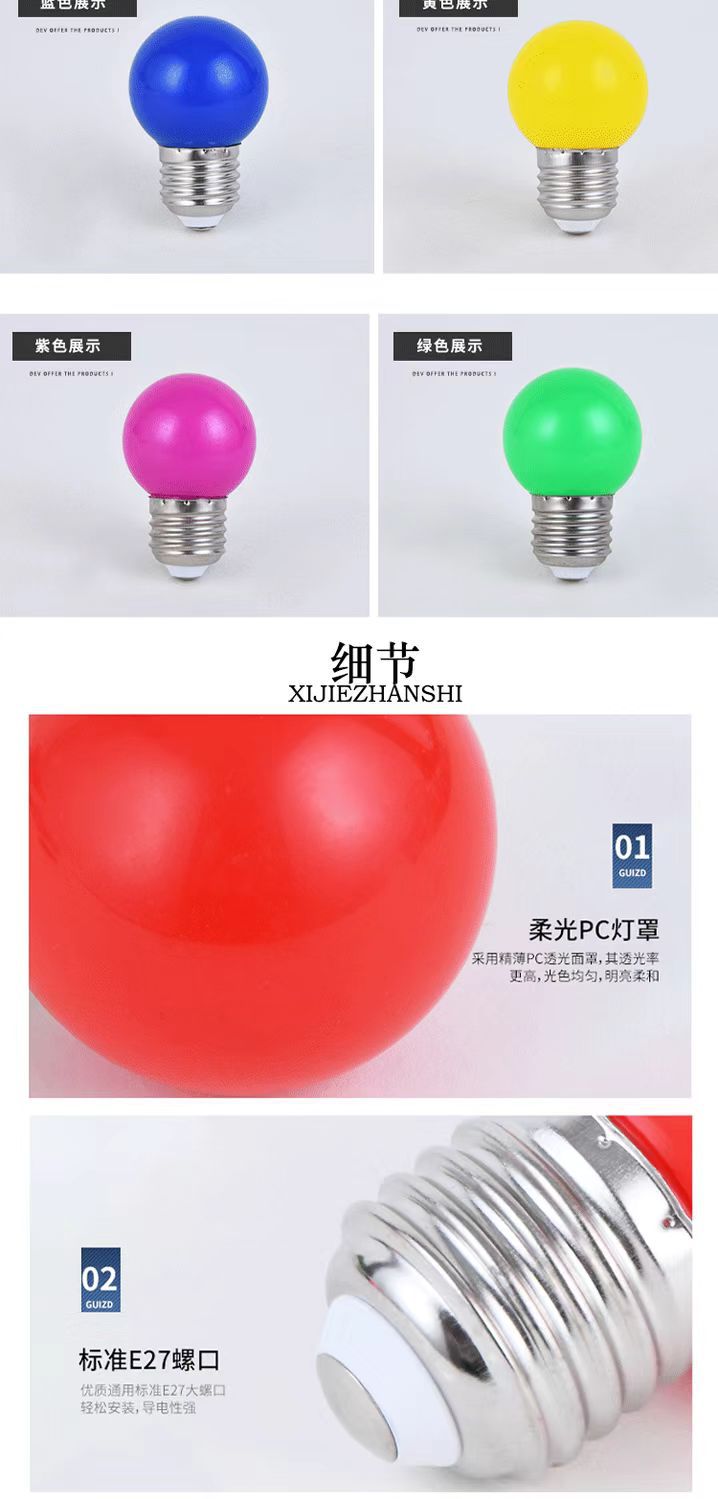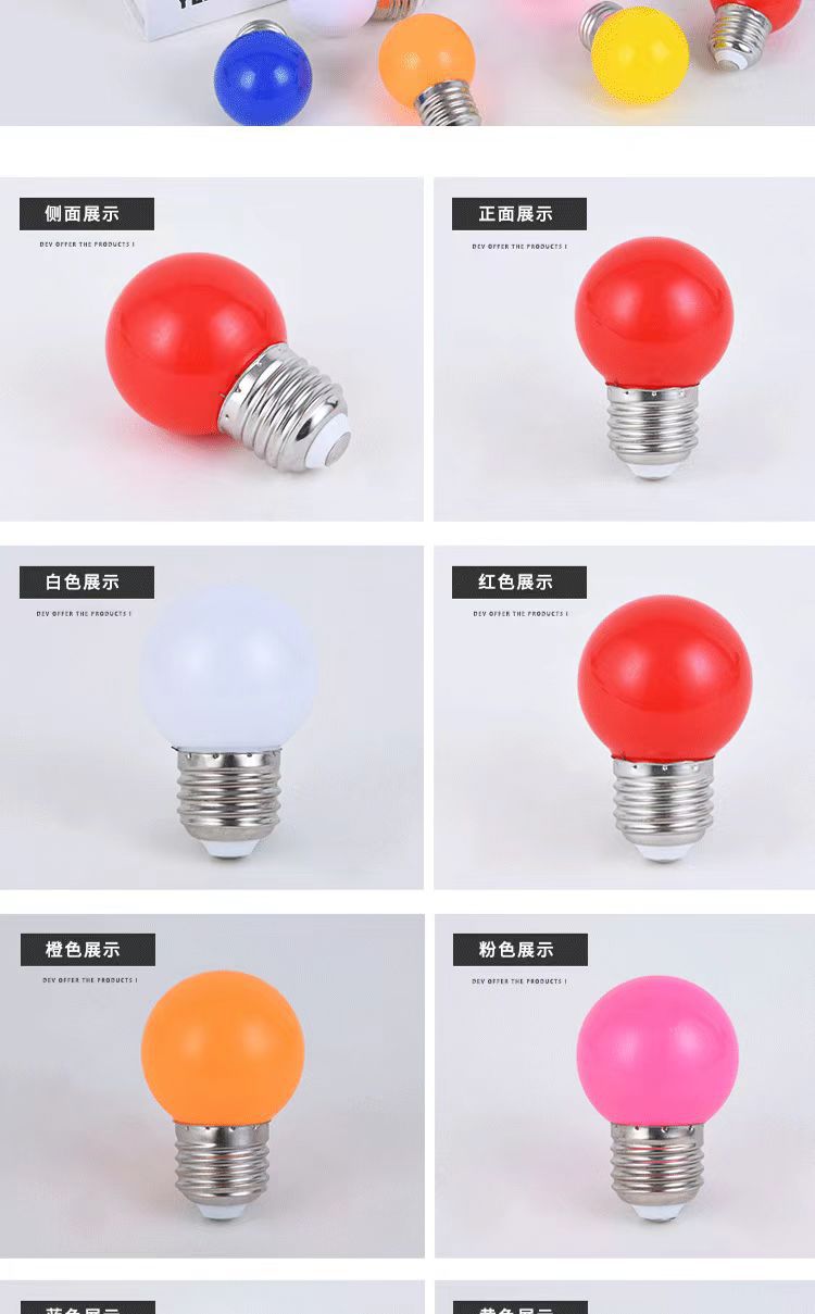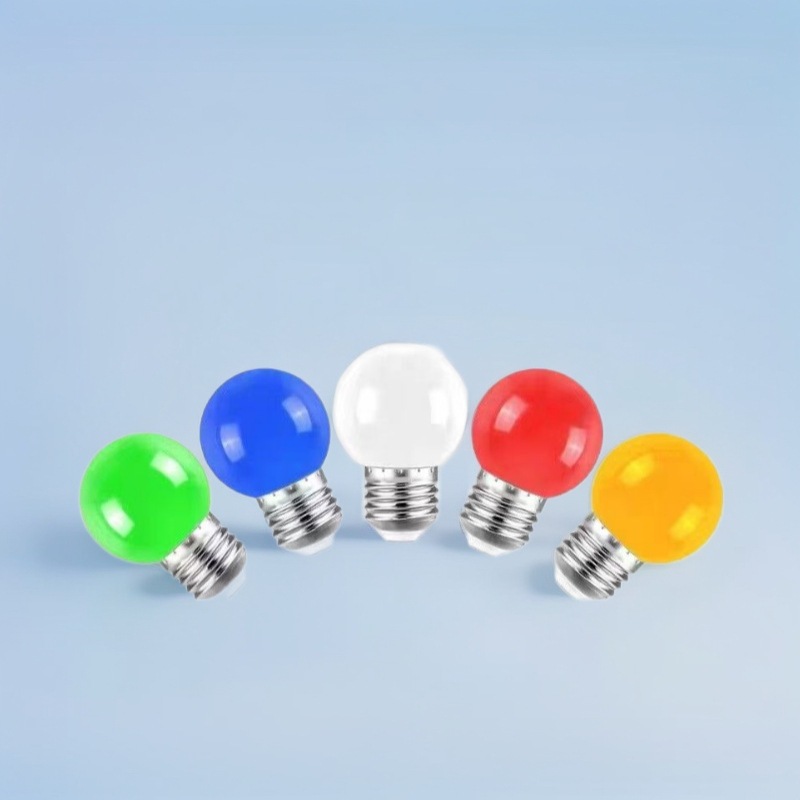 E27 G45 маленькая цветная лампа с пузырьками; E27 G45 маленькие цветные пузырьки (упаковка в цветной коробке); Маленькая цветная лампа E27 3W G45 (голая лампа)