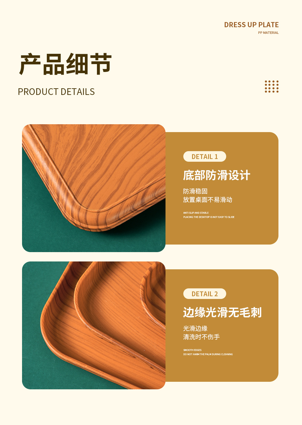 Пшеничный пластик японский стиль древесины прямоугольная тарелка для ресторана бытовой тарелка