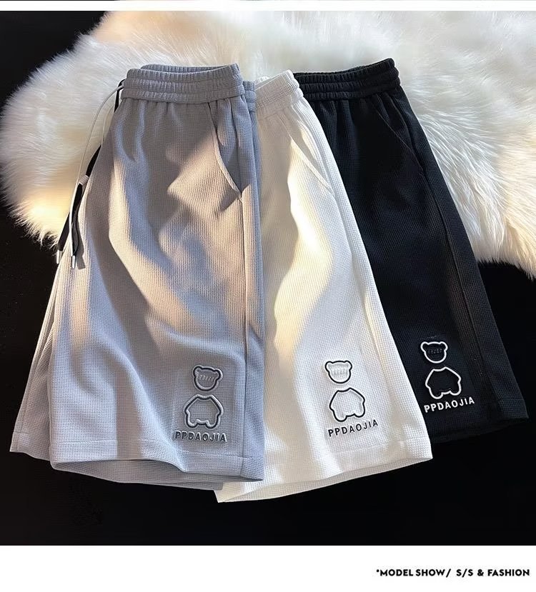 Мужские спортивные шорты с принтом медведя от производителя, дышащие, свободные, пятикарманные, повседневные пляжные шорты