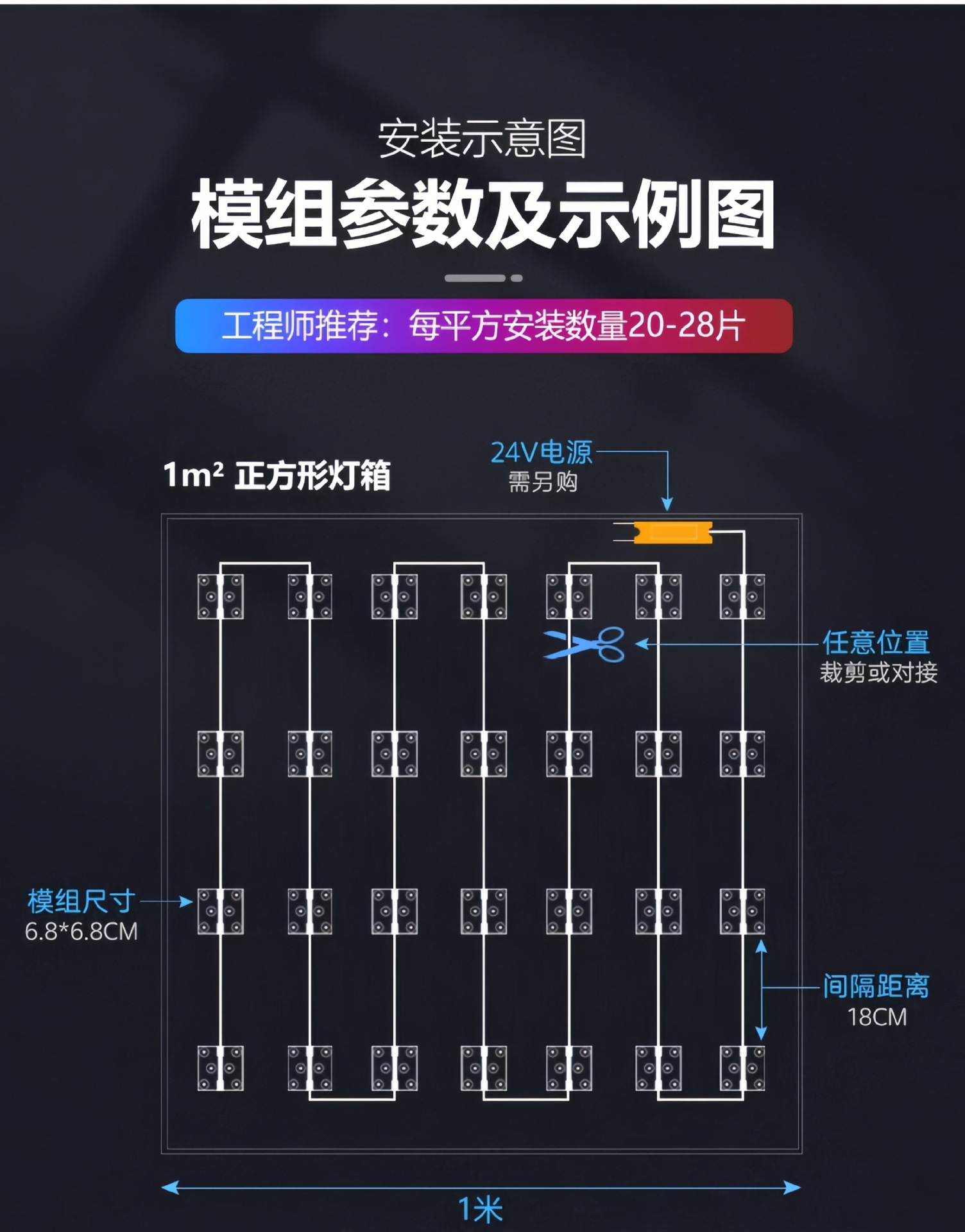 Светодиодный световой короб световая полоса blockchain водонепроницаемый фантомный блок наружной рекламы световой короб мягкая пленка потолка 24V все семь цветов