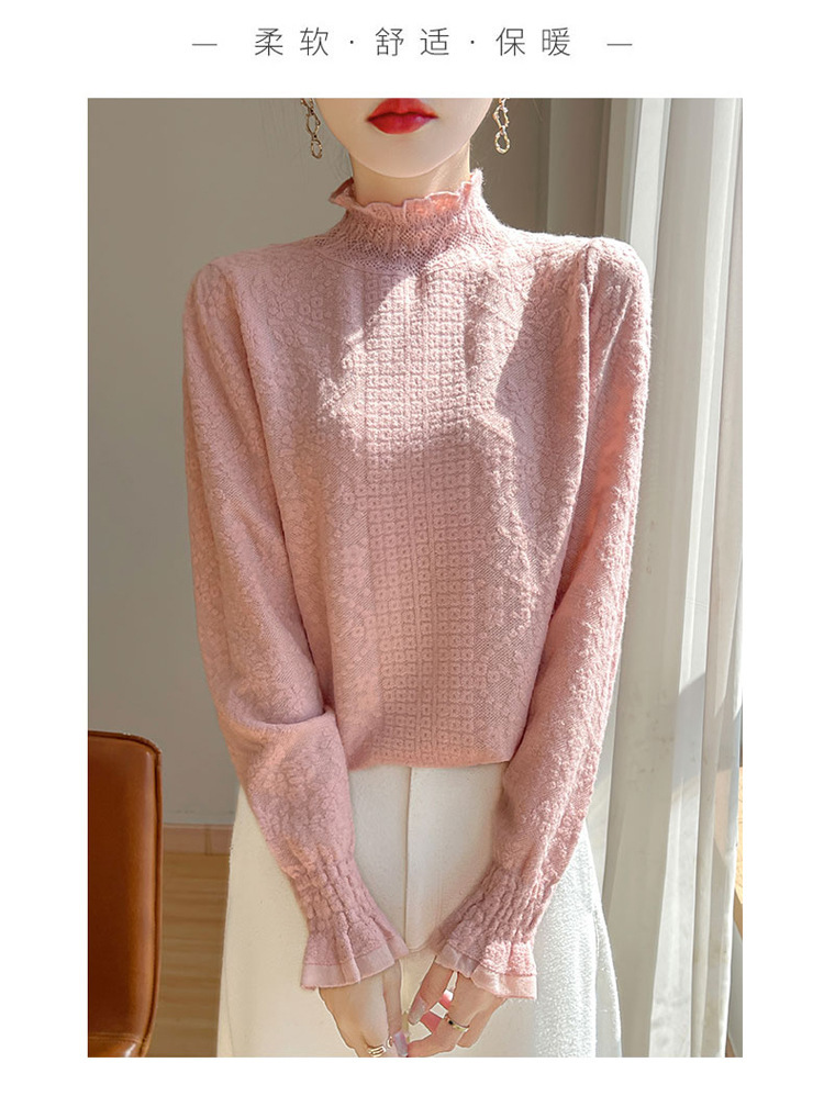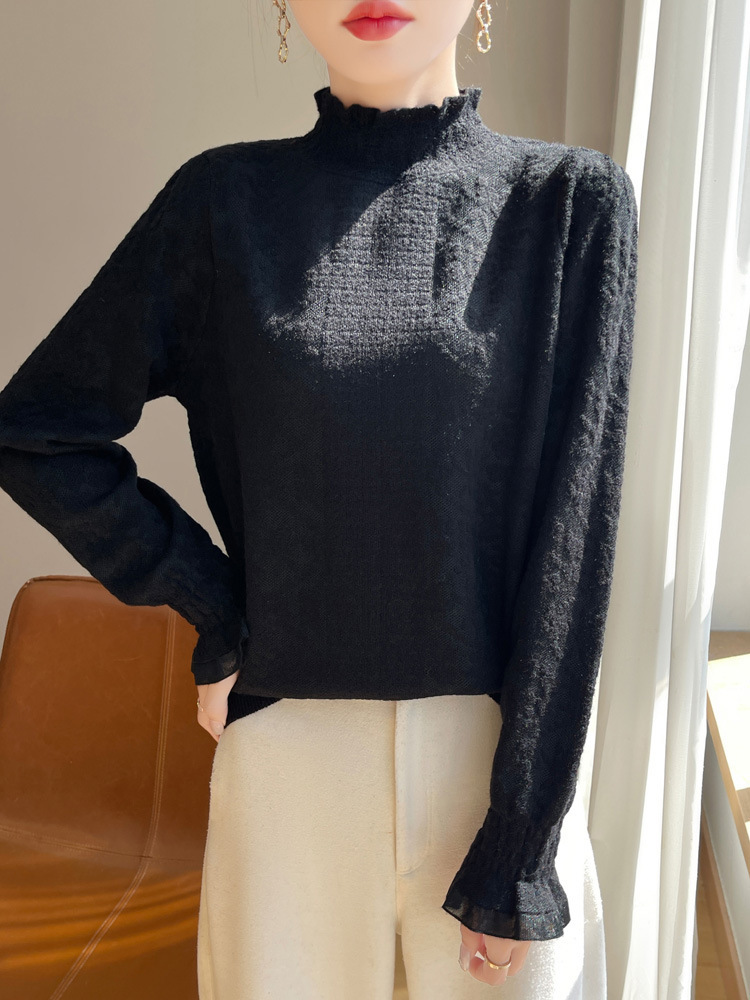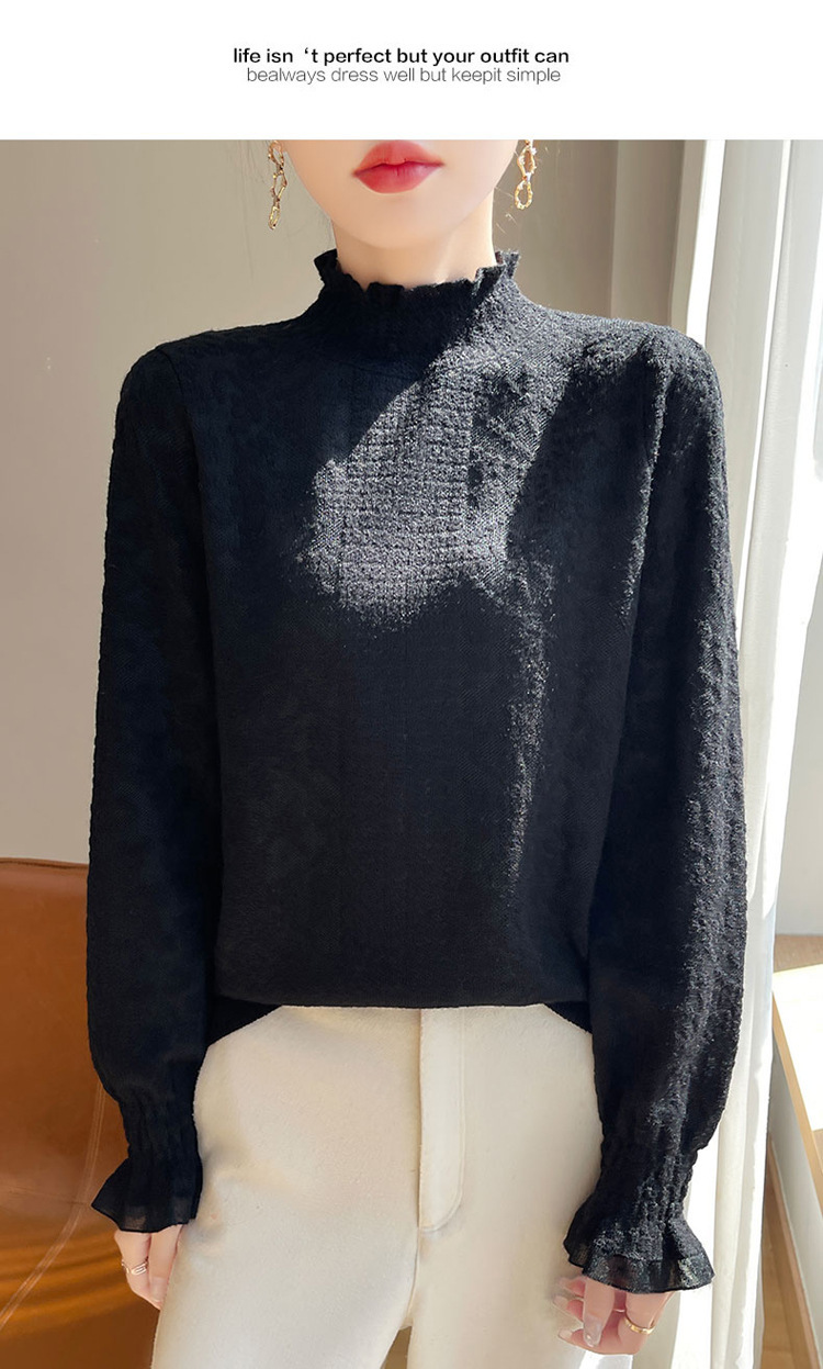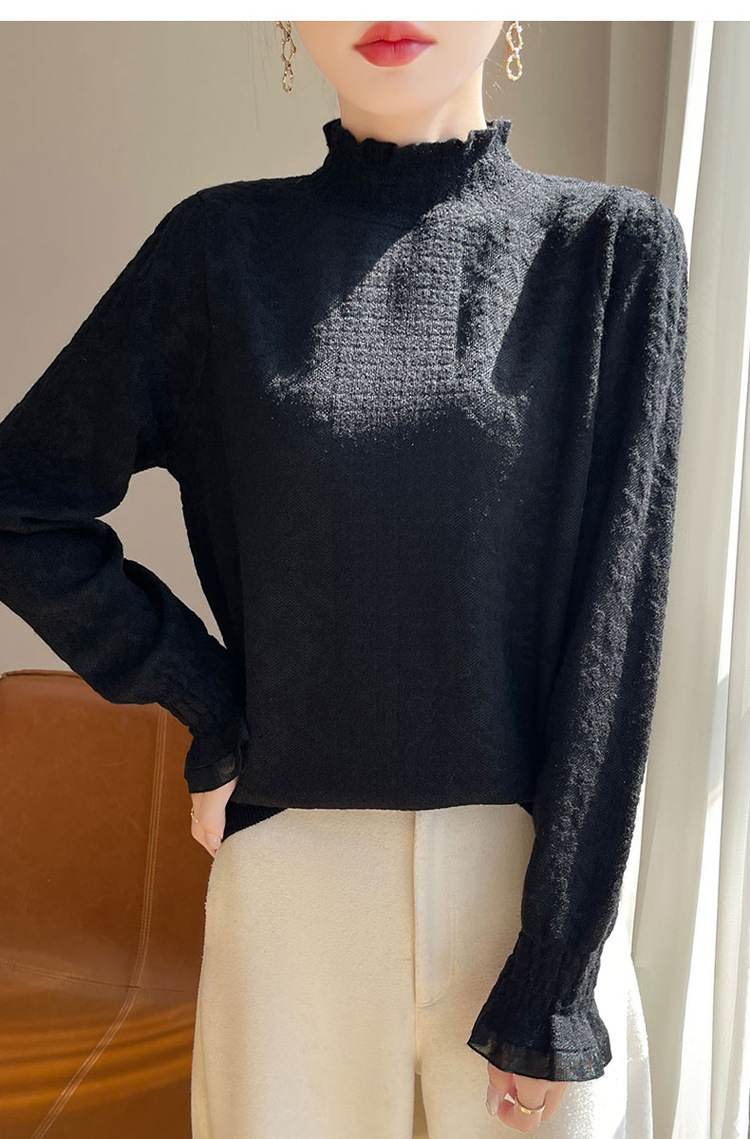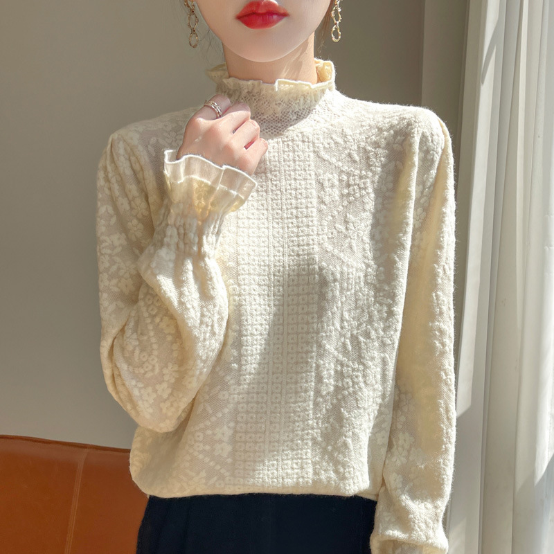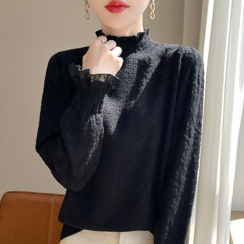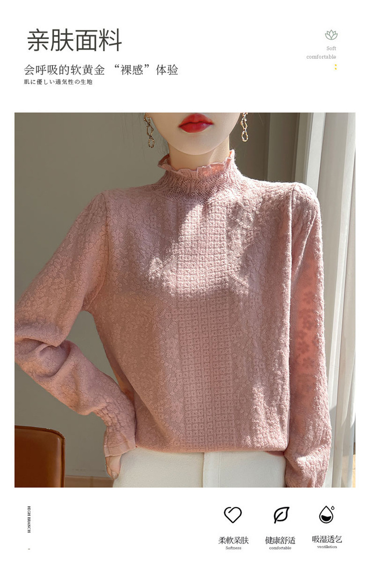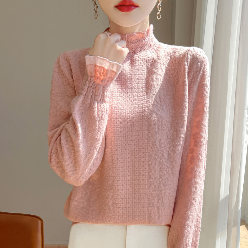 Нижняя рубашка новый топ свободный трикотаж с воротником свитер осень-зима сплошной гриб 2025 половинный воротник женская осень-зима